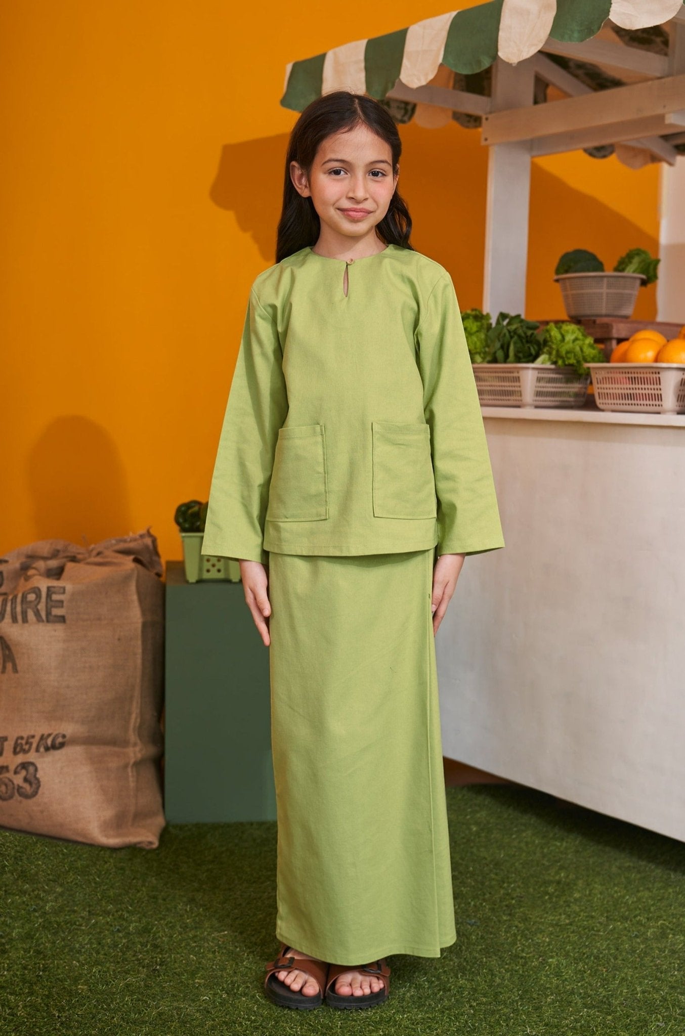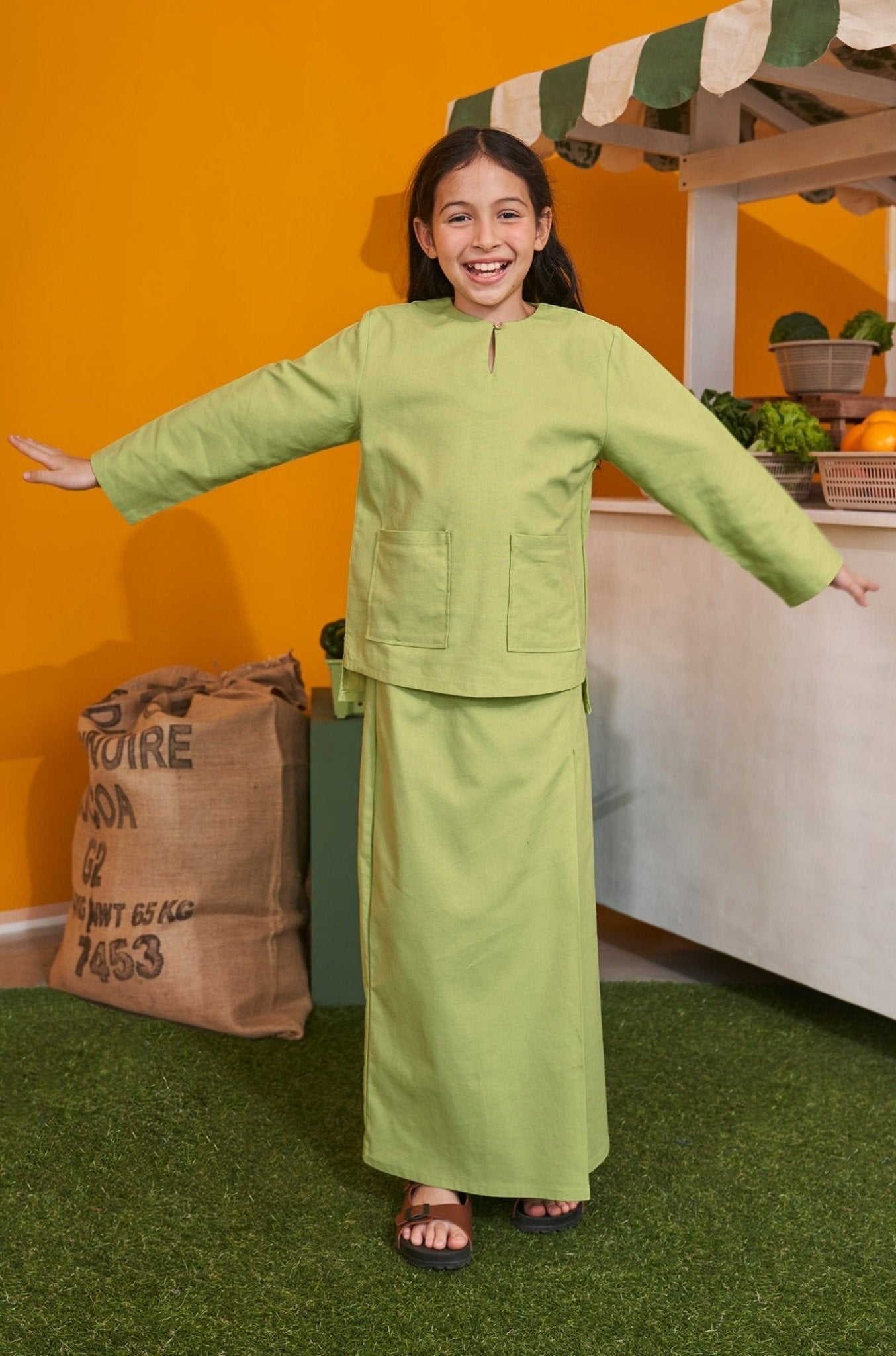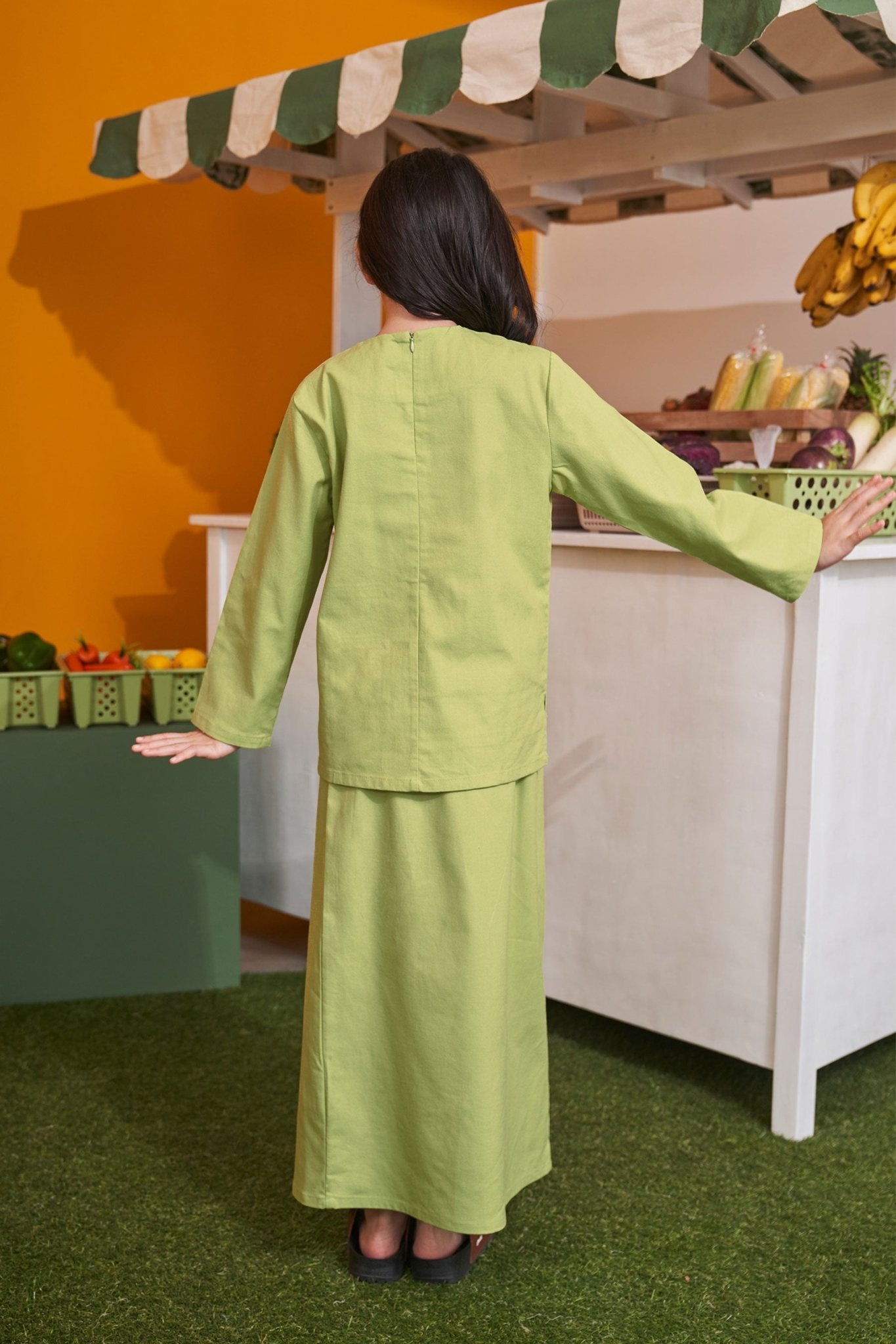 At The Market Collection Girl Kurung Top Lime Green