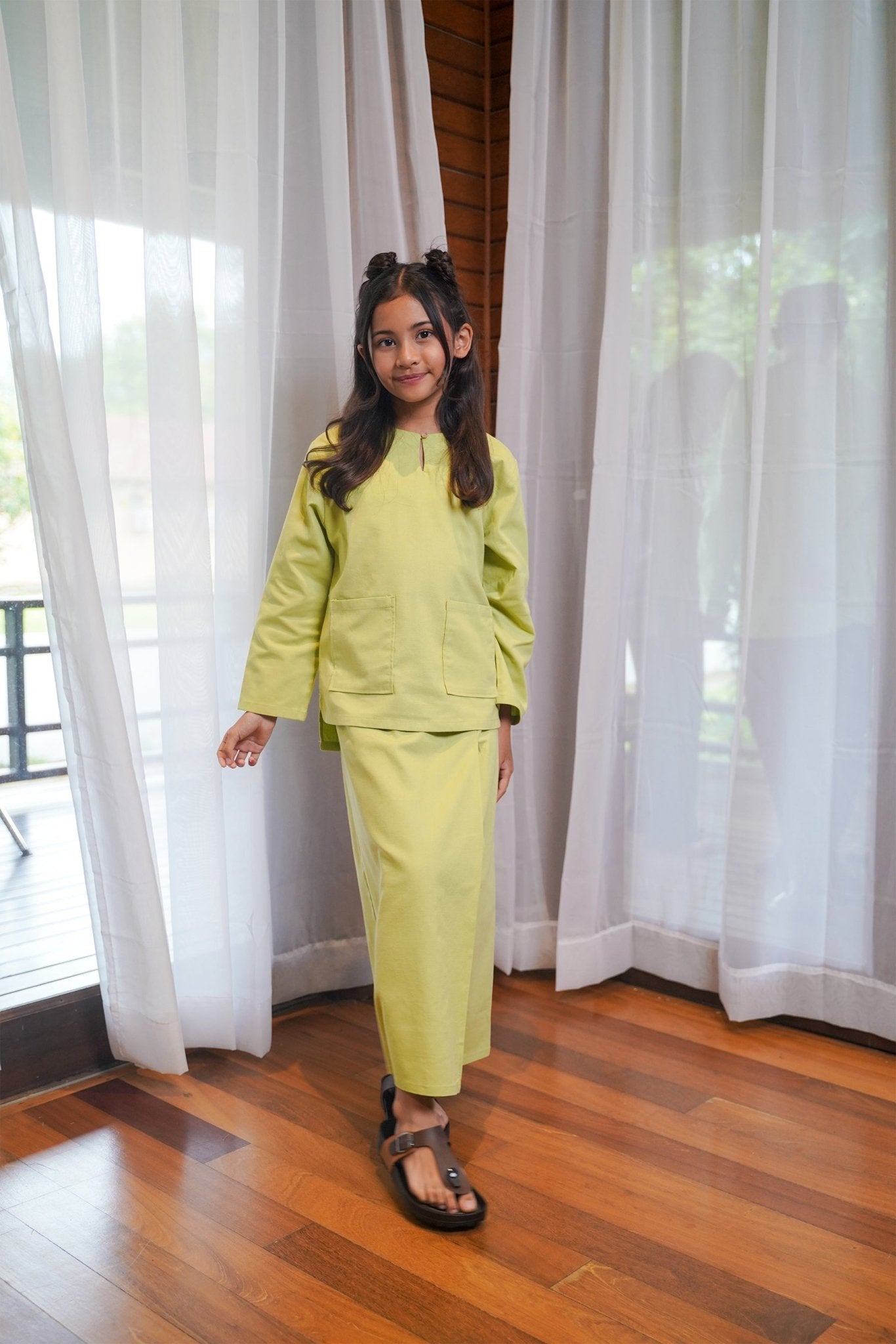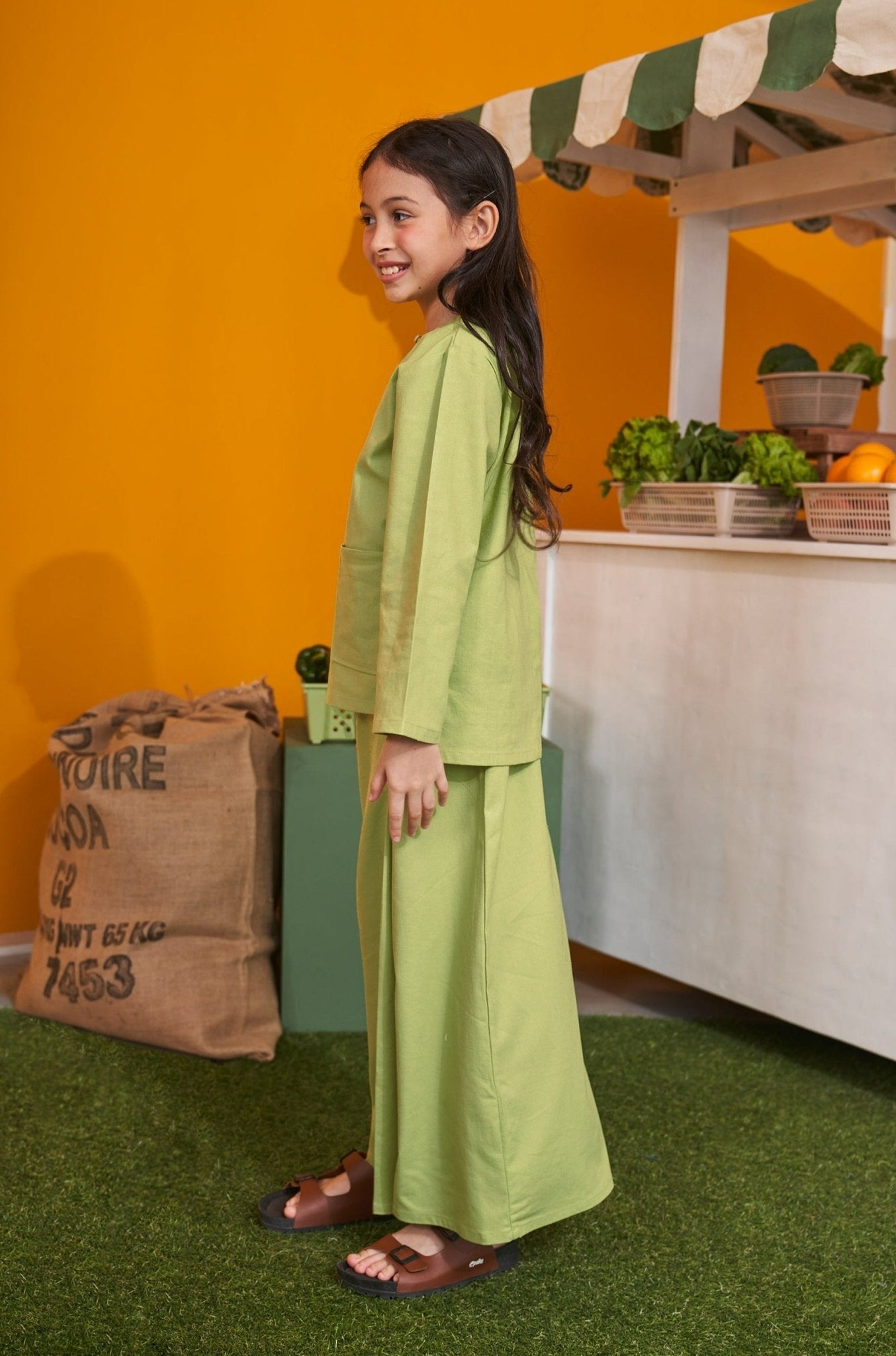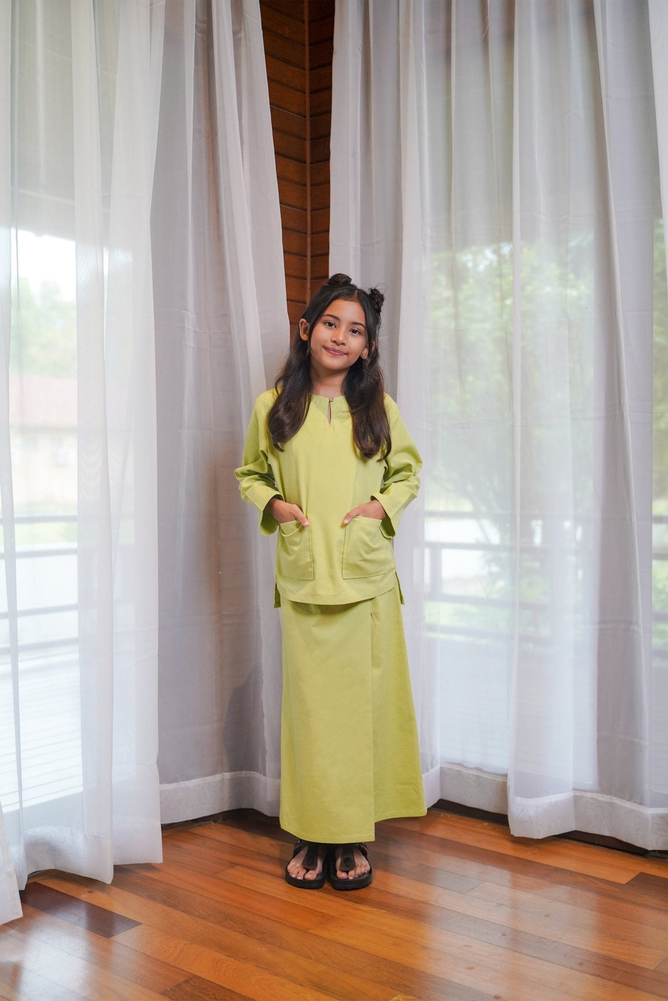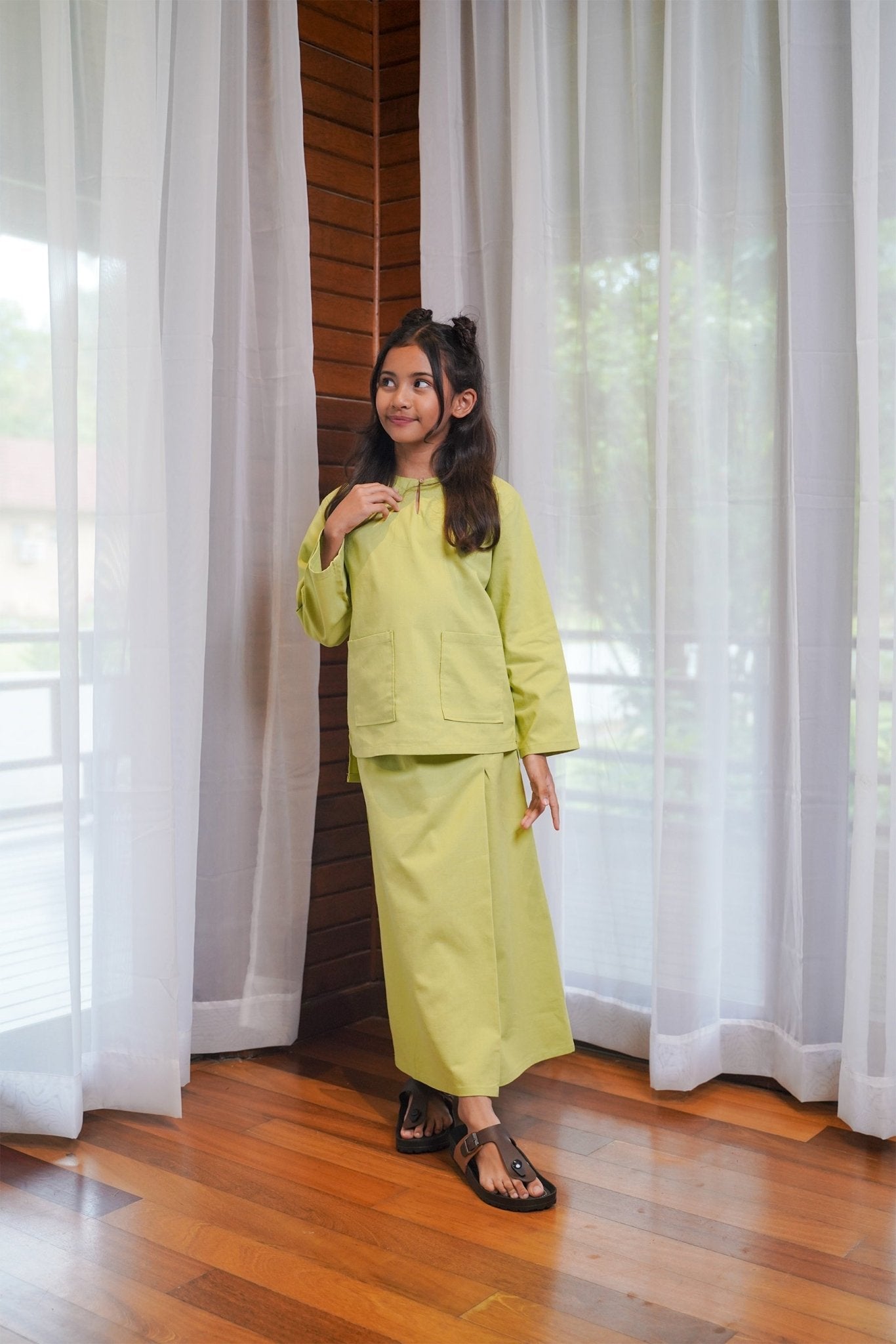 At The Market Collection Girl Kurung Top Lime Green