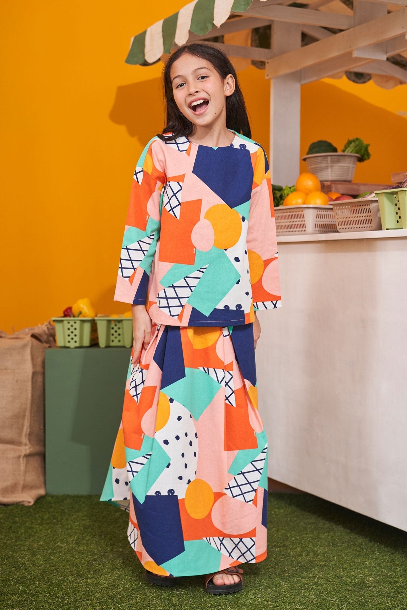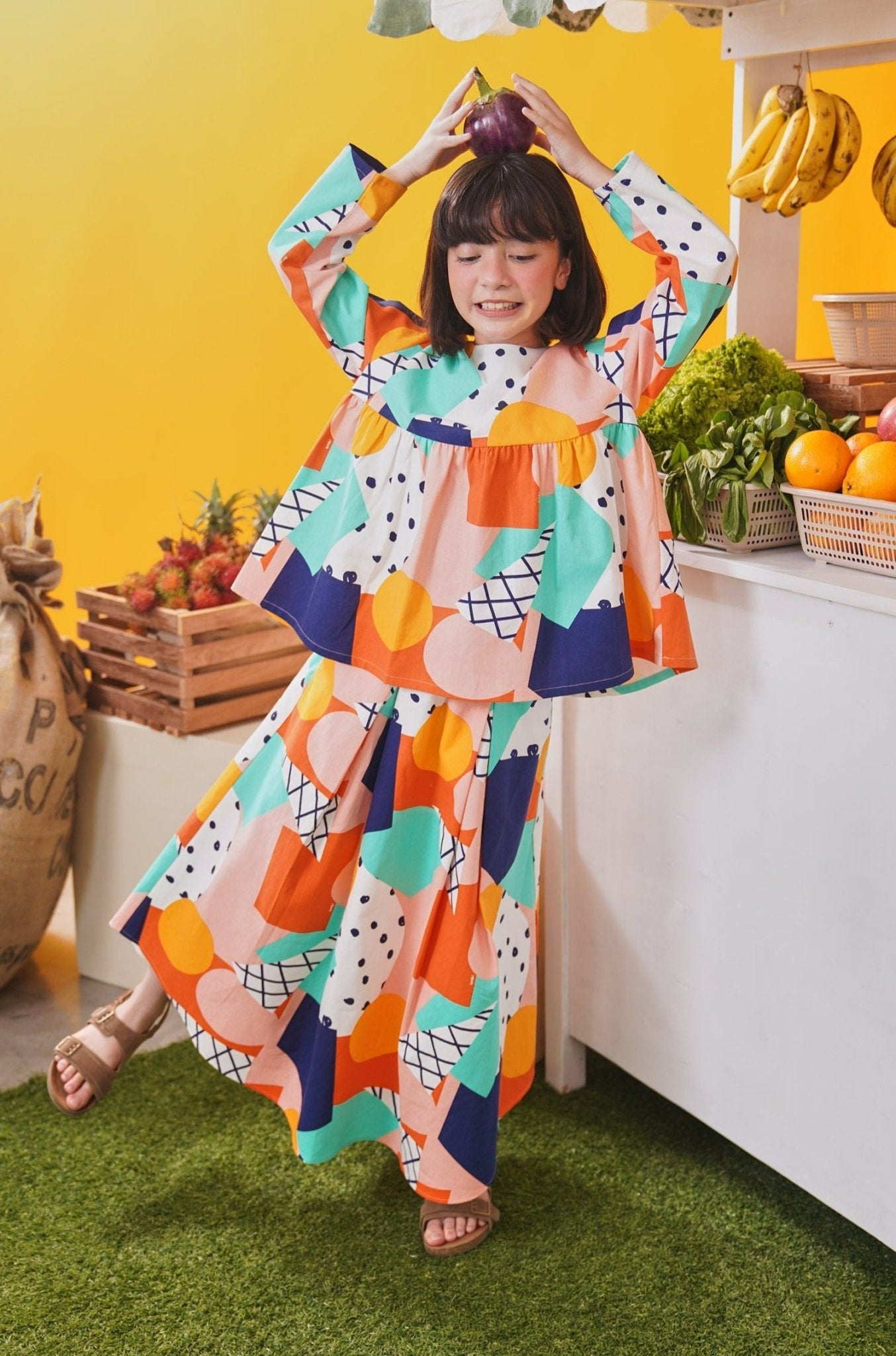 At The Market Collection Girl Teacup Skirt Fruit Punch Print