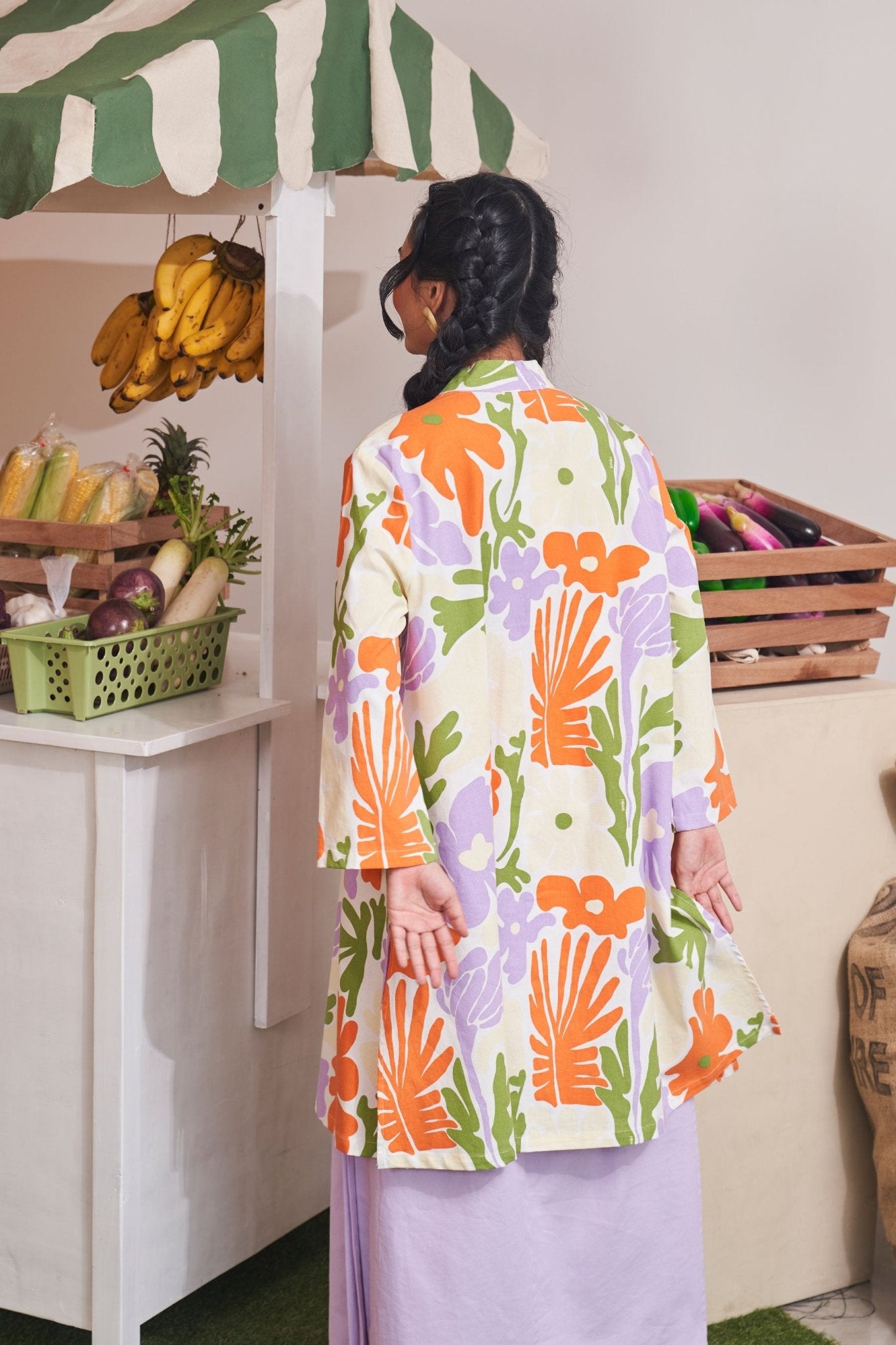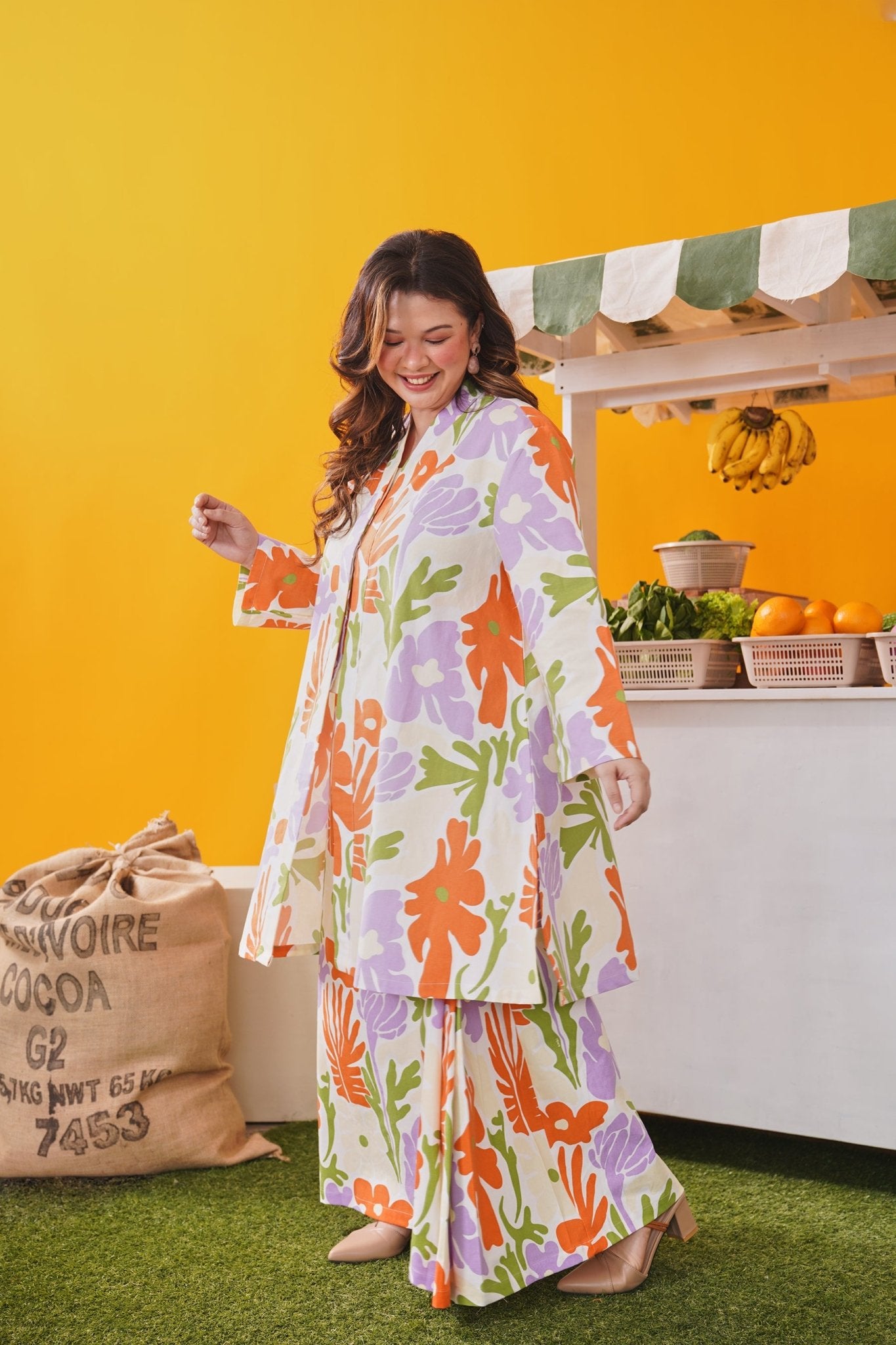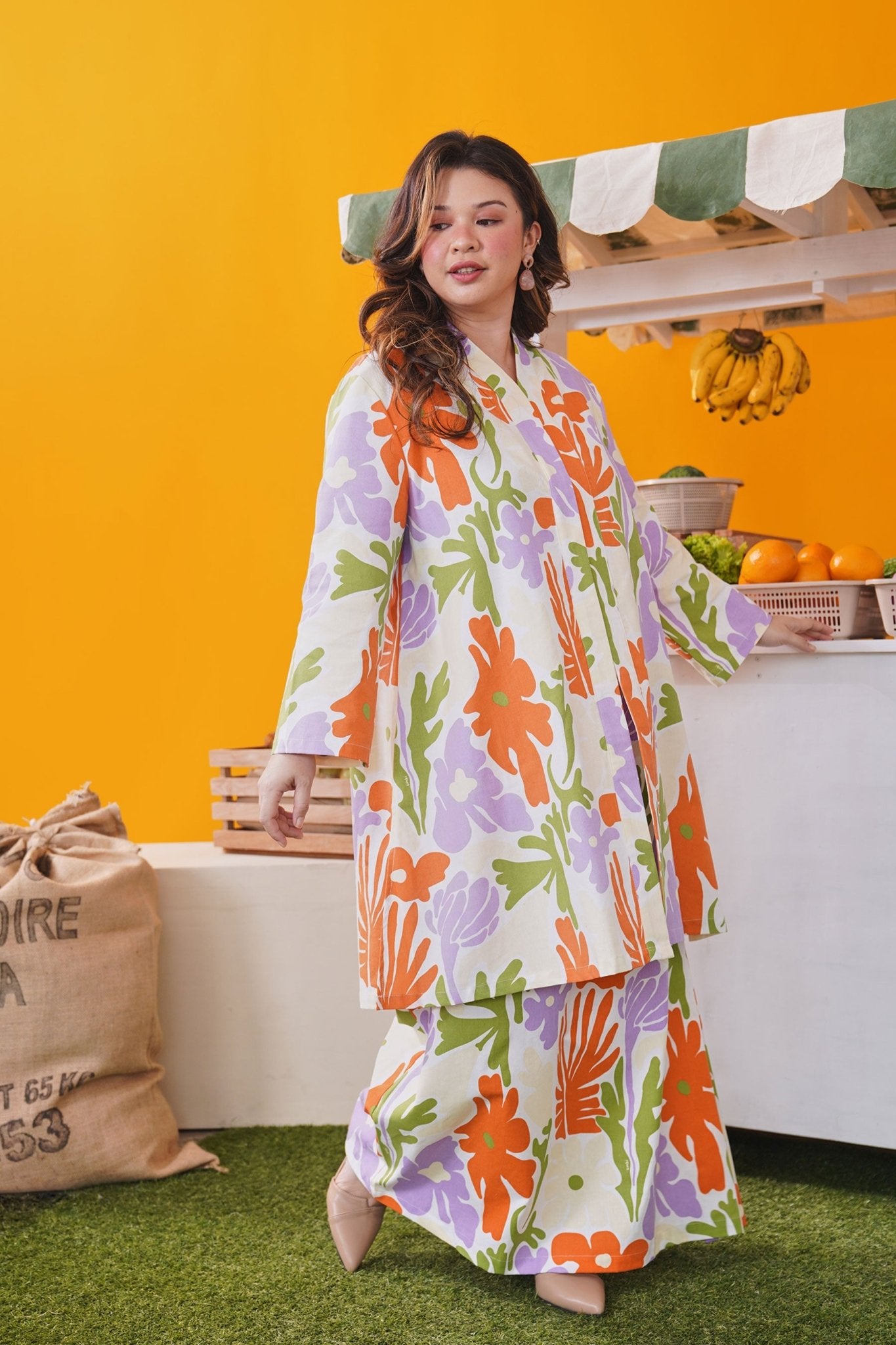 At The Market Collection Women Long Kebaya Blouse Fleur Print