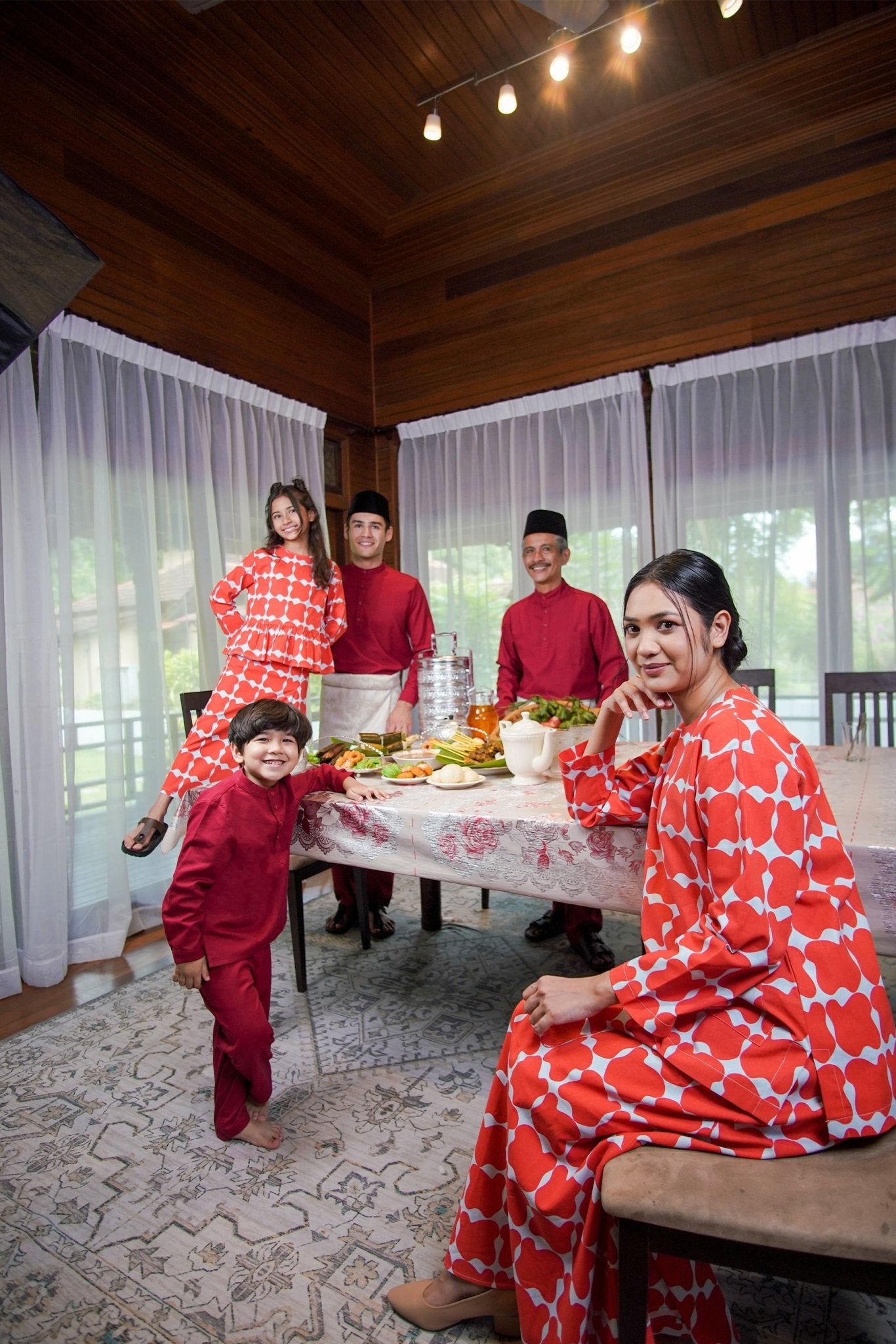 - Baju raya matching outfit available for the whole family, Gaya raya sedondon