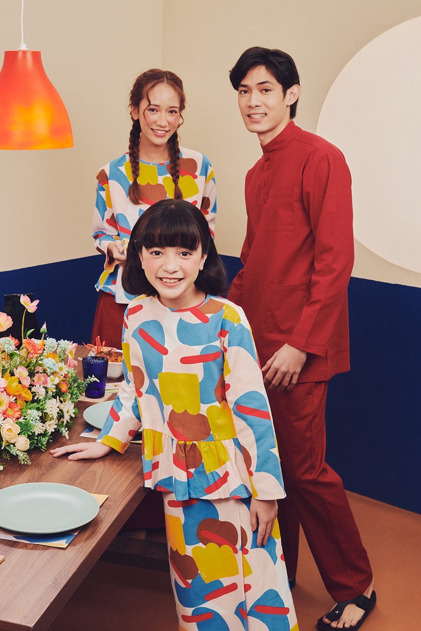 - Baju raya matching outfit available for the whole family, Gaya raya sedondon