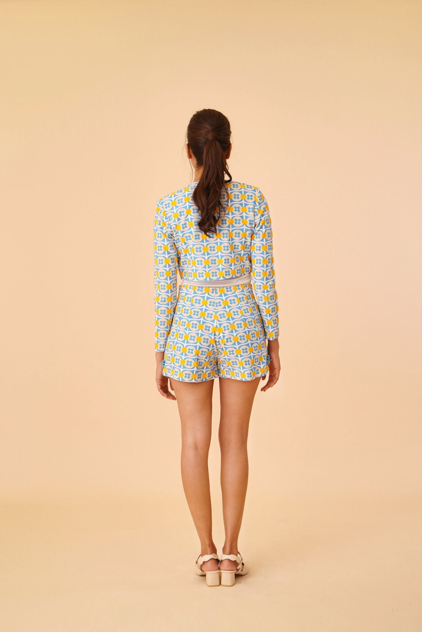 Oriental Slim Fit Top & Shorts with Pulut Print