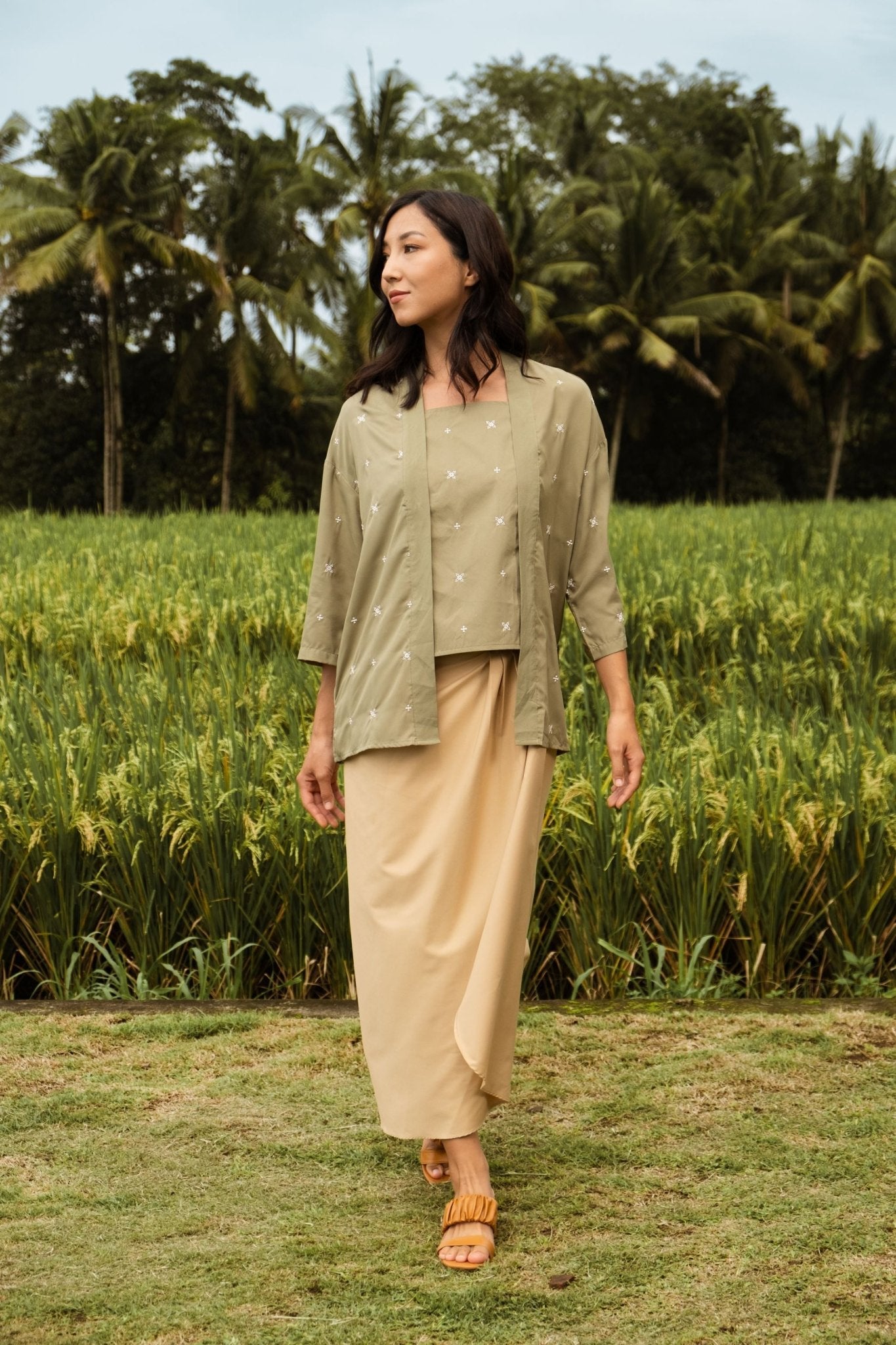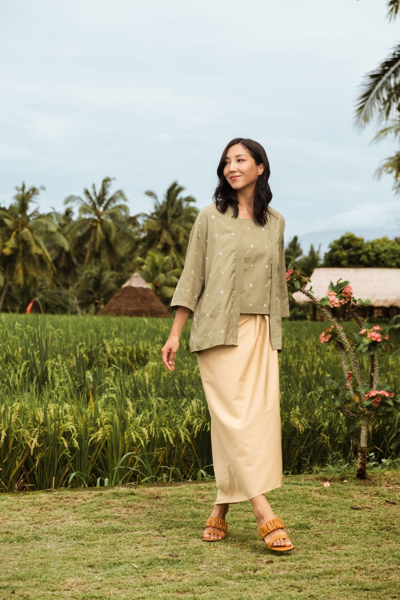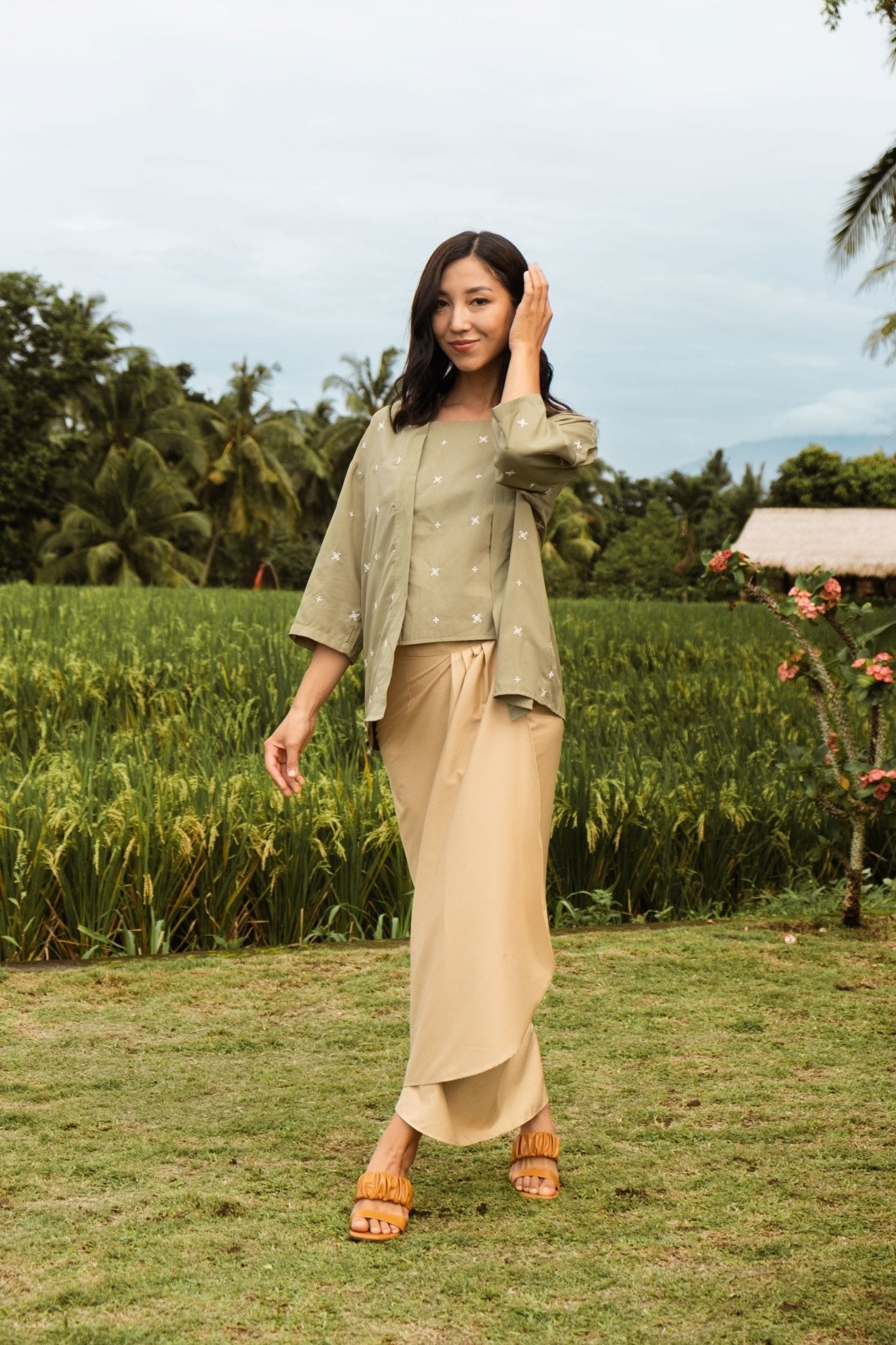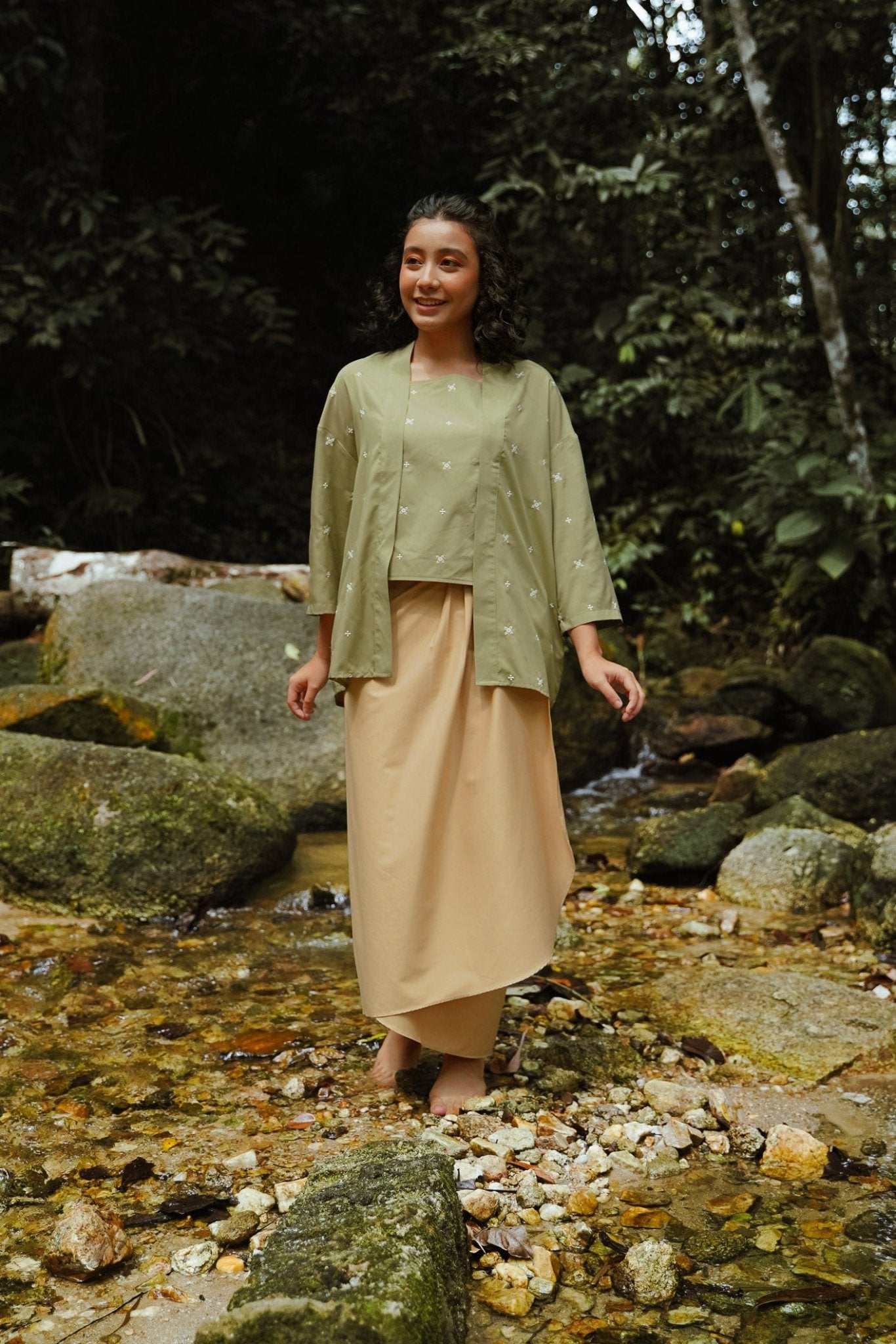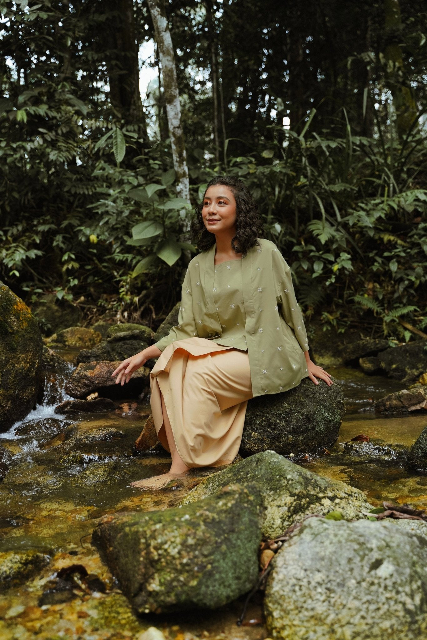 Sound of Nature Women 2-IN-1 Kebaya Top Green Dahlia Print