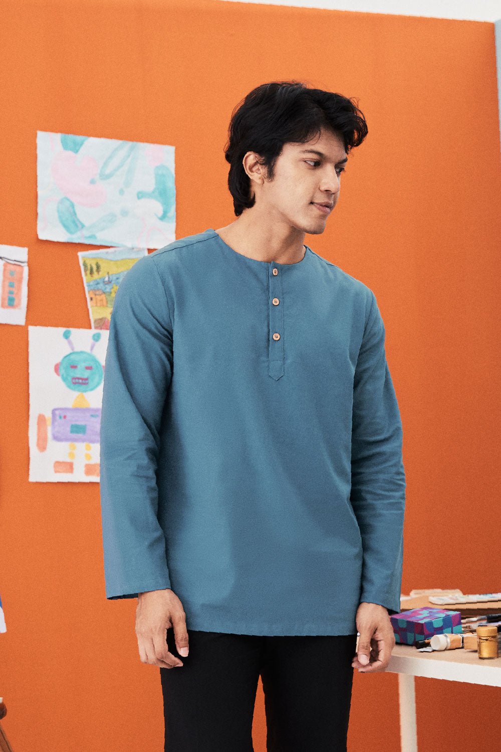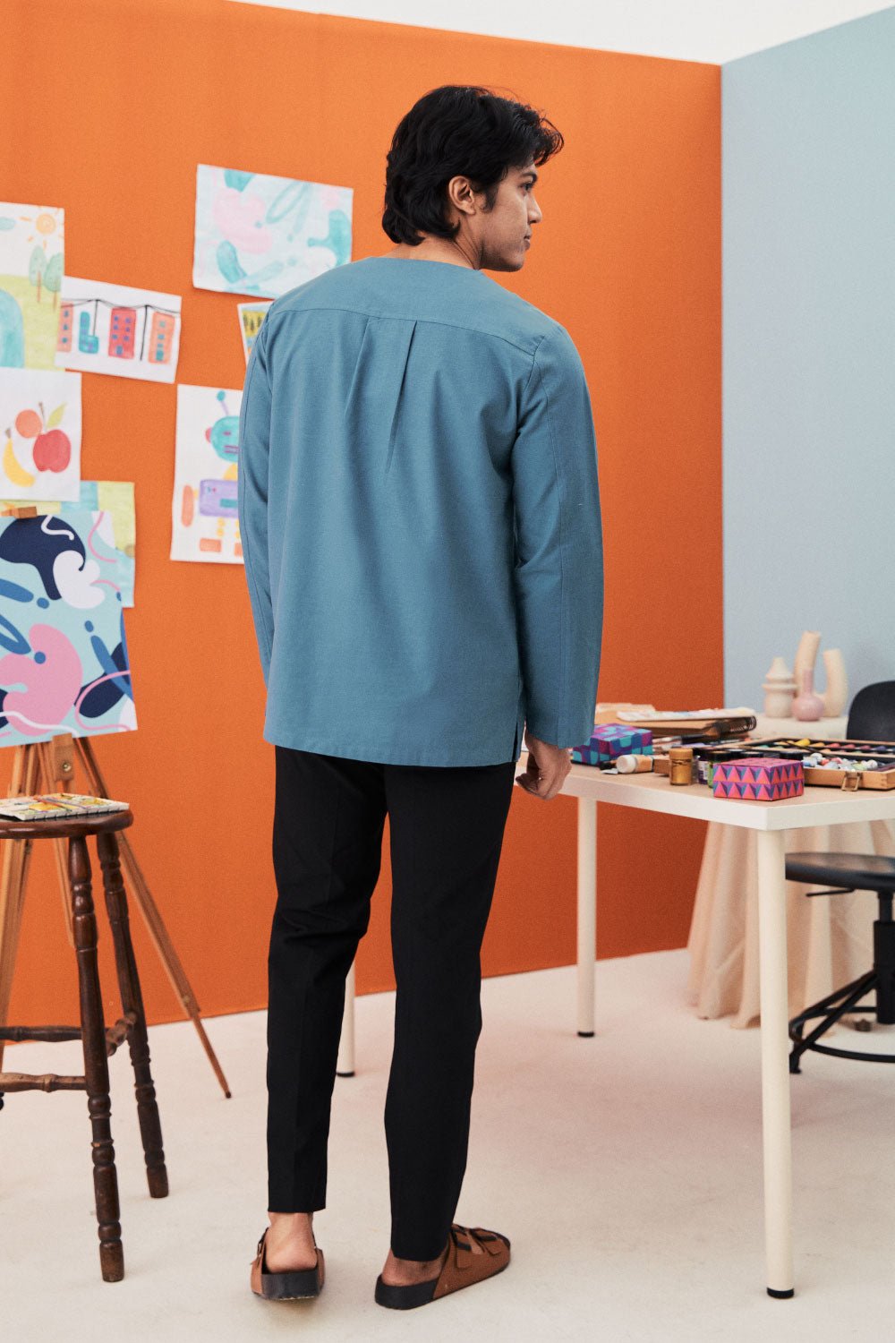 The Arte Men Kurta Top Steel Blue