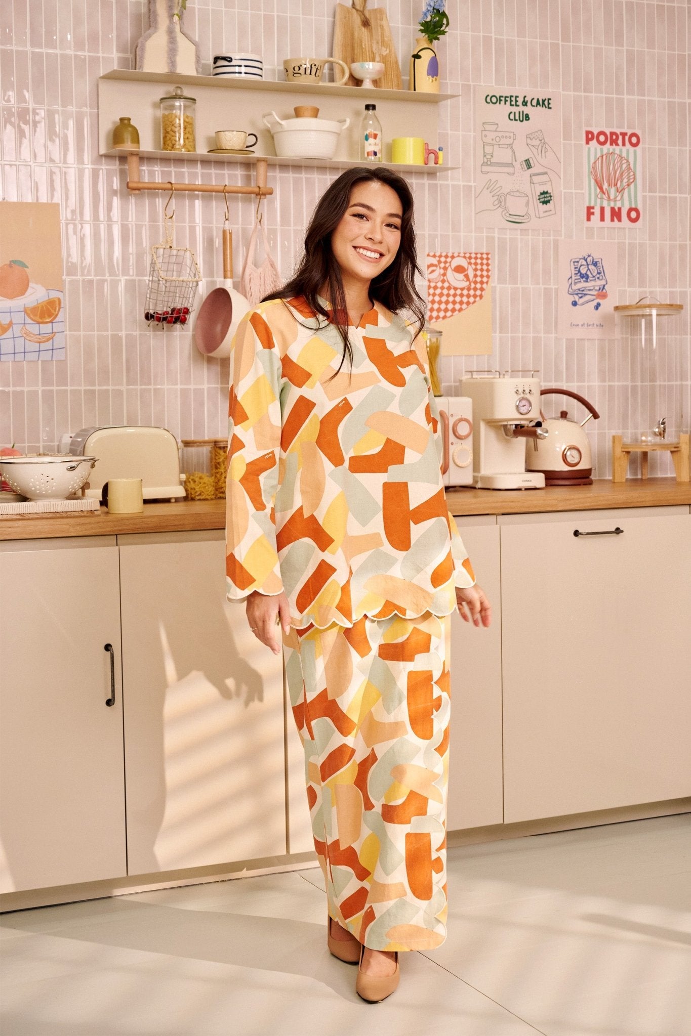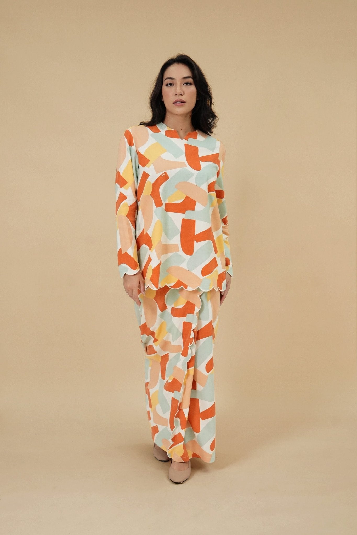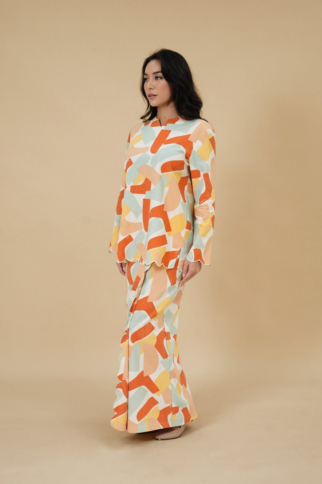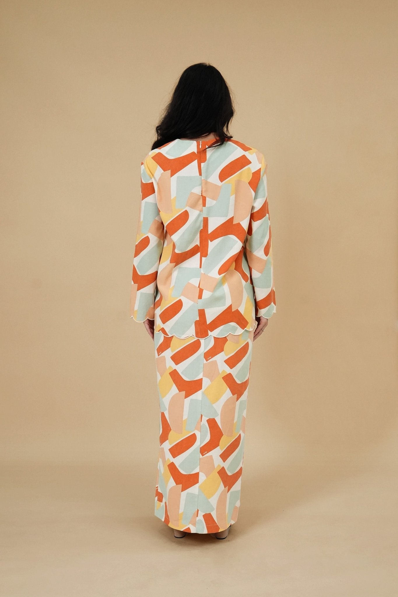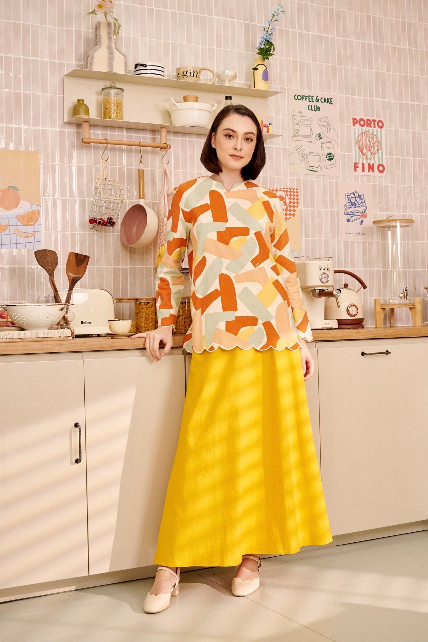 The Breakfast Club Women Kurung Top with Scallop Embroidery Marmalade Print