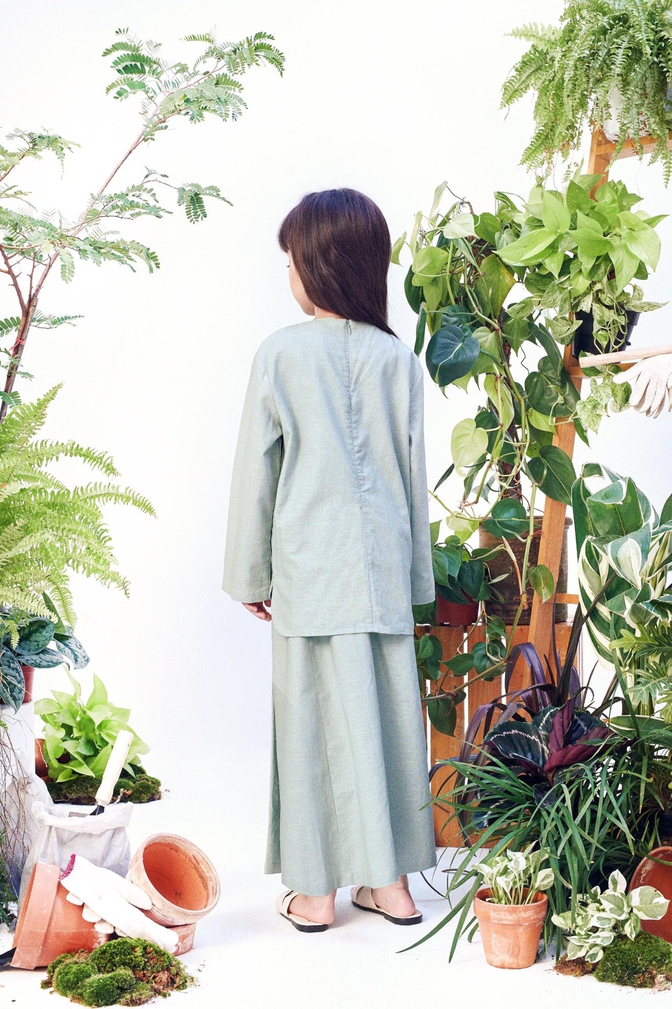 The Bumi Classic Kurung Top Sage Green