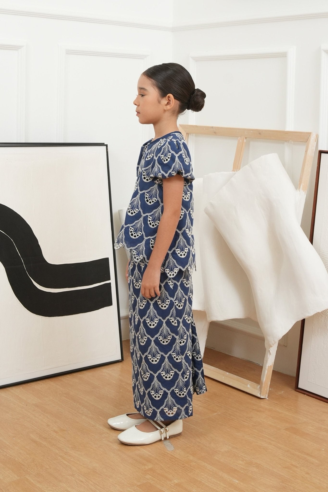 The Canvas Collection Girl Amelia Kurung Set Navy Blue Lace