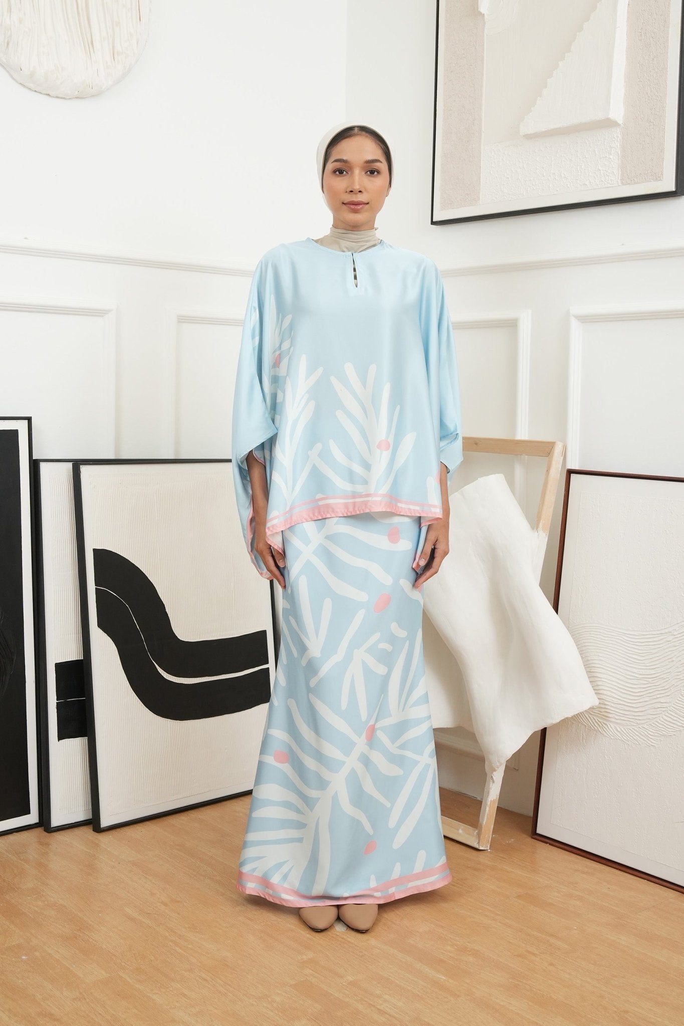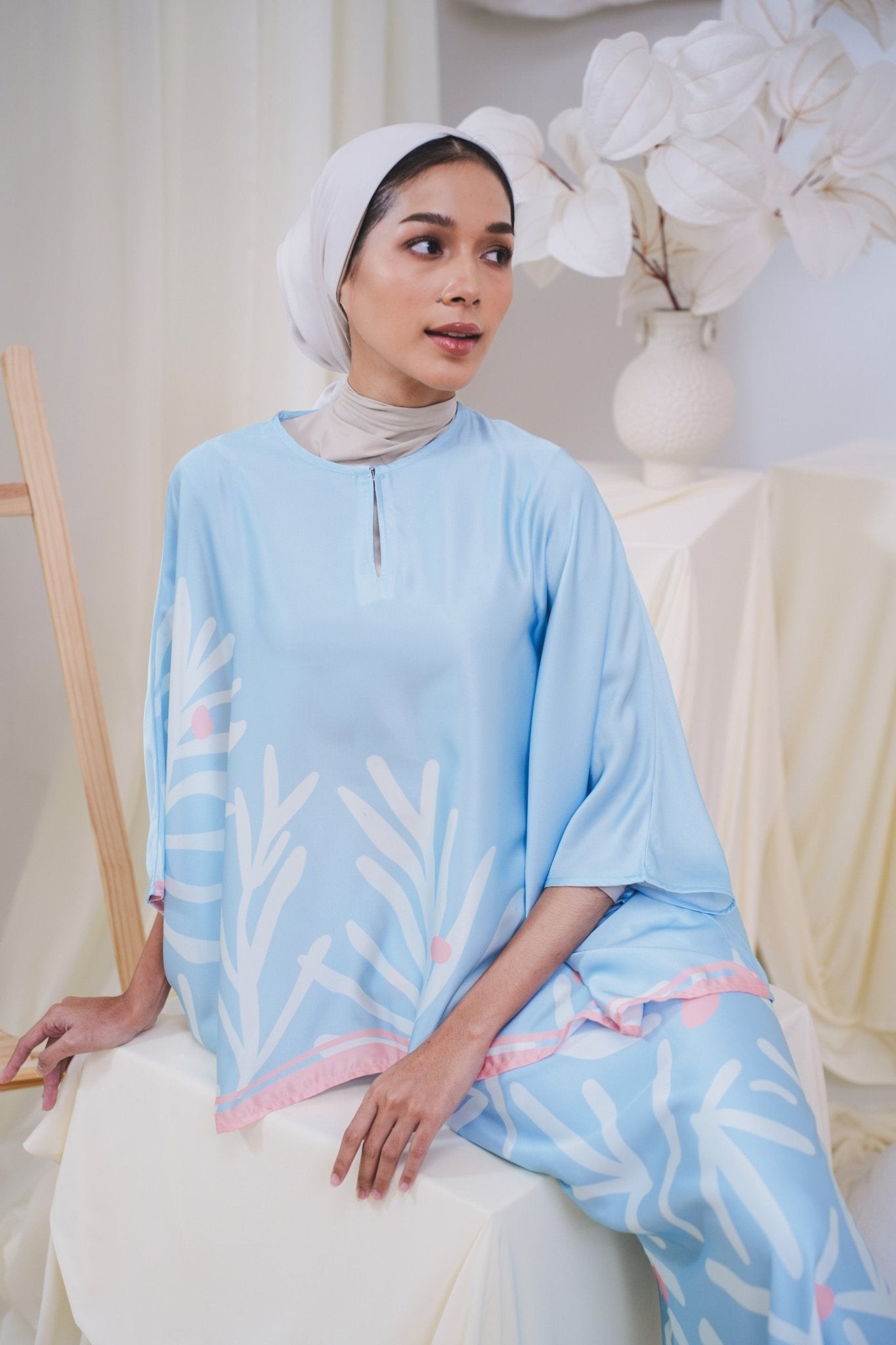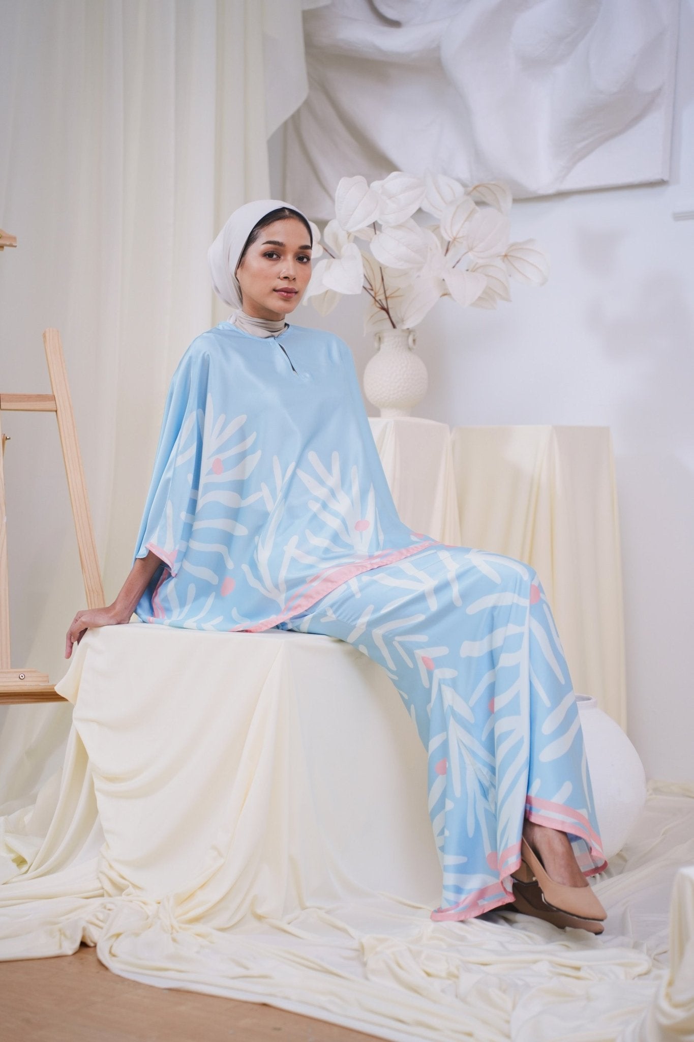 The Canvas Collection Women Saloma Kaftan Set Baby Blue Ivy Print