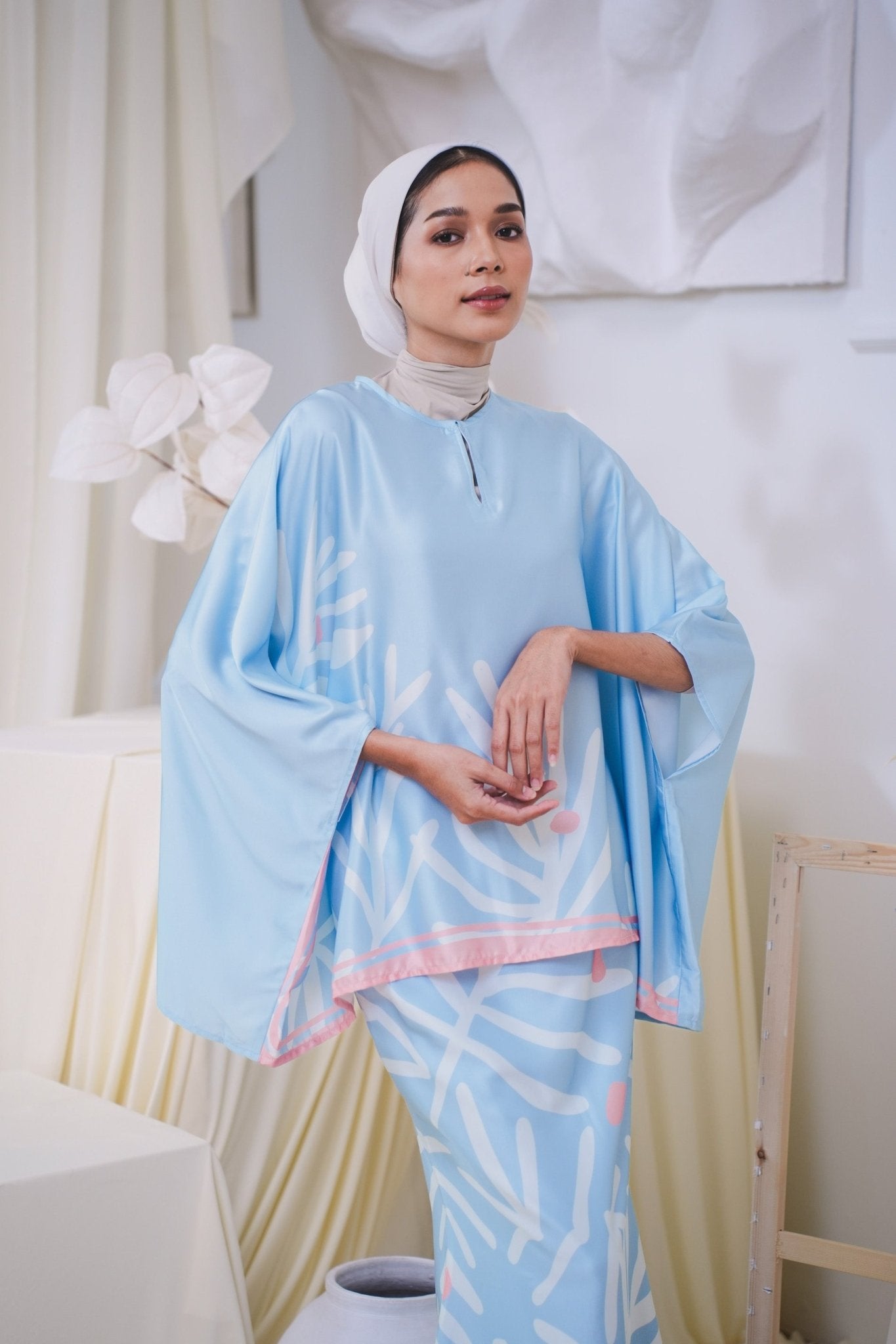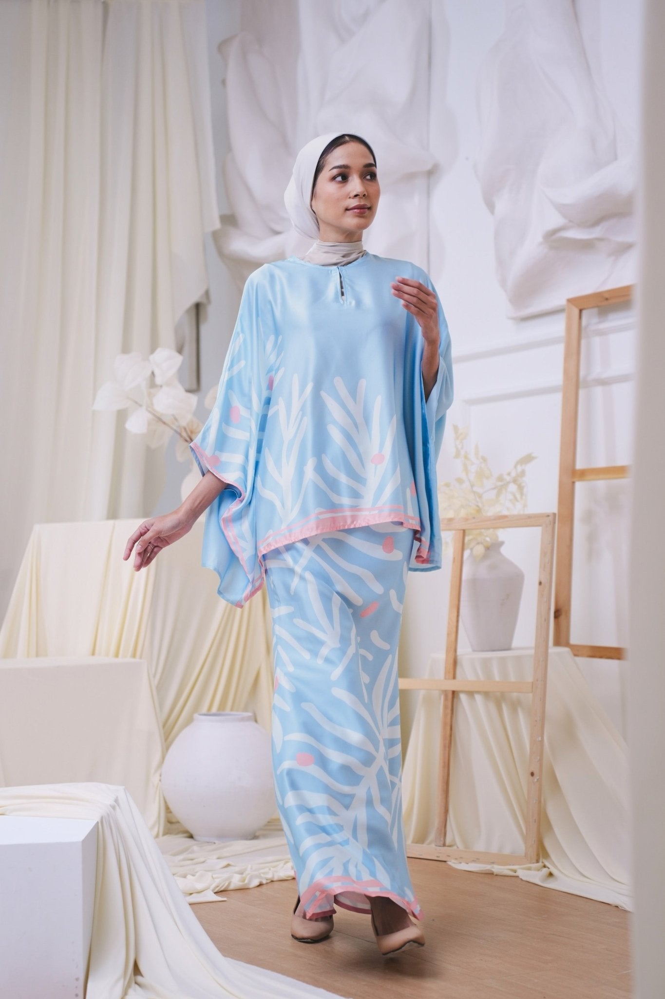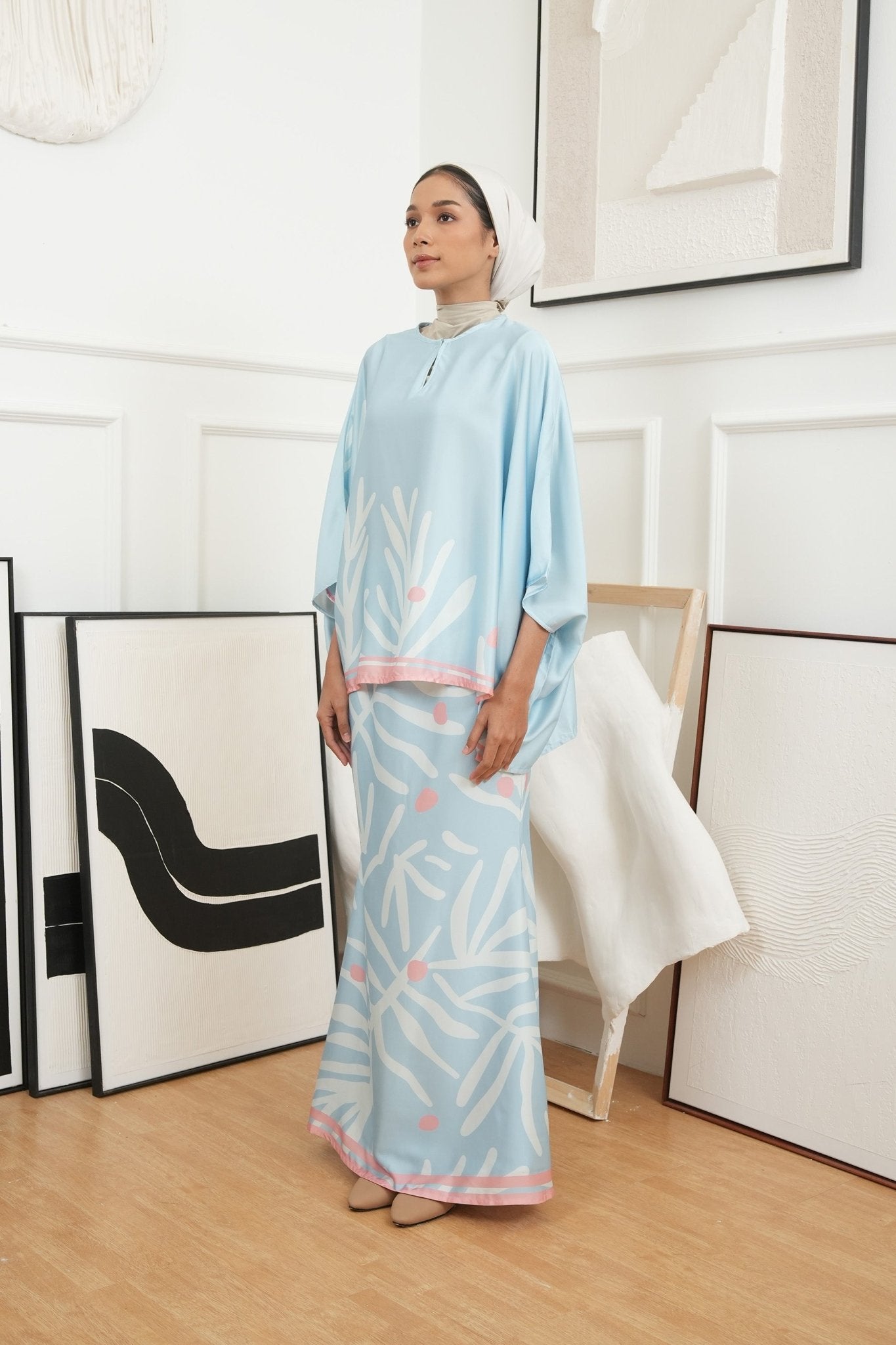 The Canvas Collection Women Saloma Kaftan Set Baby Blue Ivy Print