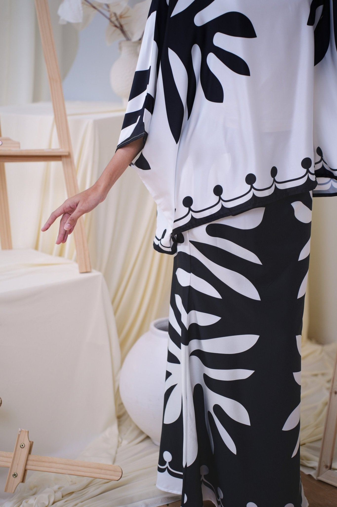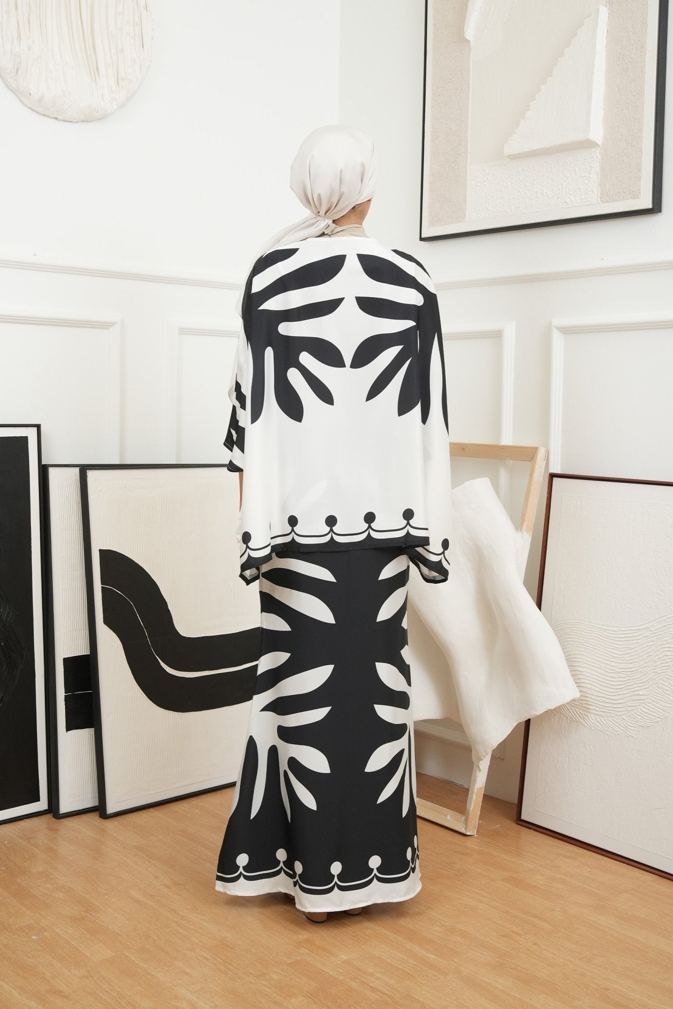 The Canvas Collection Women Saloma Kaftan Set Black & White Ivy Print