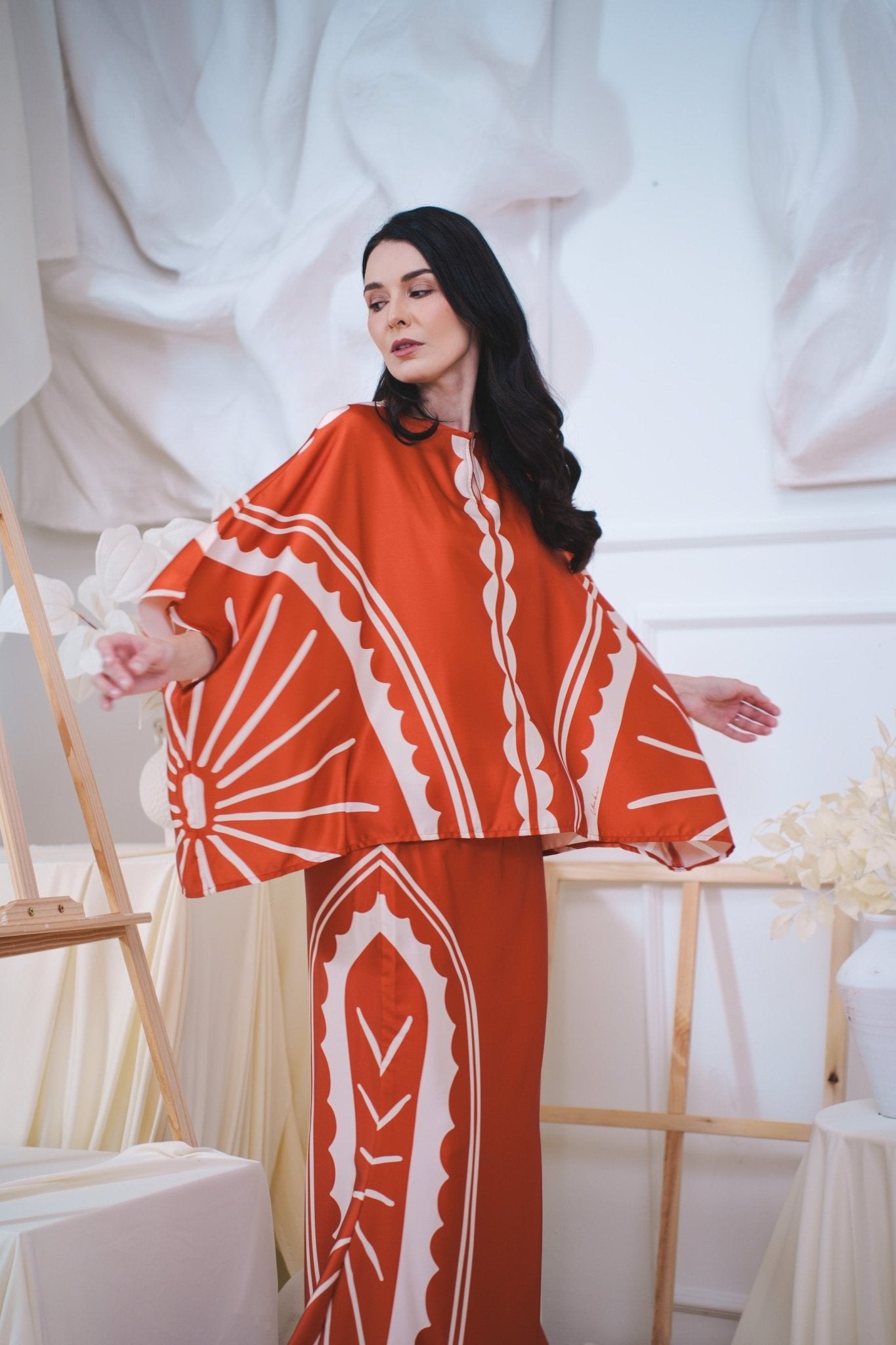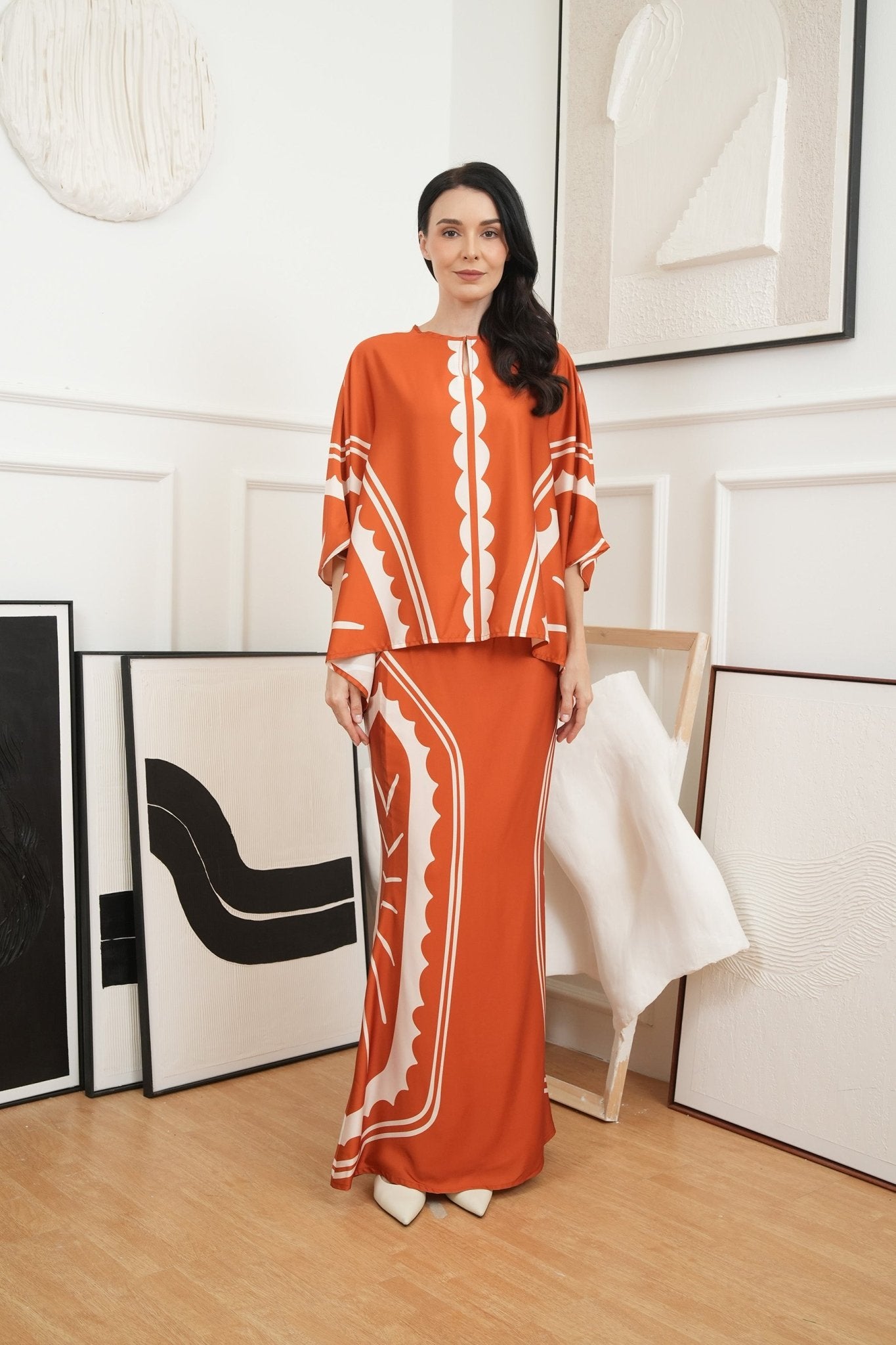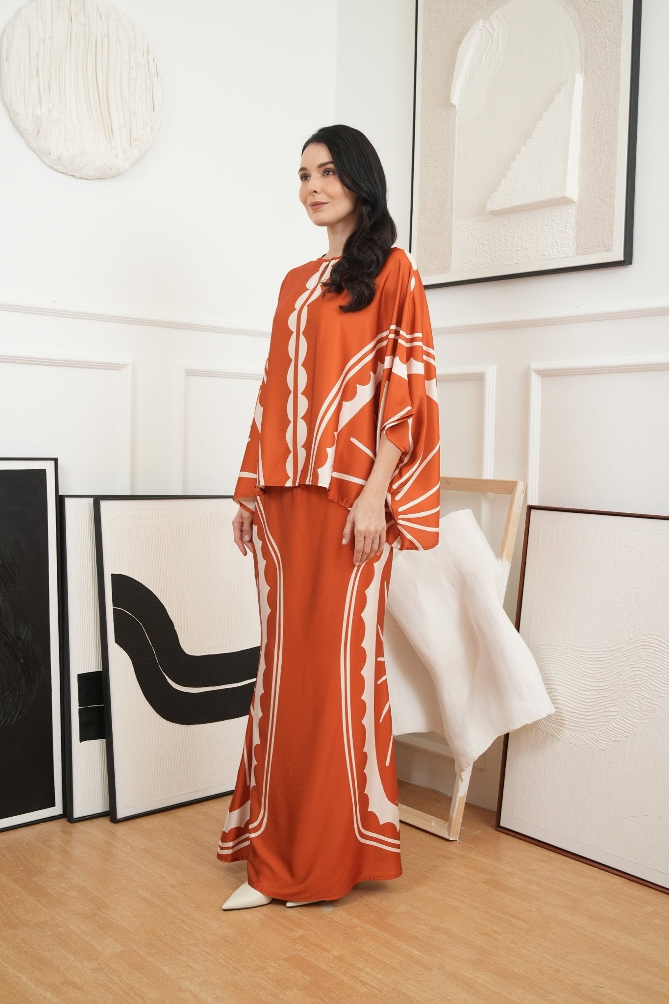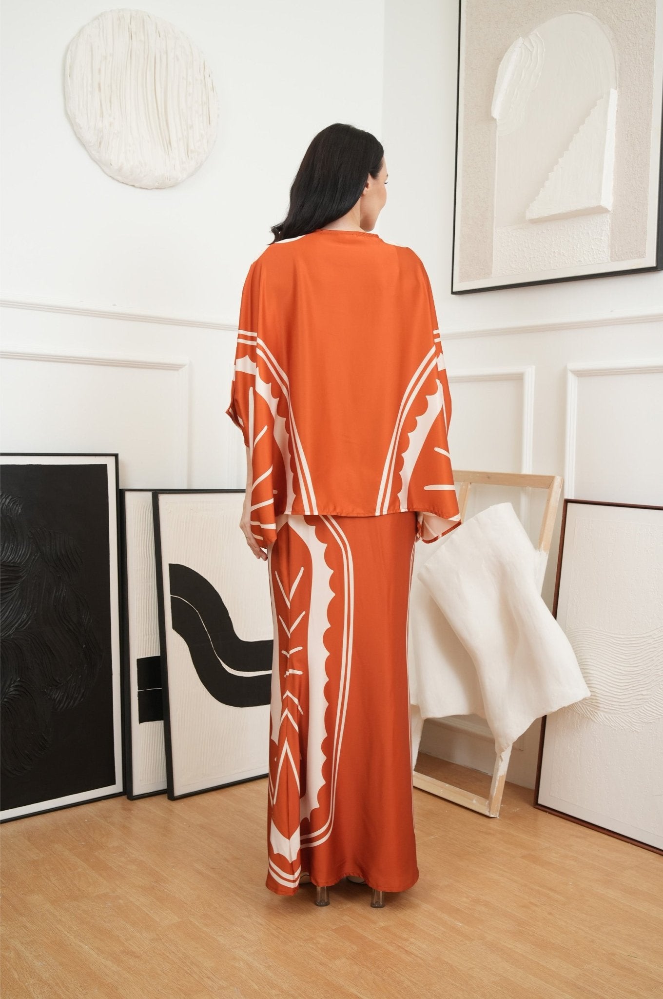 The Canvas Collection Women Saloma Kaftan Set Burnt Orange Matahari Print