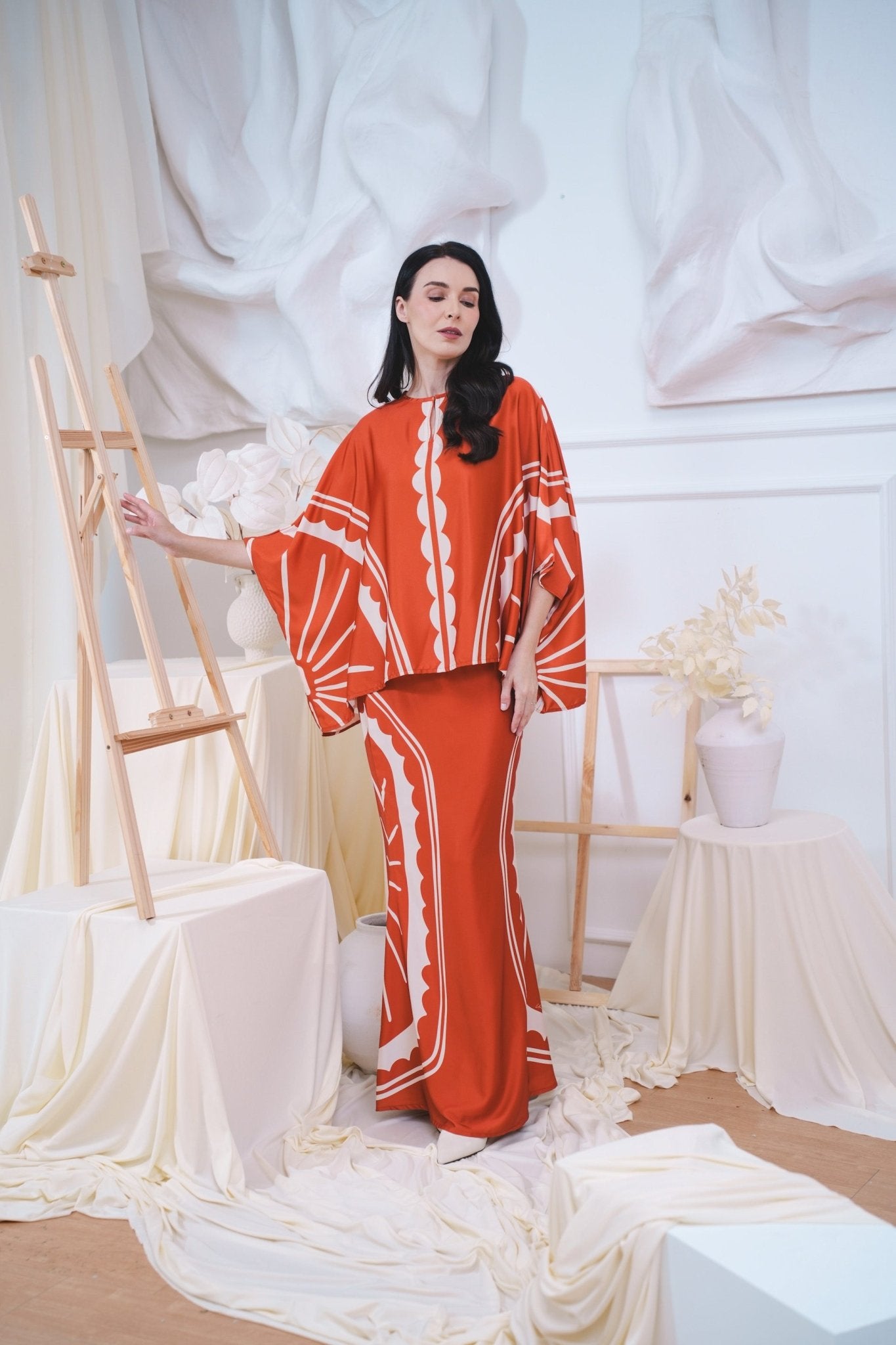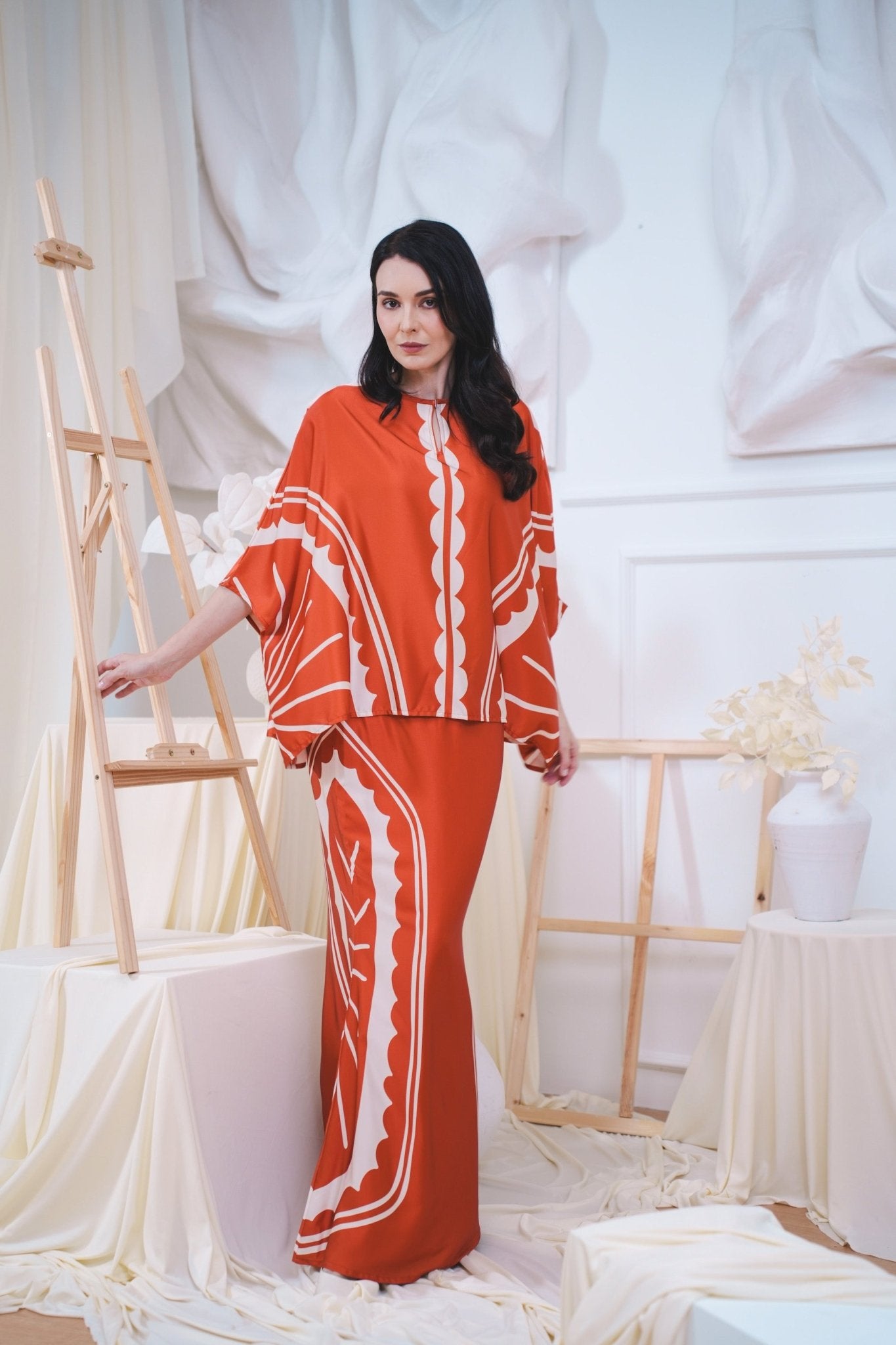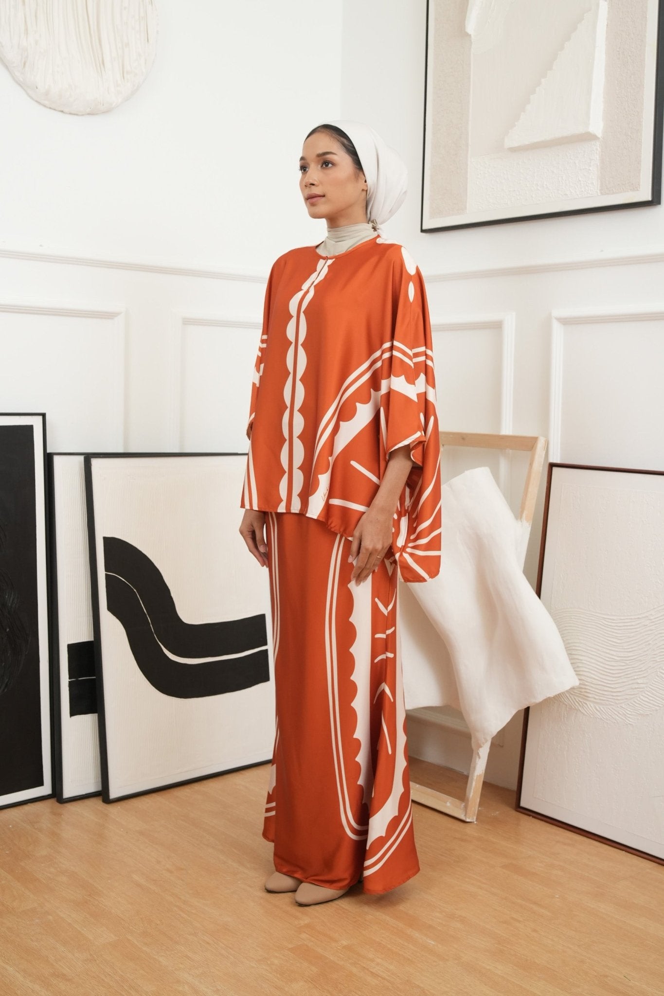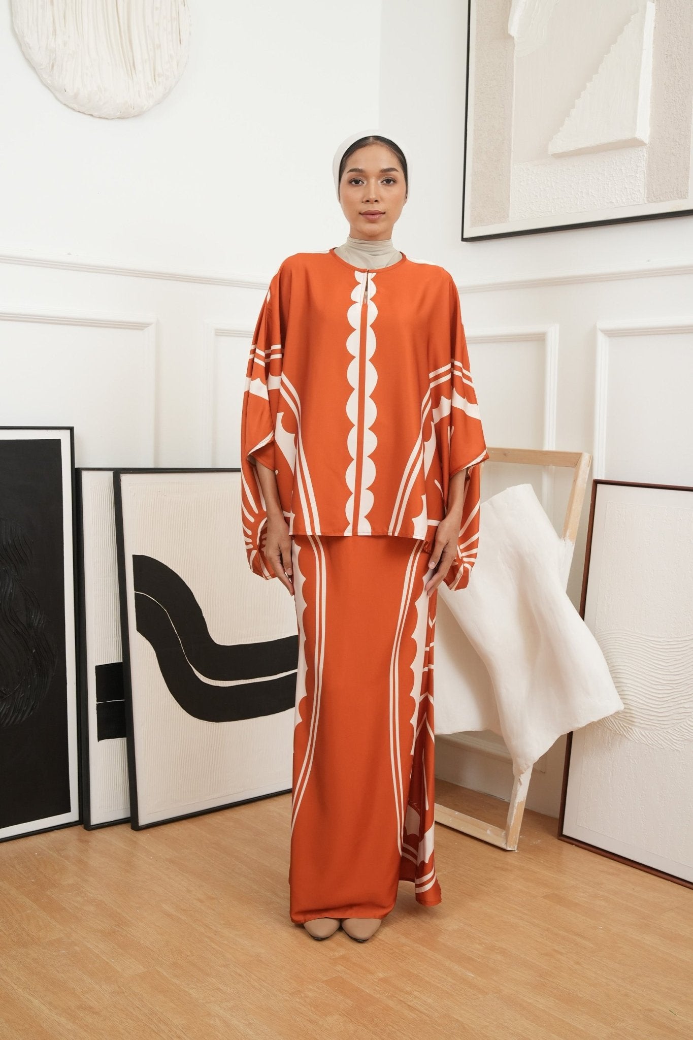The Canvas Collection Women Saloma Kaftan Set Burnt Orange Matahari Print