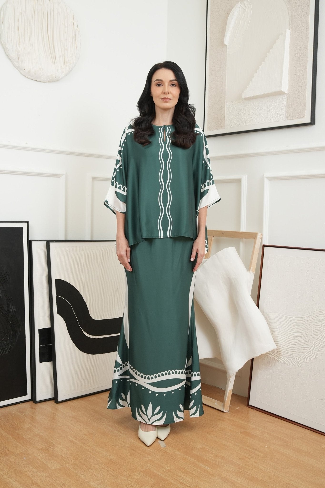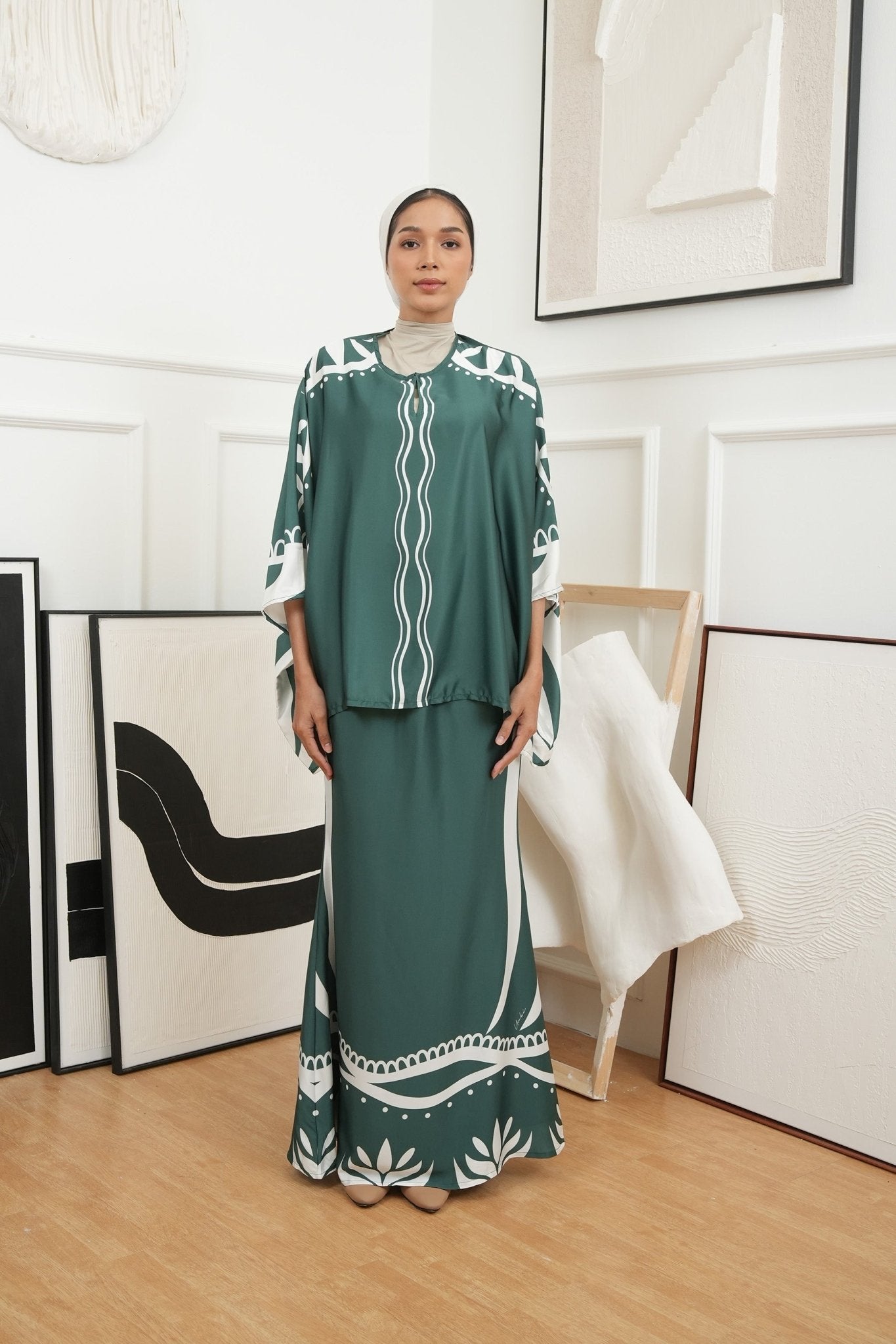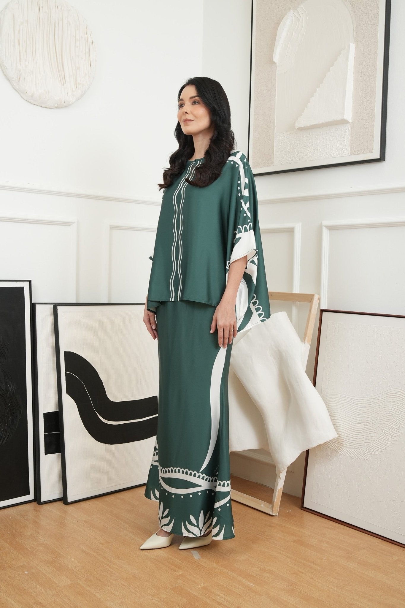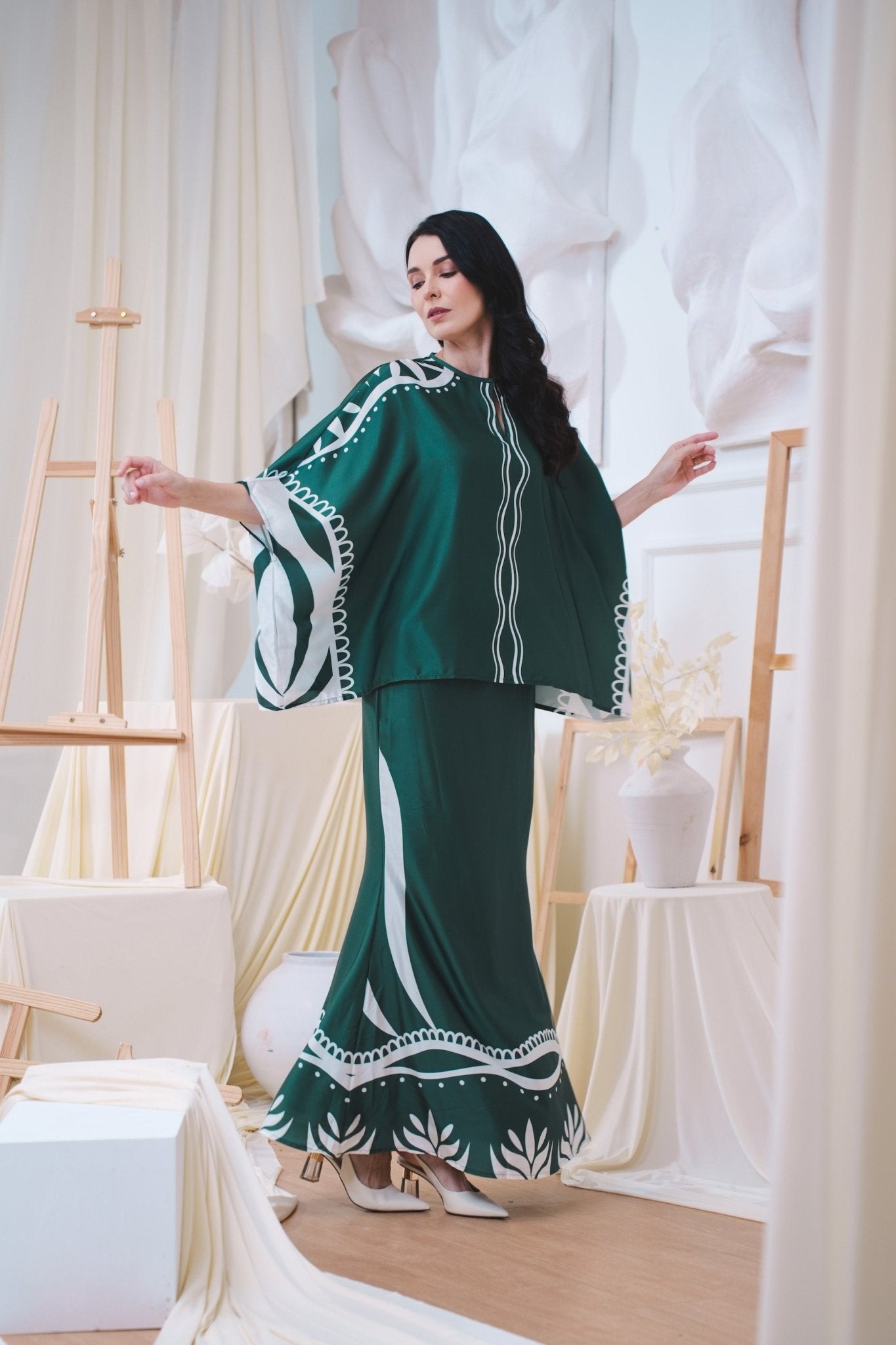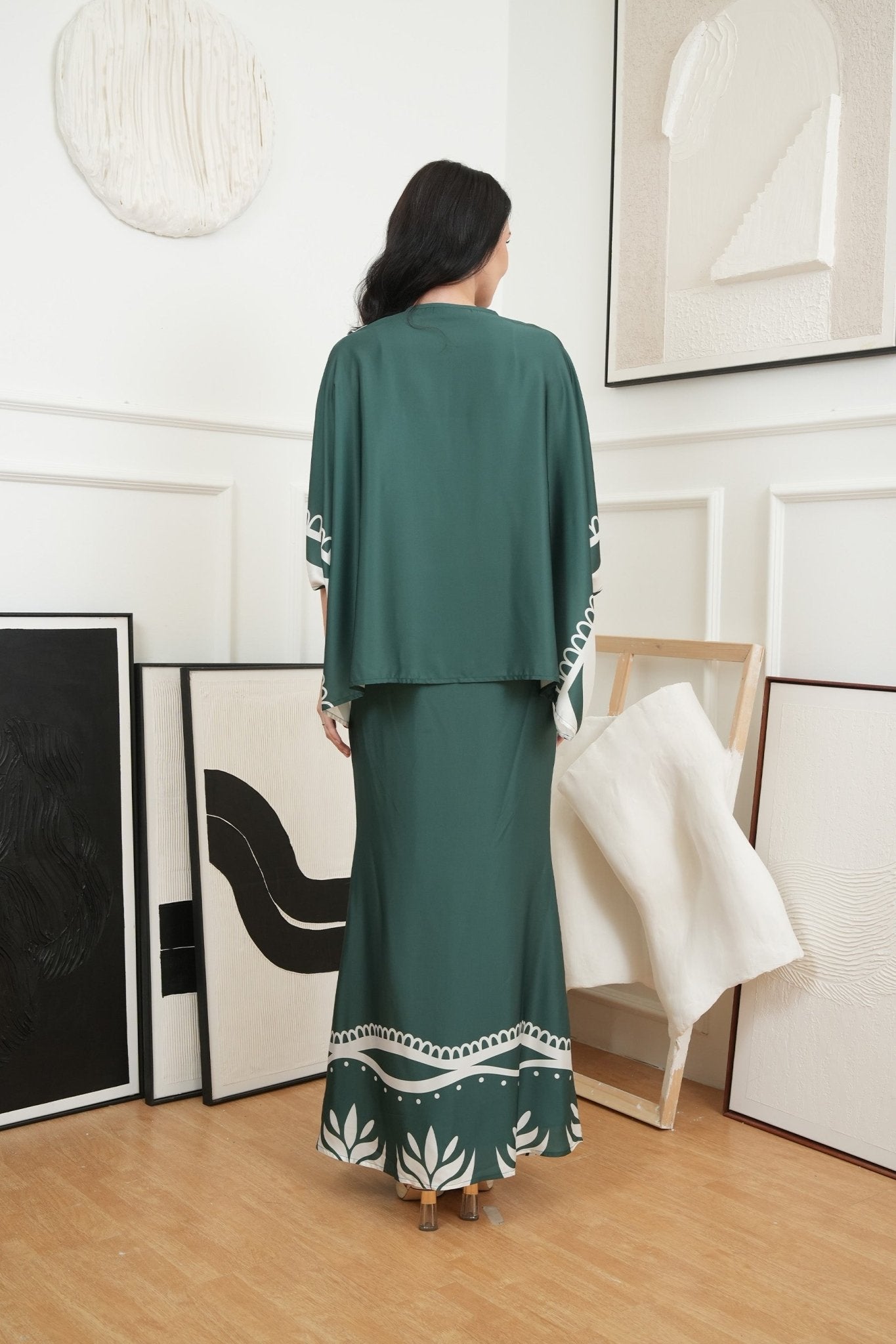The Canvas Collection Women Saloma Kaftan Set Emerald Green Ivy Print