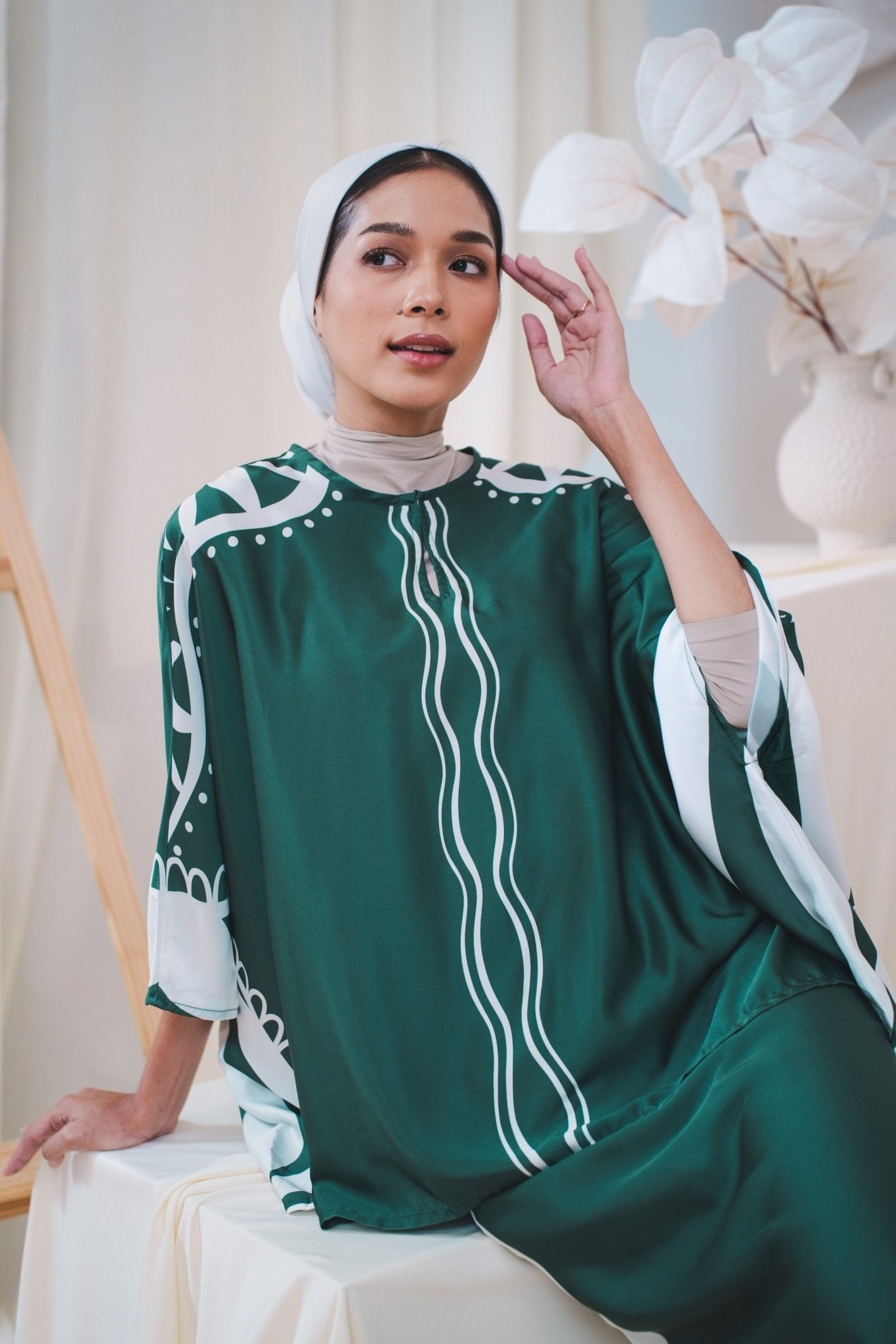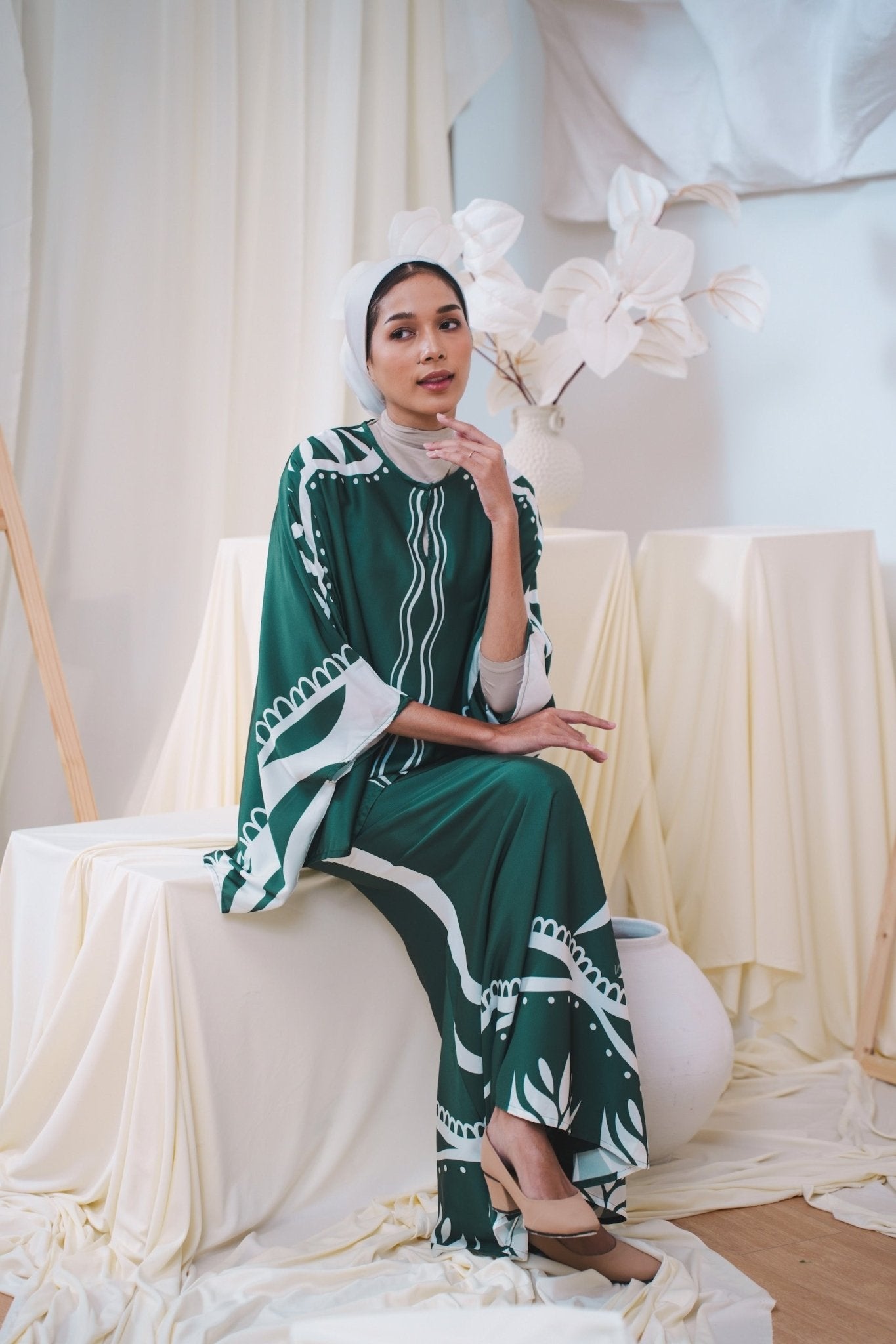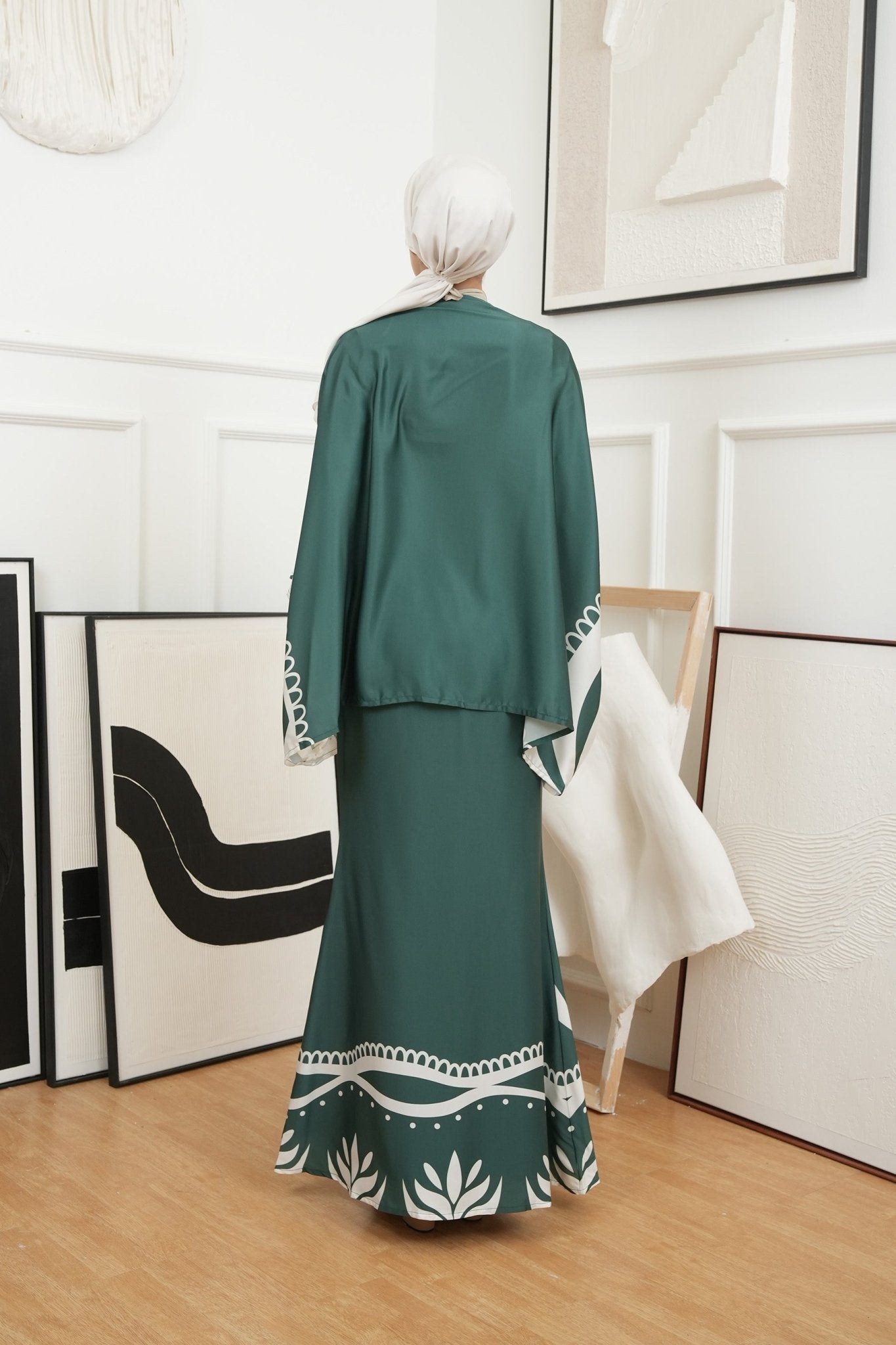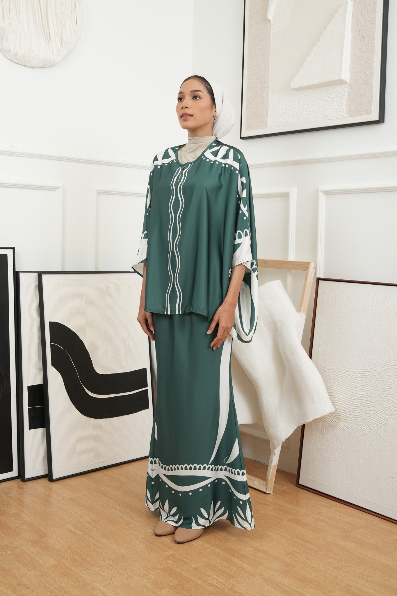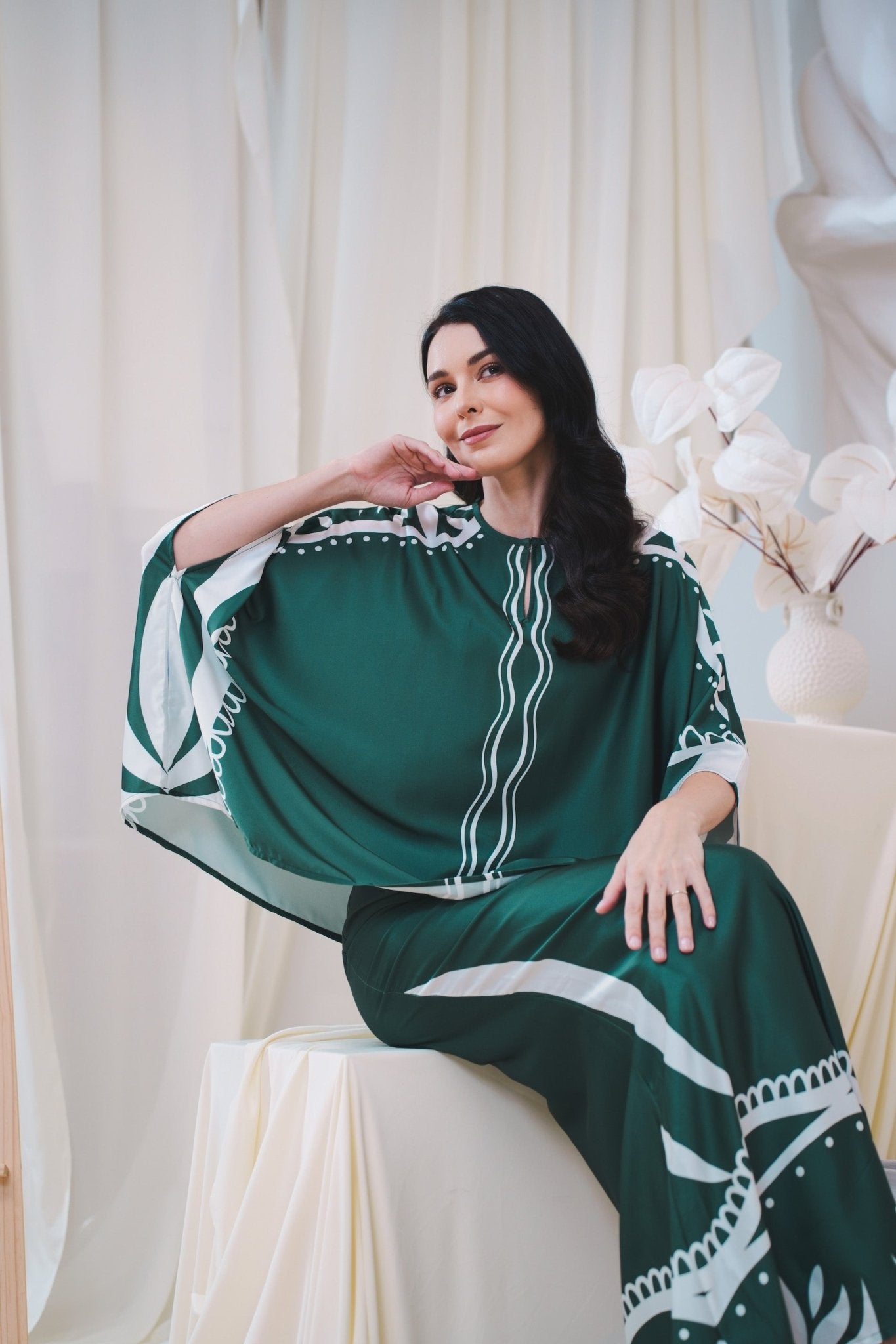 The Canvas Collection Women Saloma Kaftan Set Emerald Green Ivy Print