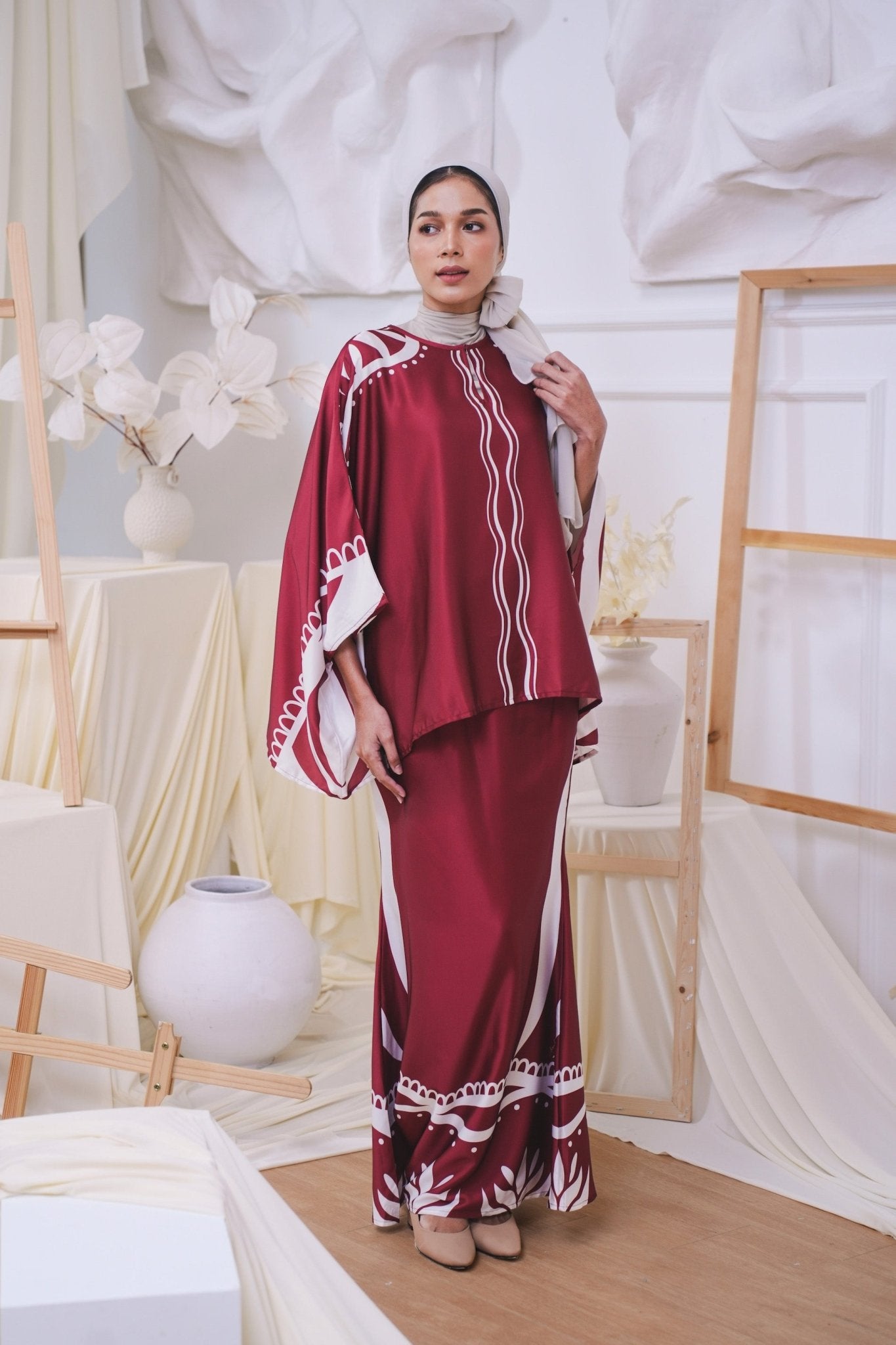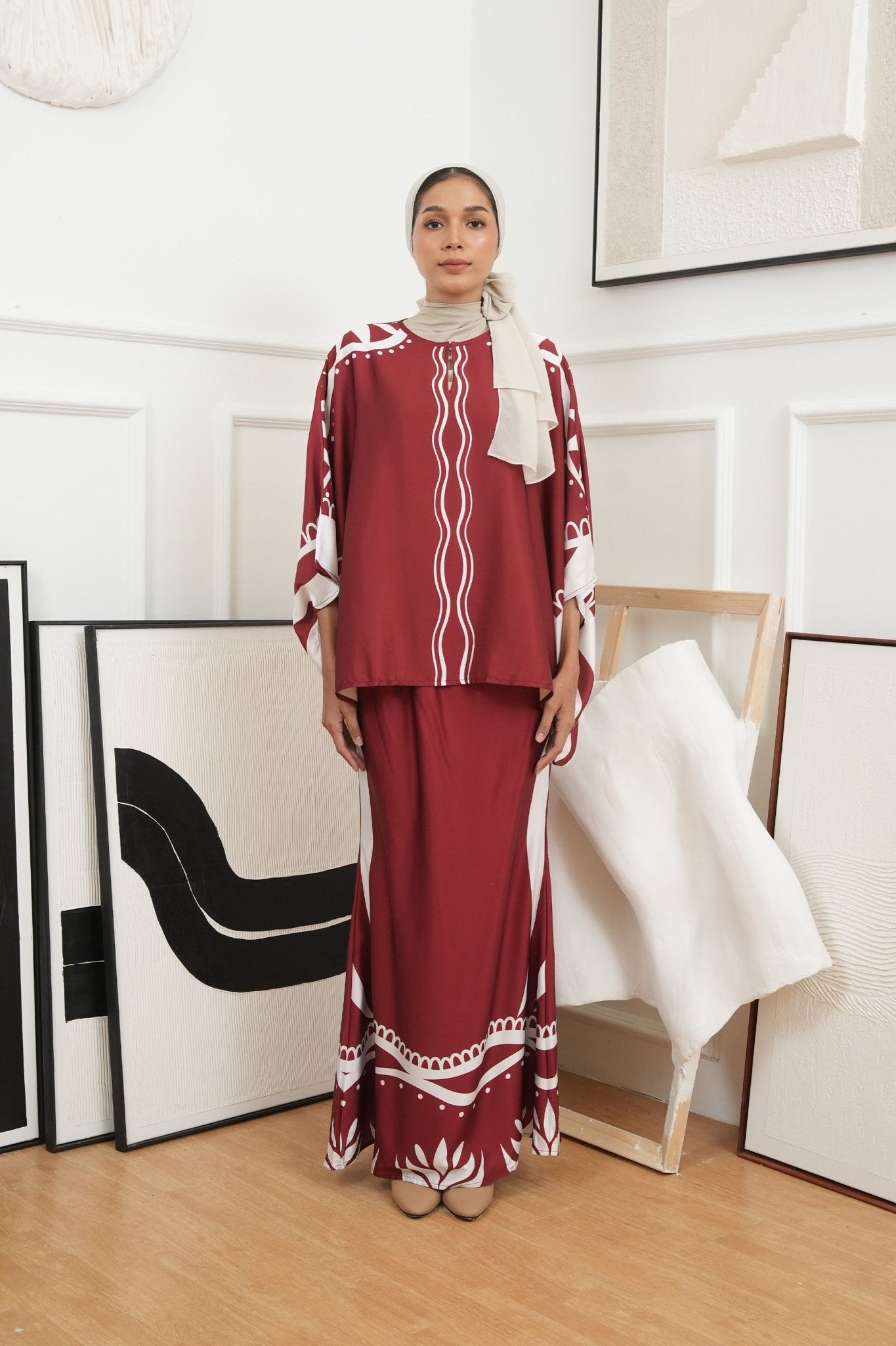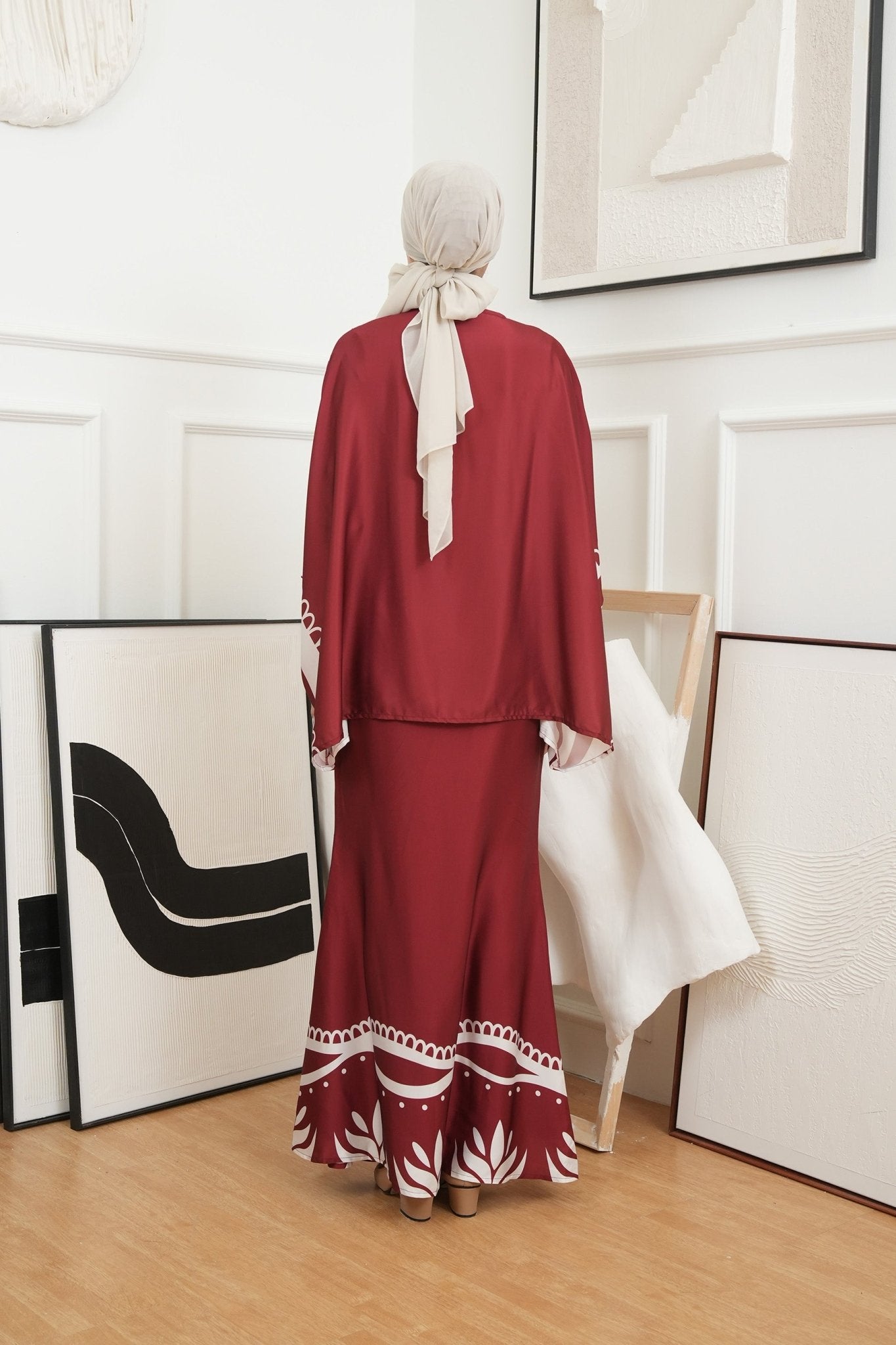 The Canvas Collection Women Saloma Kaftan Set Maroon Ivy Print