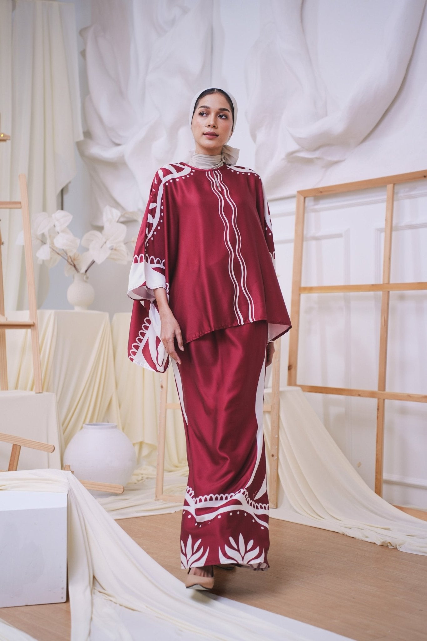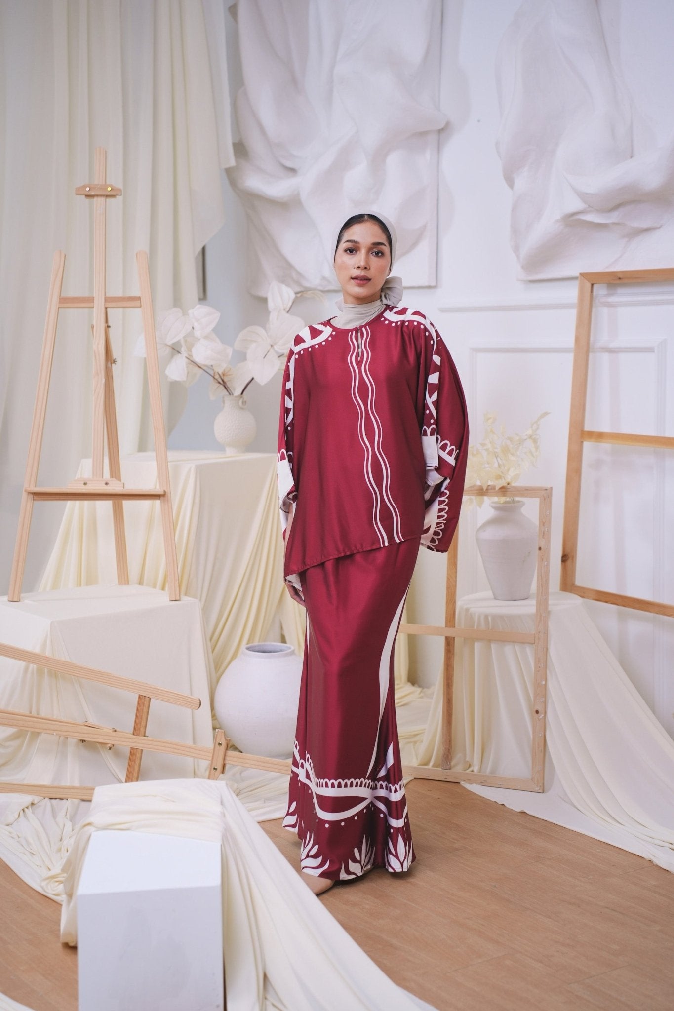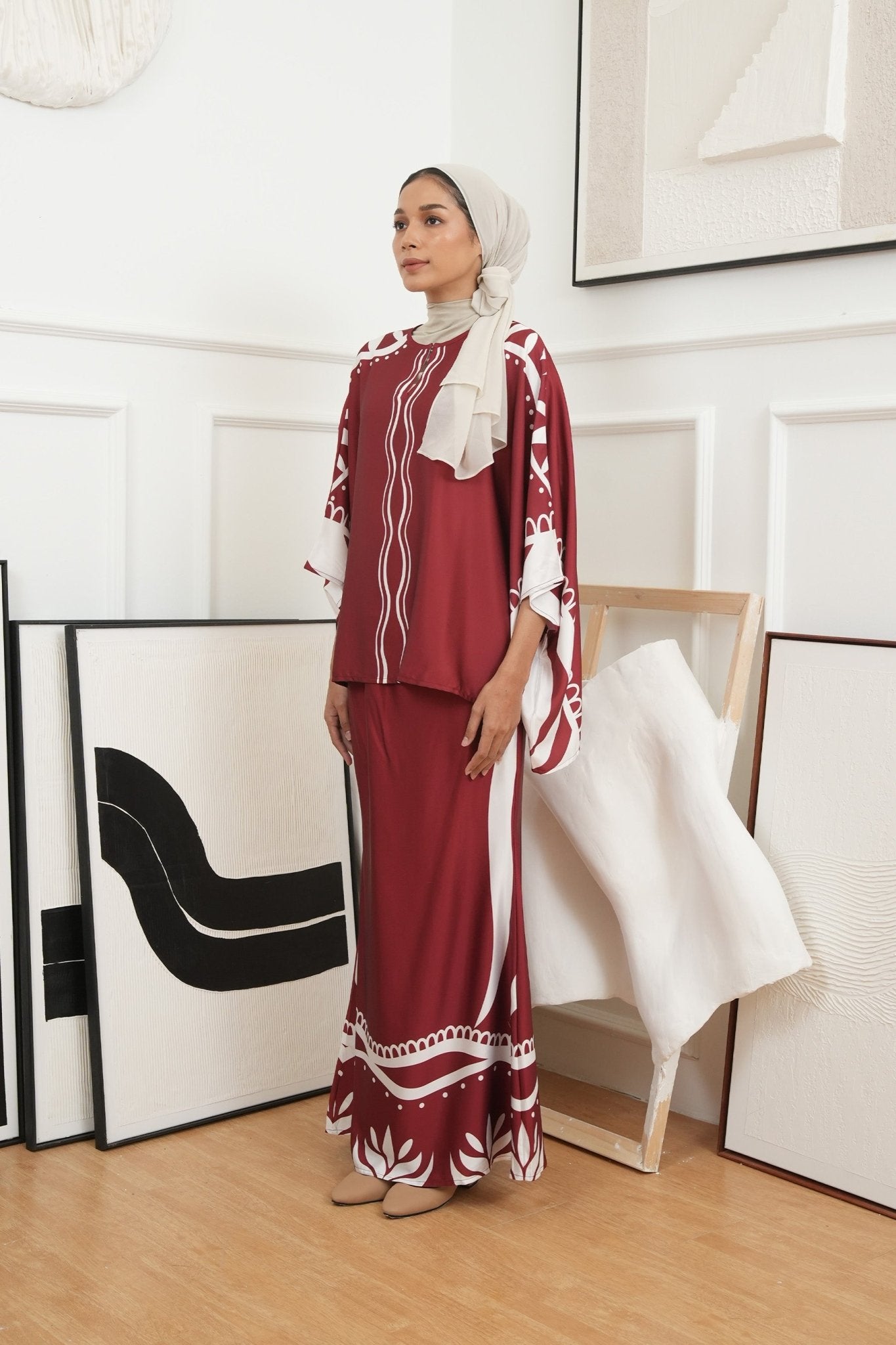 The Canvas Collection Women Saloma Kaftan Set Maroon Ivy Print
