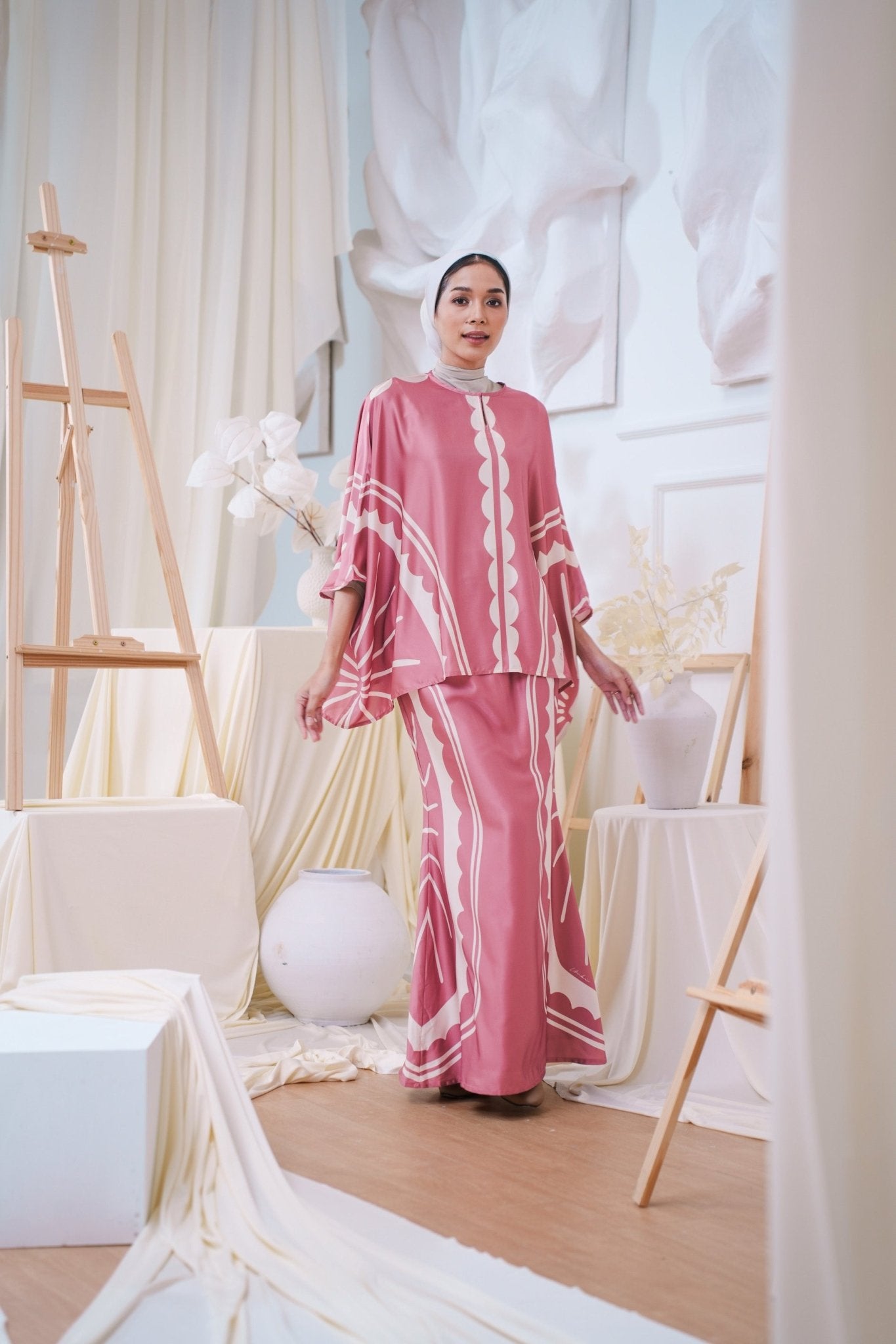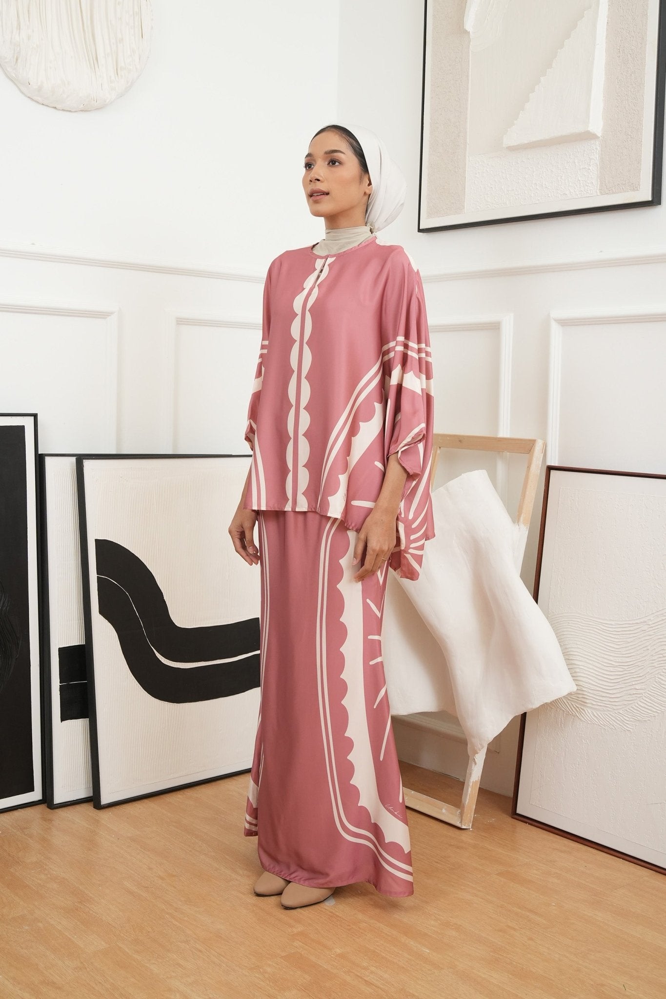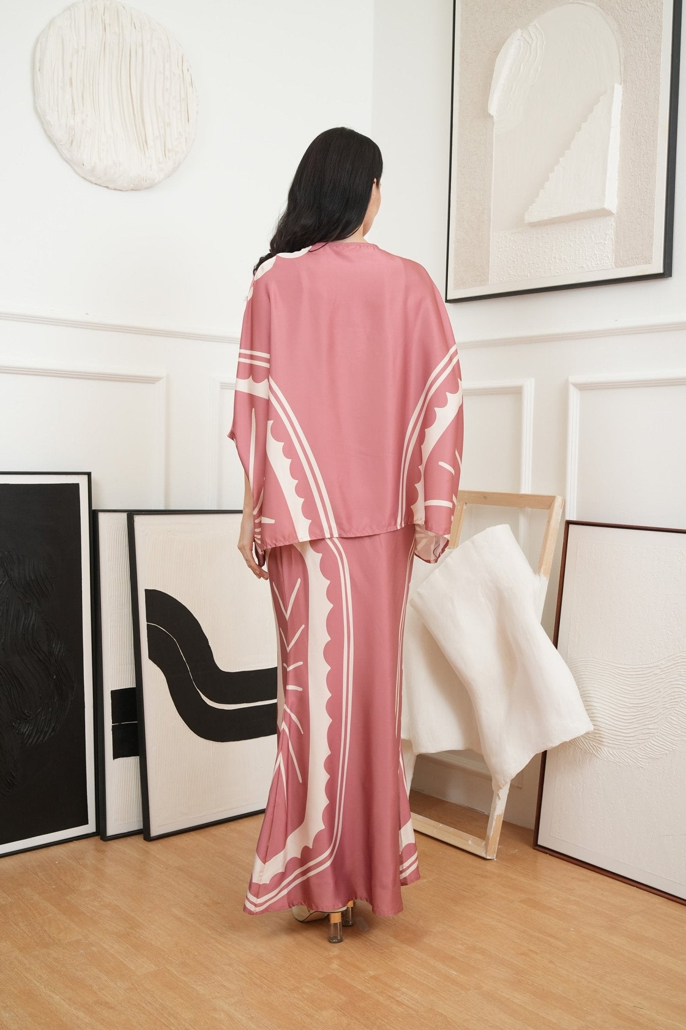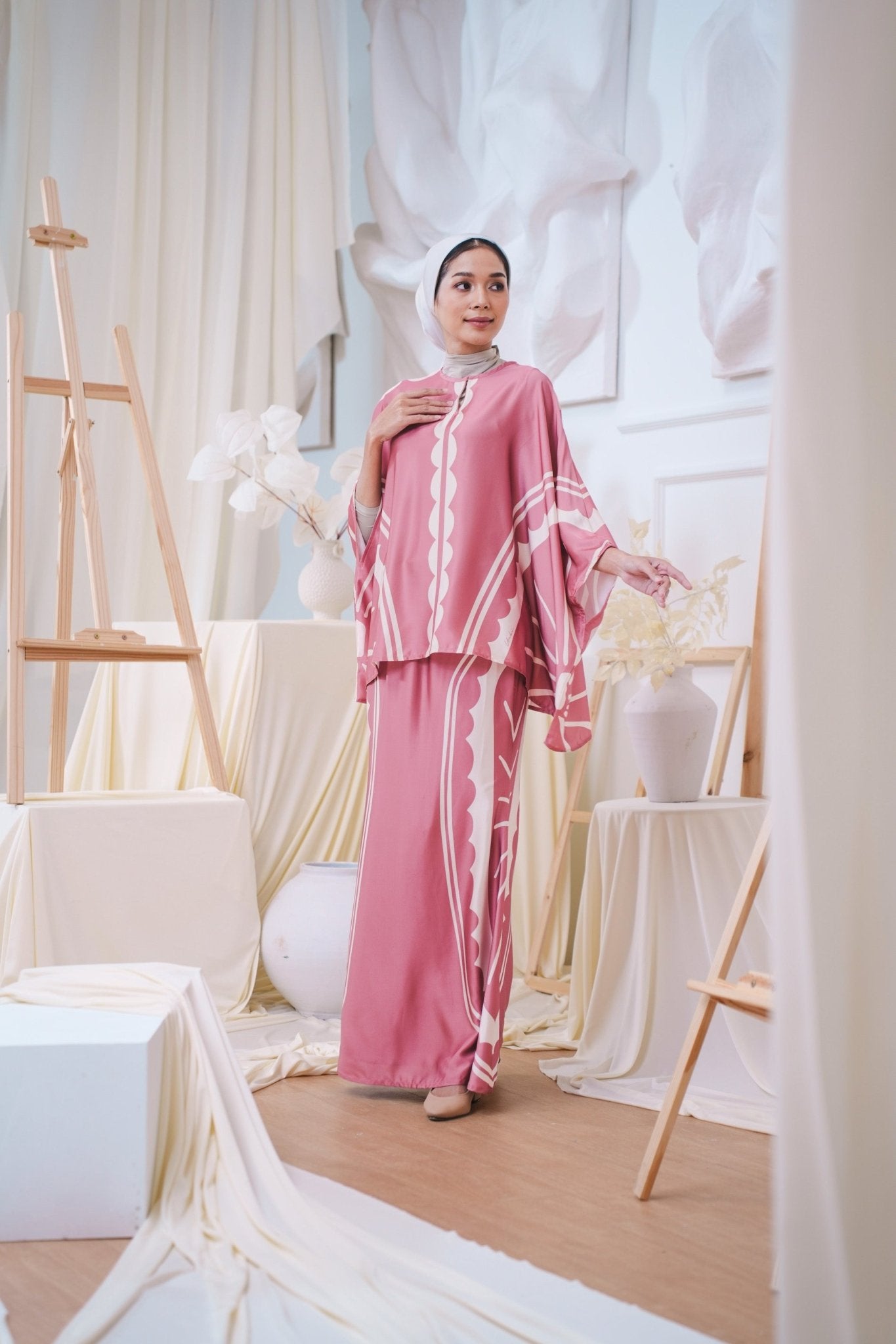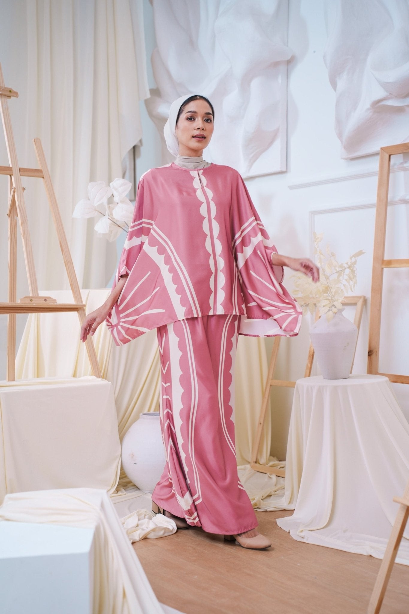 The Canvas Collection Women Saloma Kaftan Set Warm Pink Matahari Print