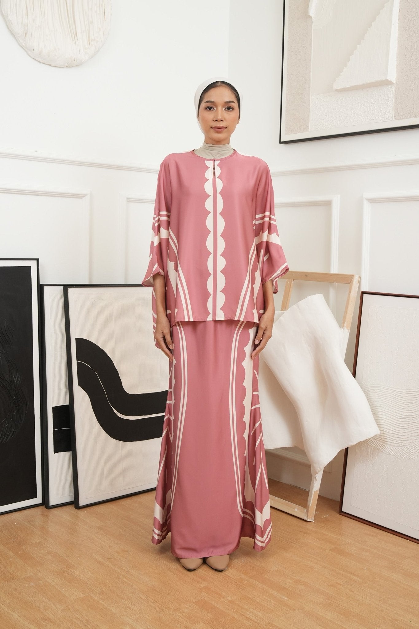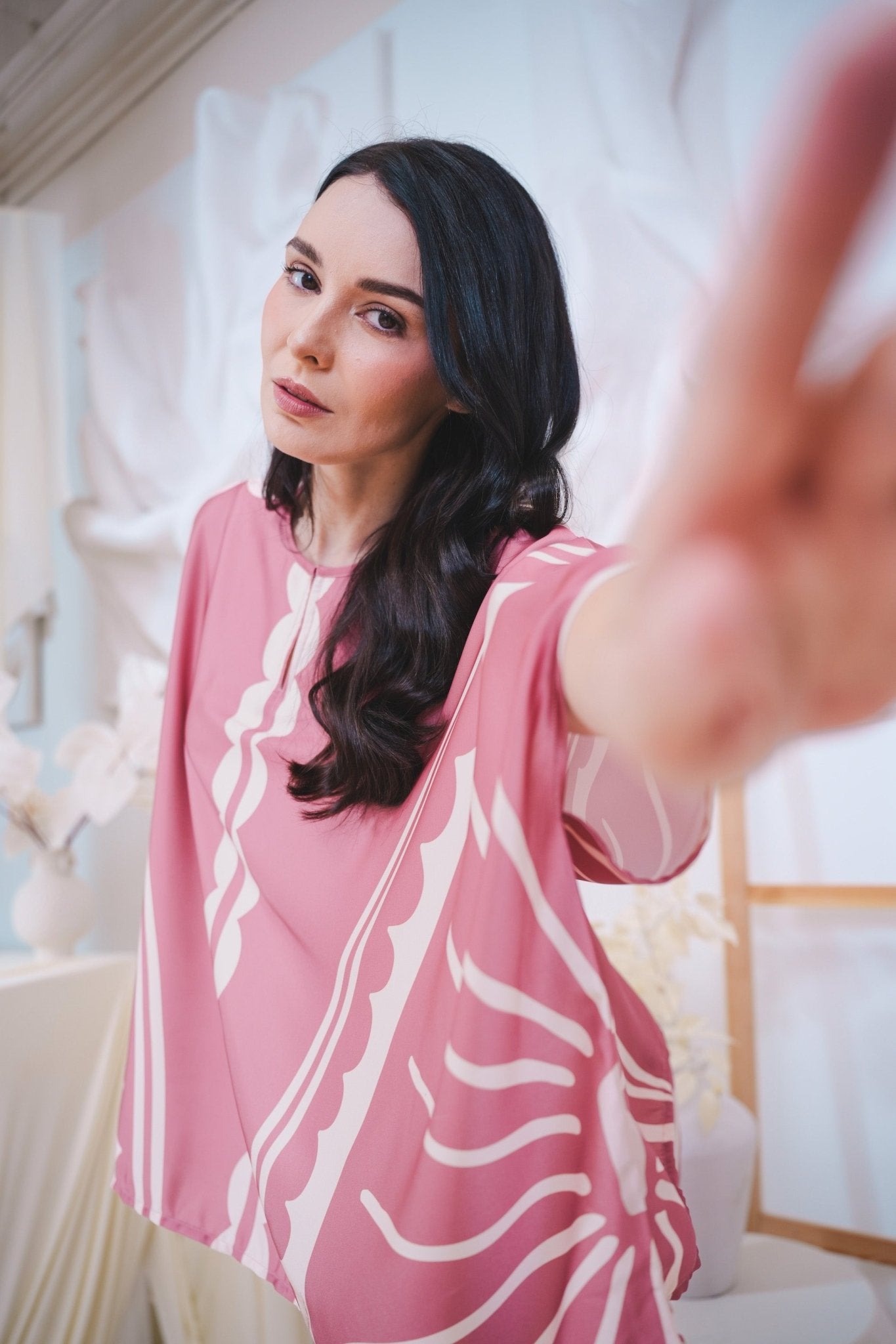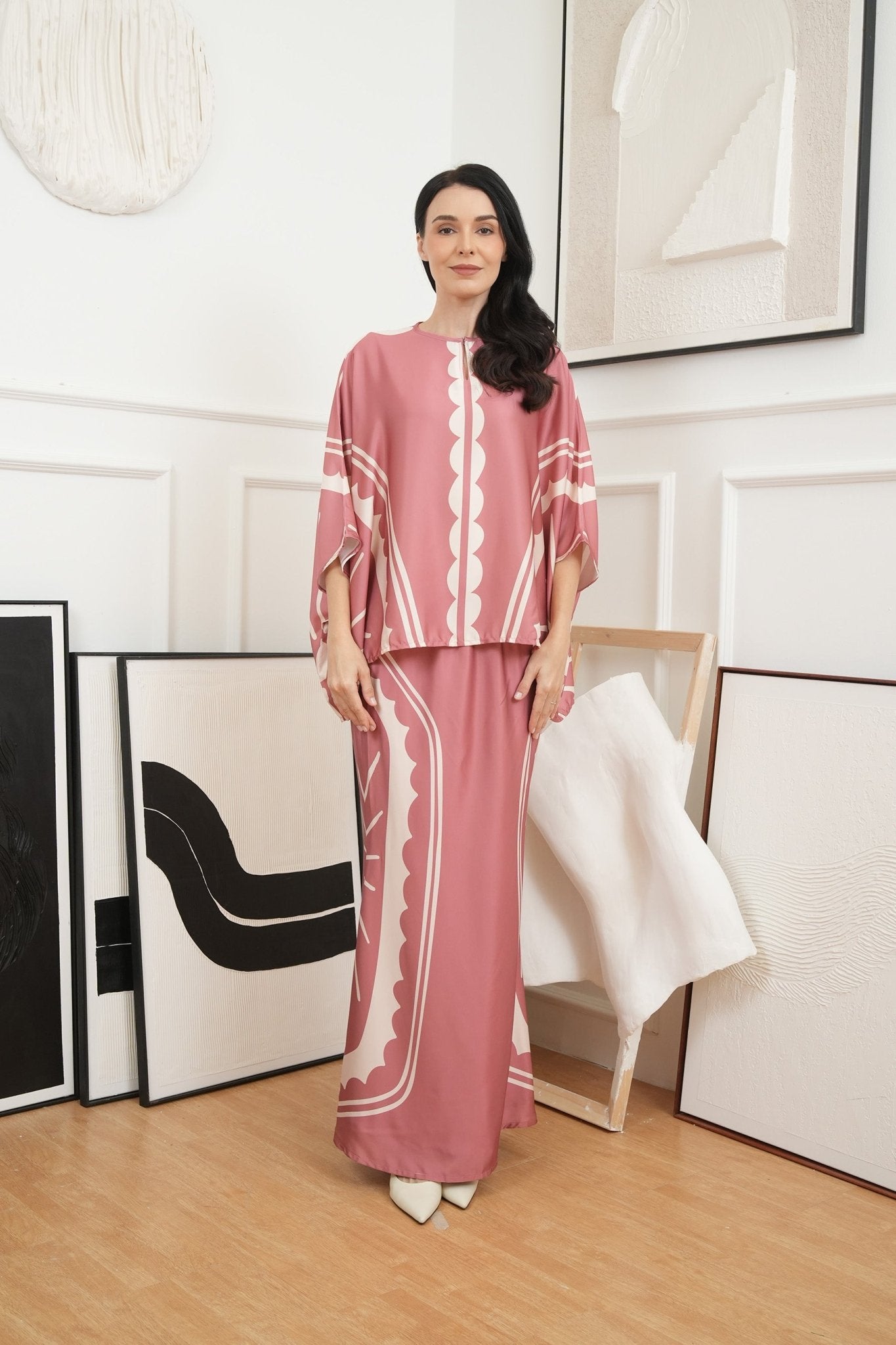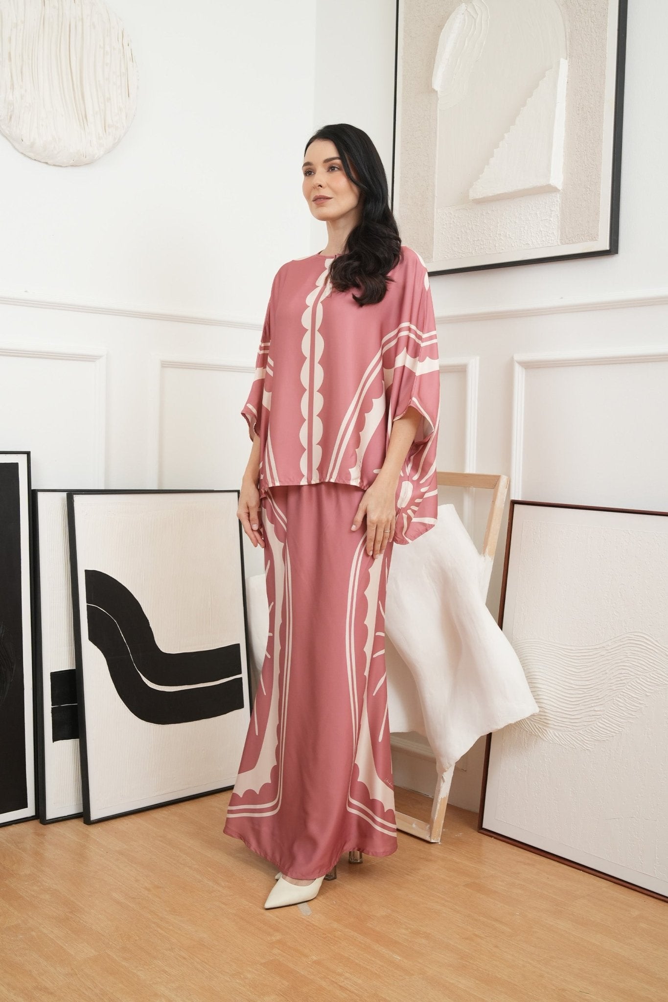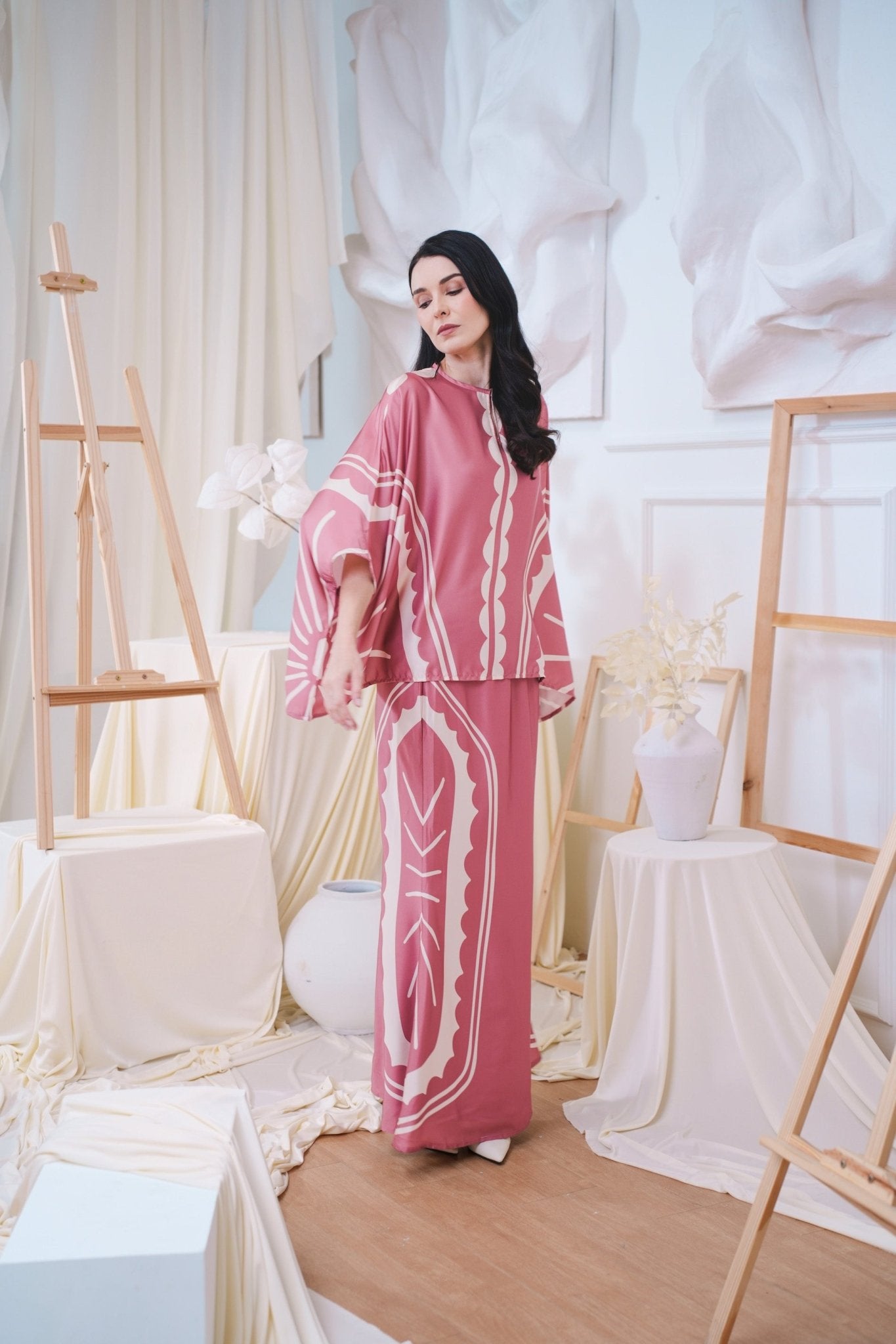 The Canvas Collection Women Saloma Kaftan Set Warm Pink Matahari Print