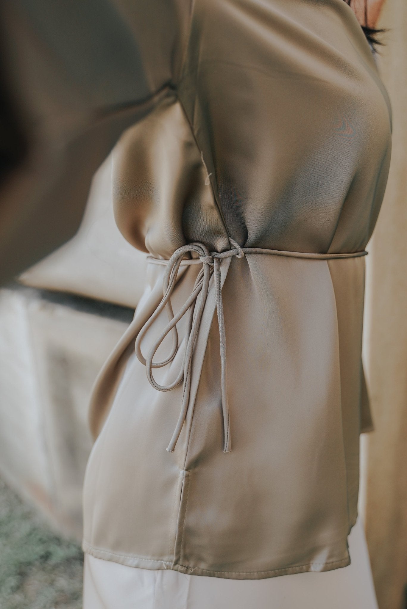The City Breeze Pt.2 Women Long Sleeves Satin Blouse With Waist String Latte