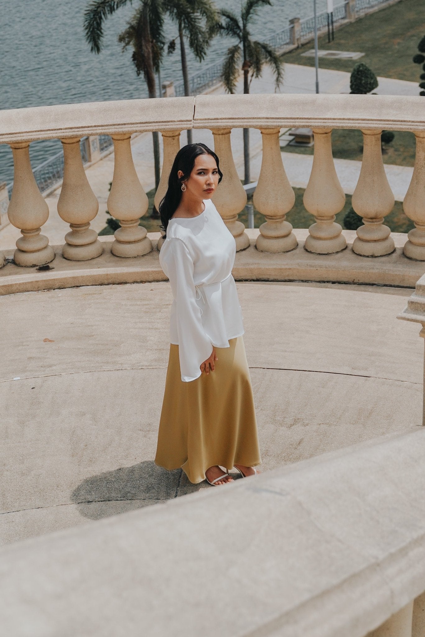The City Breeze Pt.2 Women Long Sleeves Satin Blouse With Waist String White