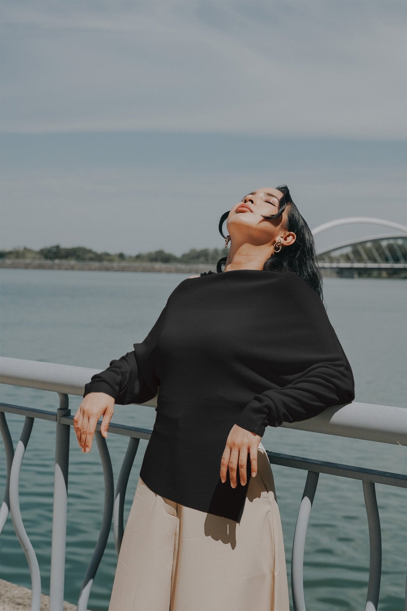 The City Breeze Pt.2 Women Off-Shoulder Knit Top Black