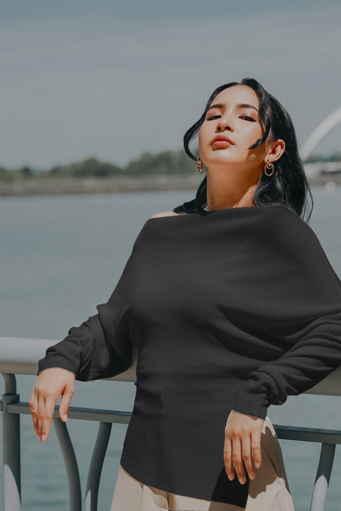 The City Breeze Pt.2 Women Off-Shoulder Knit Top Dark Grey
