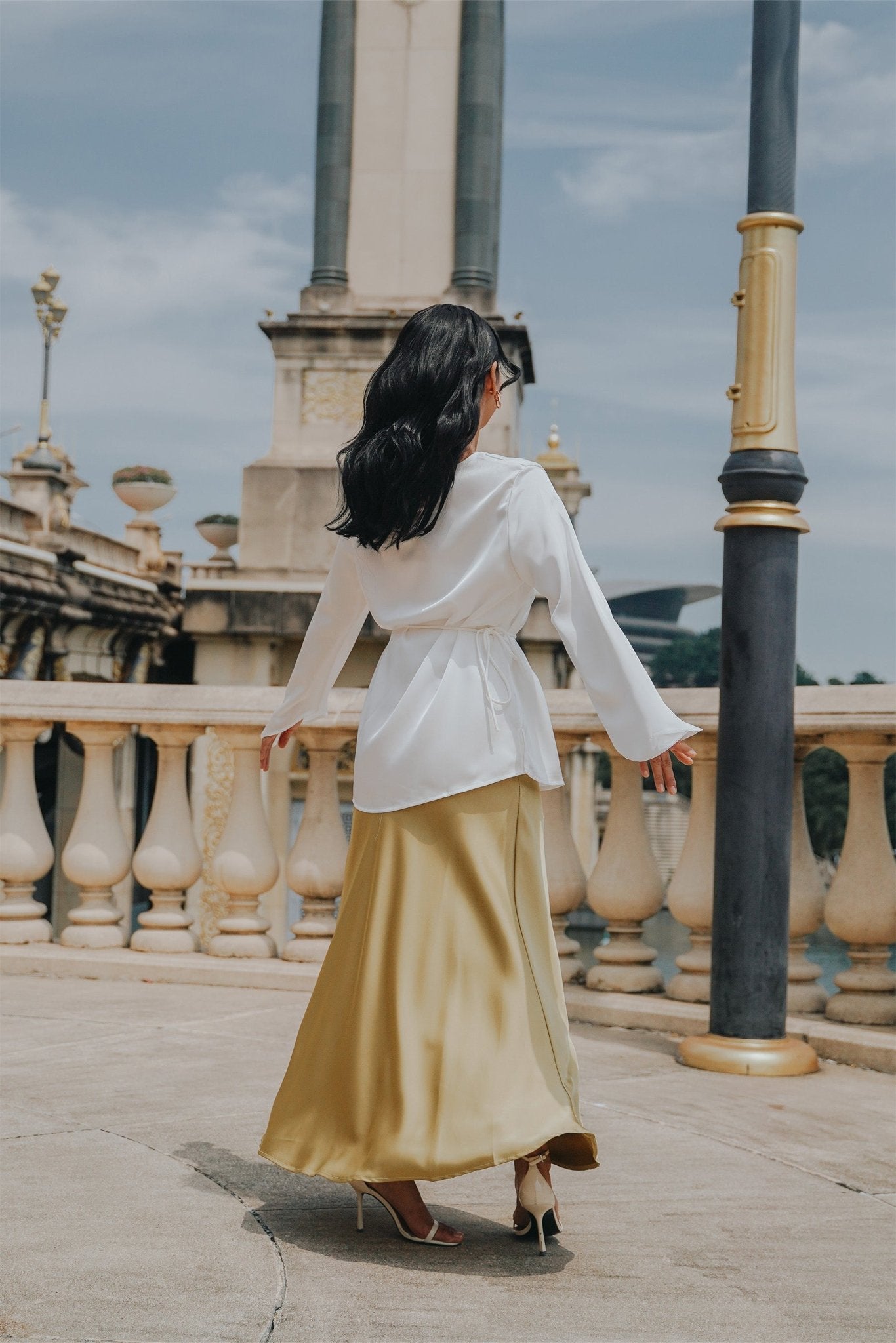 The City Breeze Pt.2 Women Satin Long Skirt Olive Gold