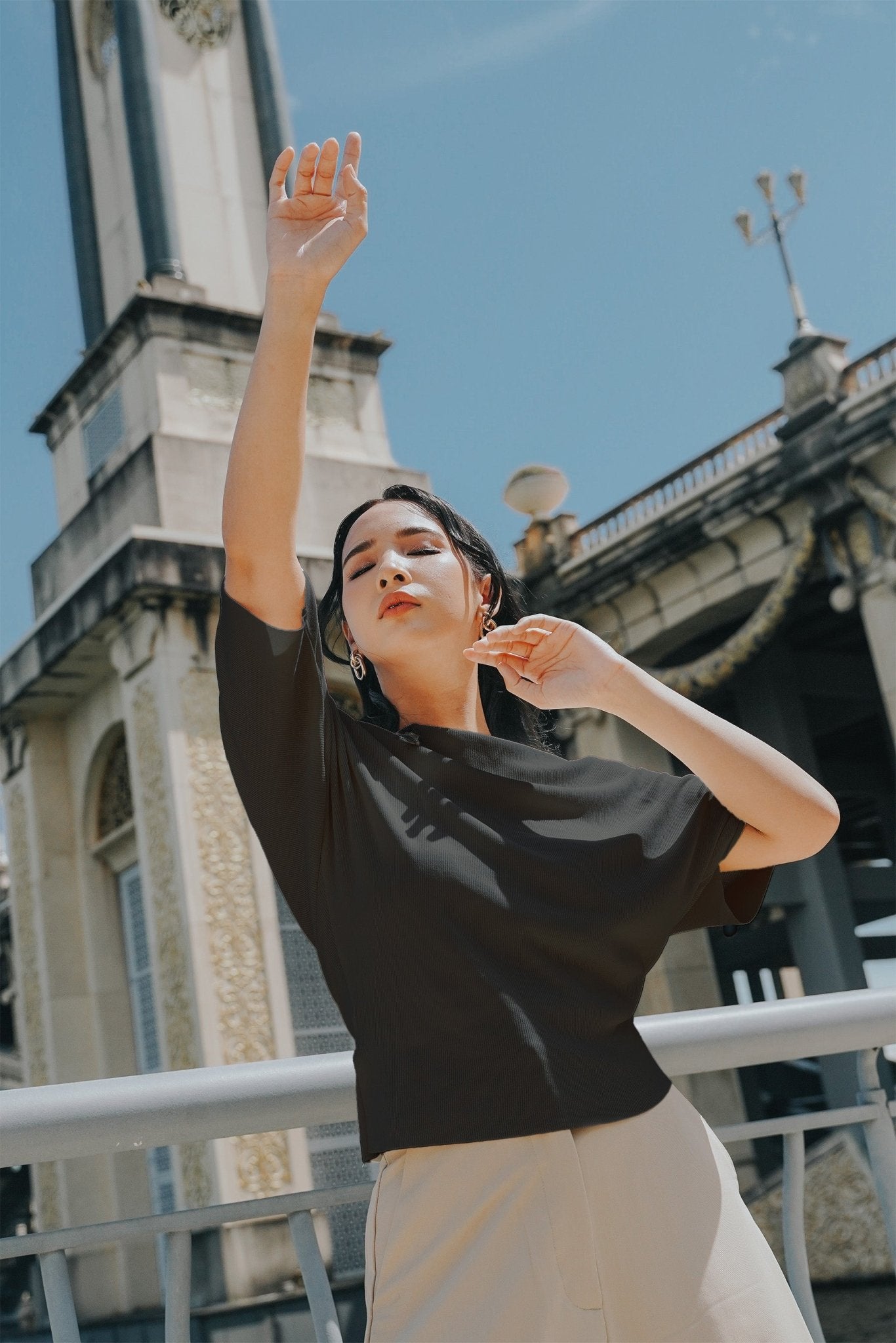 The City Breeze Pt.2 Women Wide Neck Knit Top Black