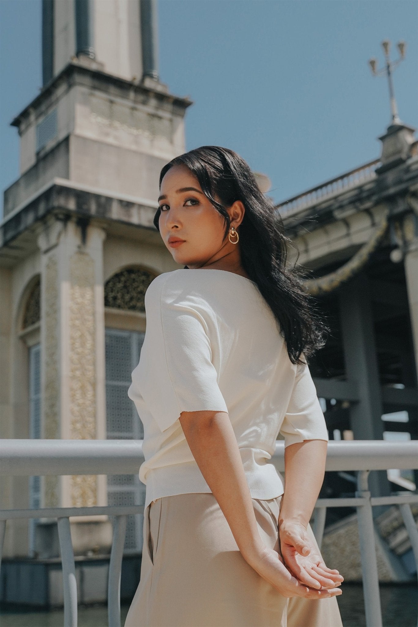 The City Breeze Pt.2 Women Wide Neck Knit Top Cream
