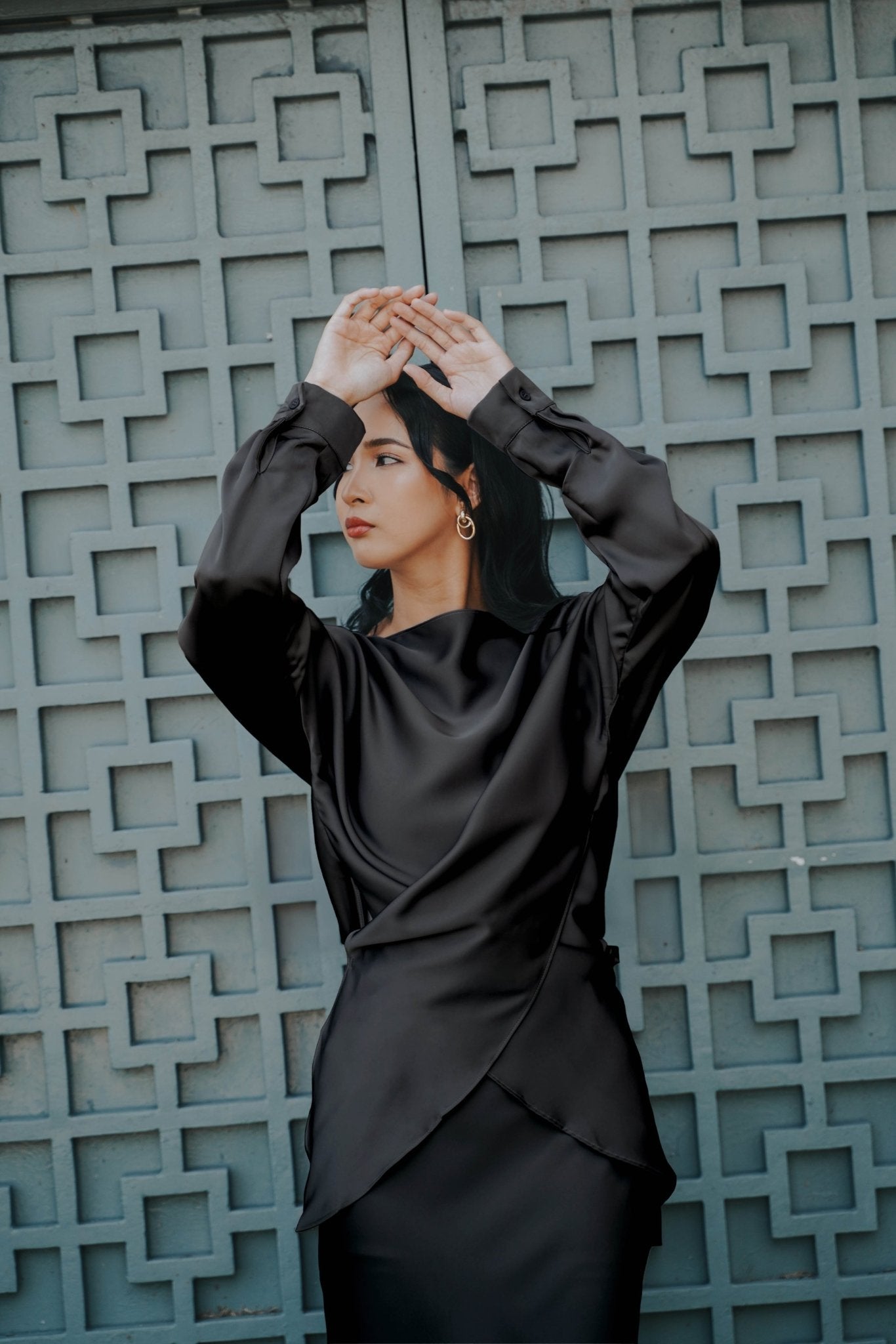 The City Breeze Pt.2 Women Wrap Satin Blouse Black