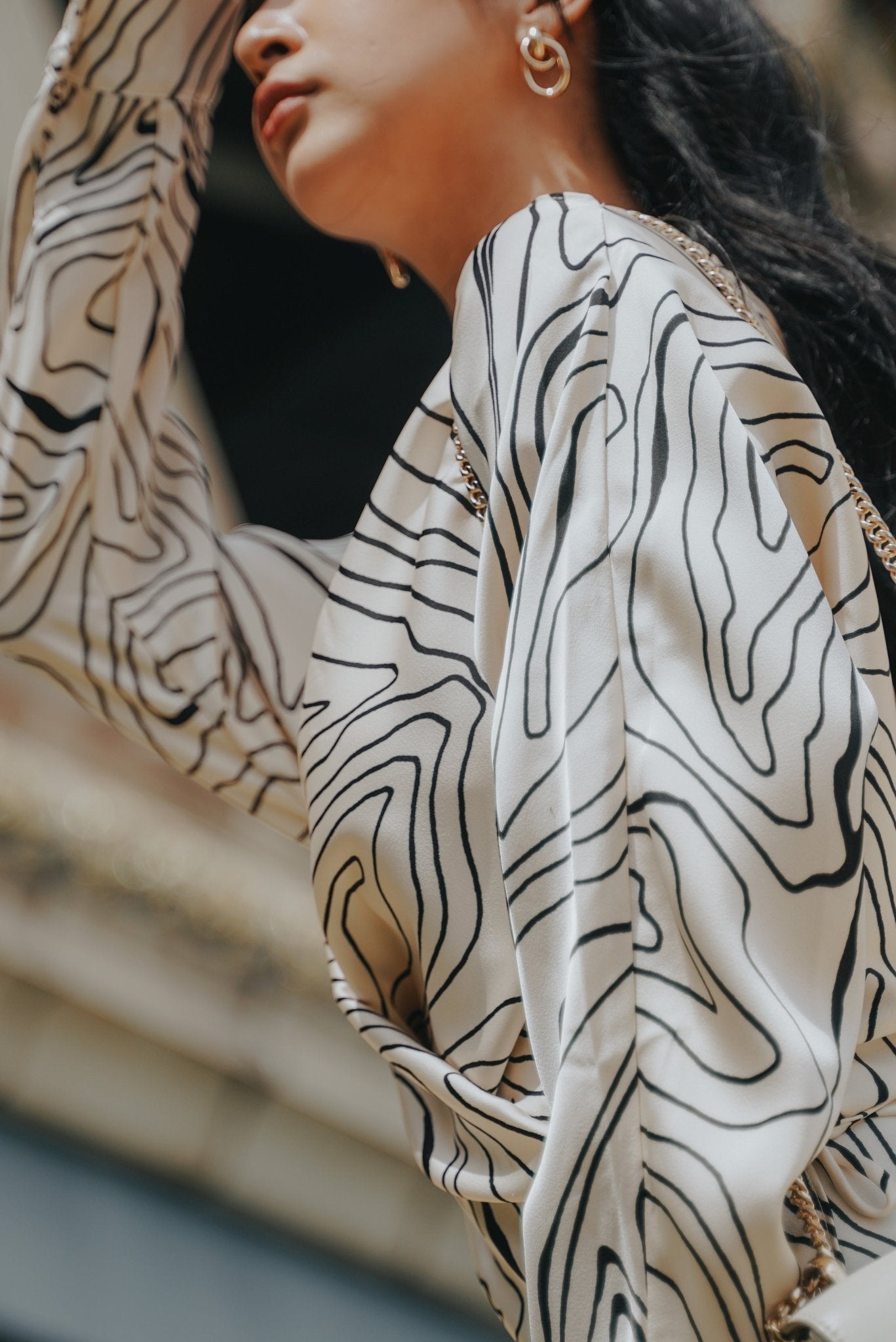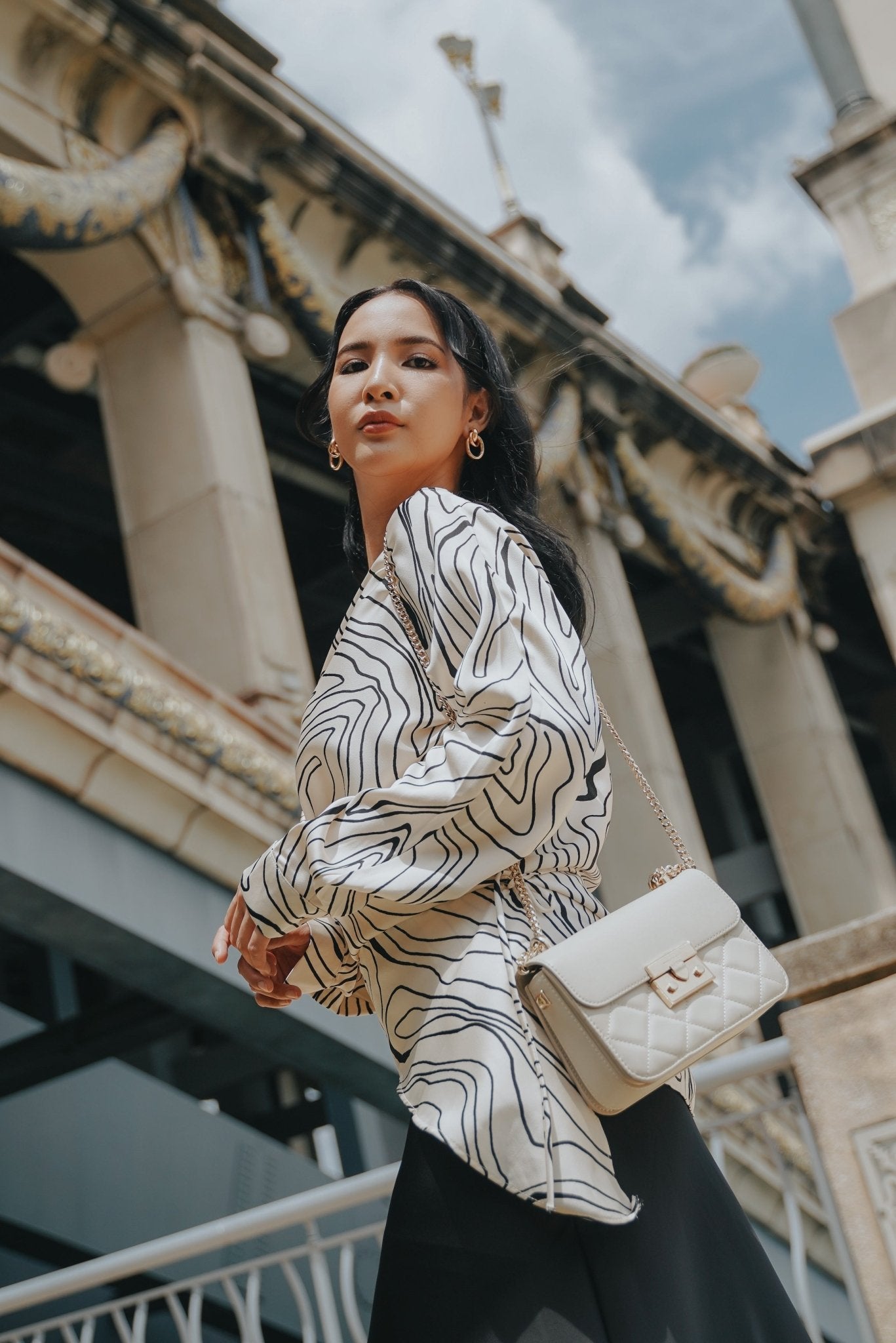 The City Breeze Pt.2 Women Wrap Satin Blouse Cream Wave