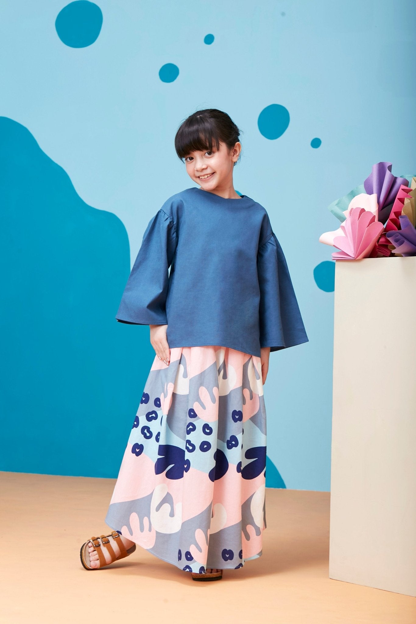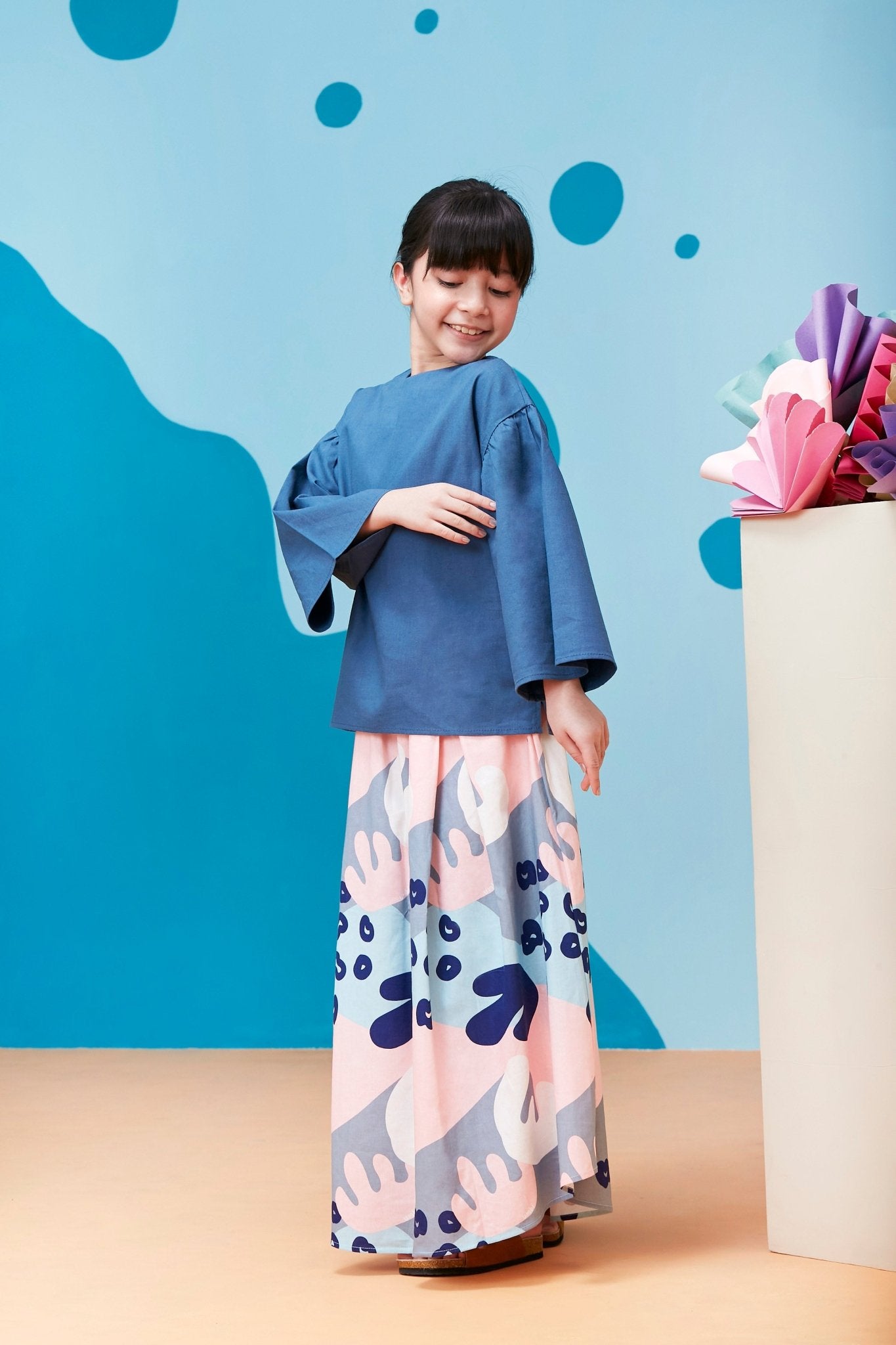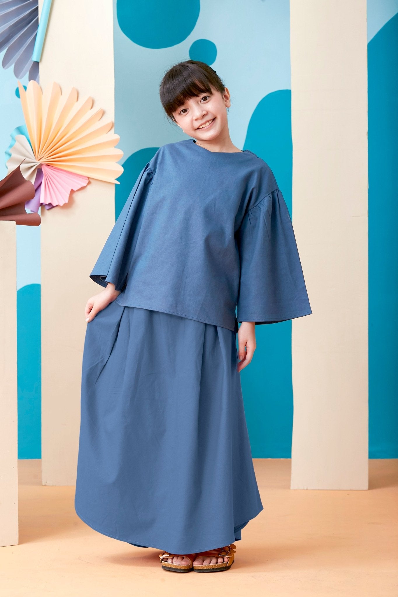 The Coral Flare Blouse Steel Blue