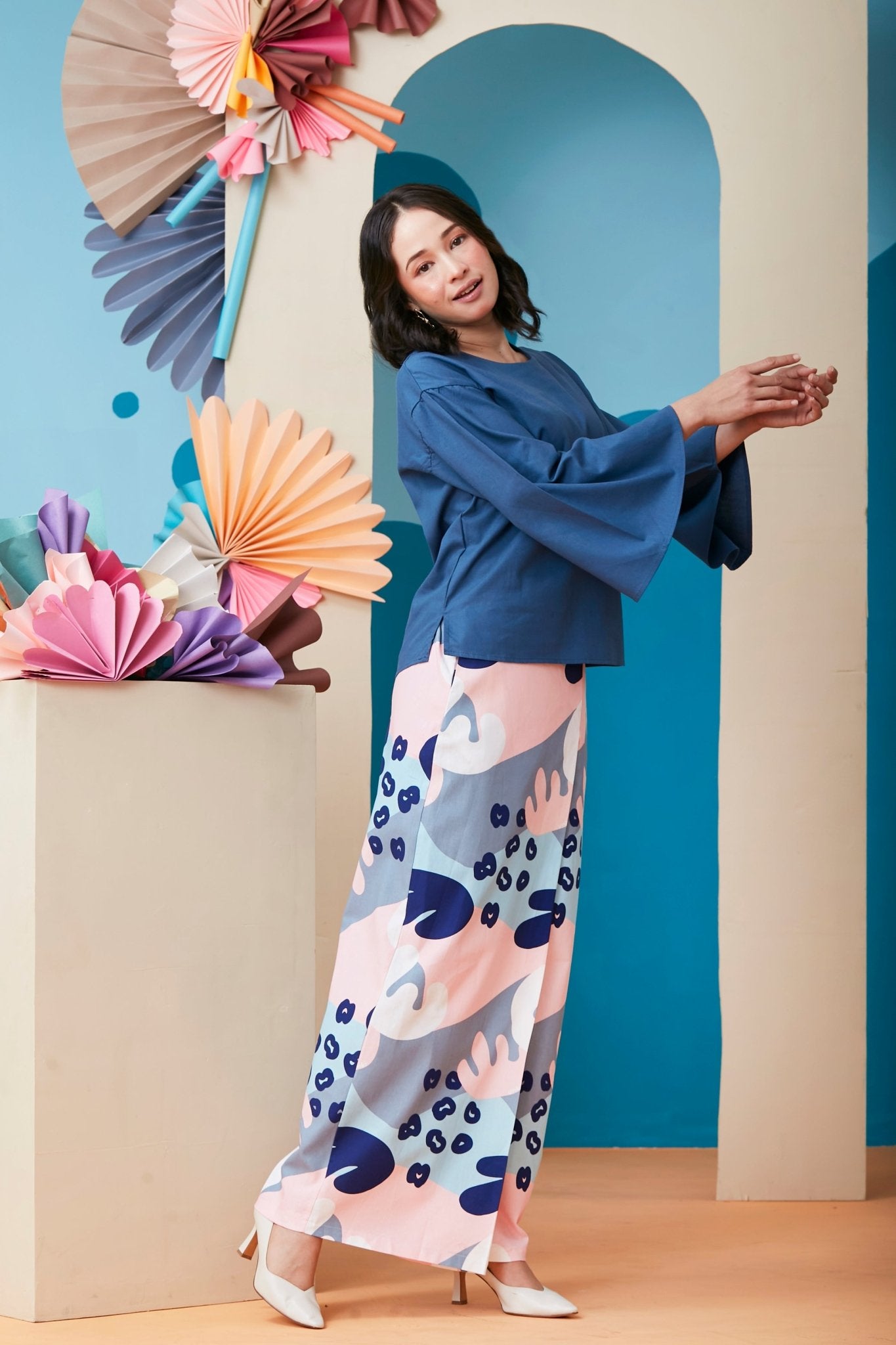 - Long flared sleeves