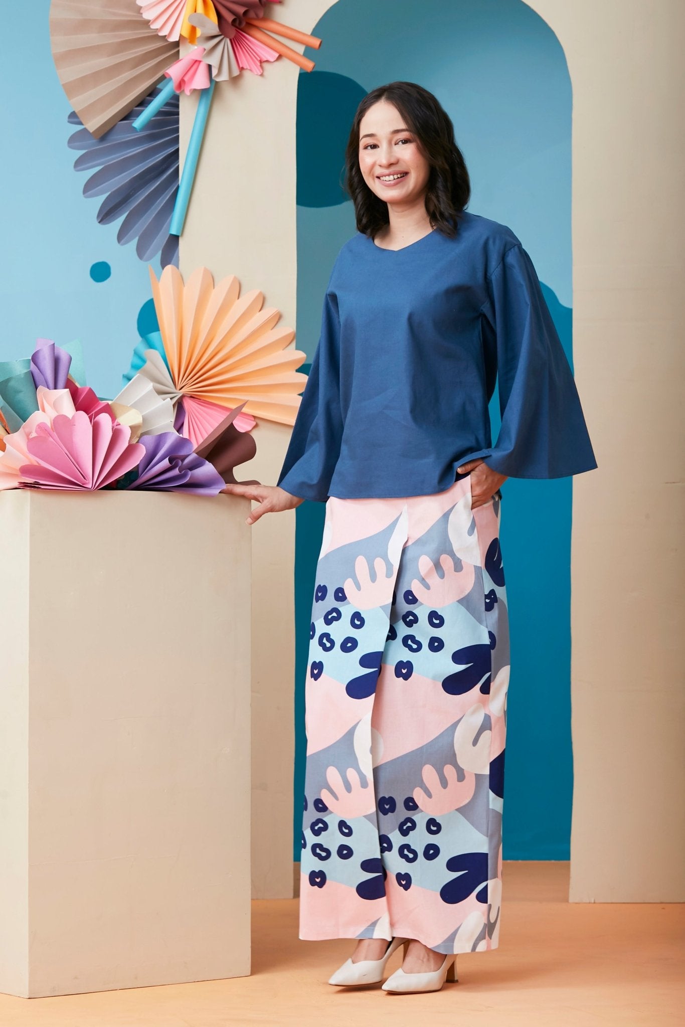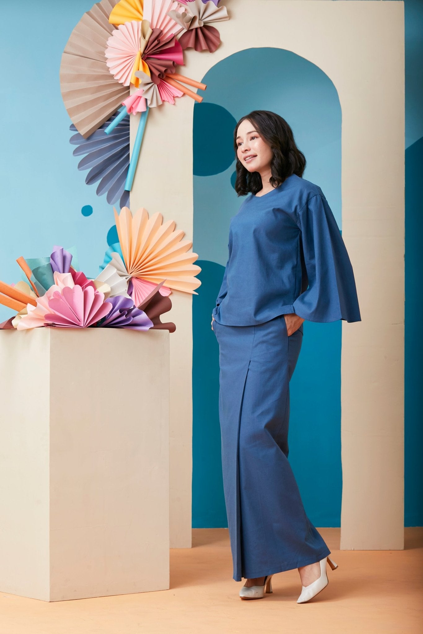 The Coral Women Flare Blouse Steel Blue