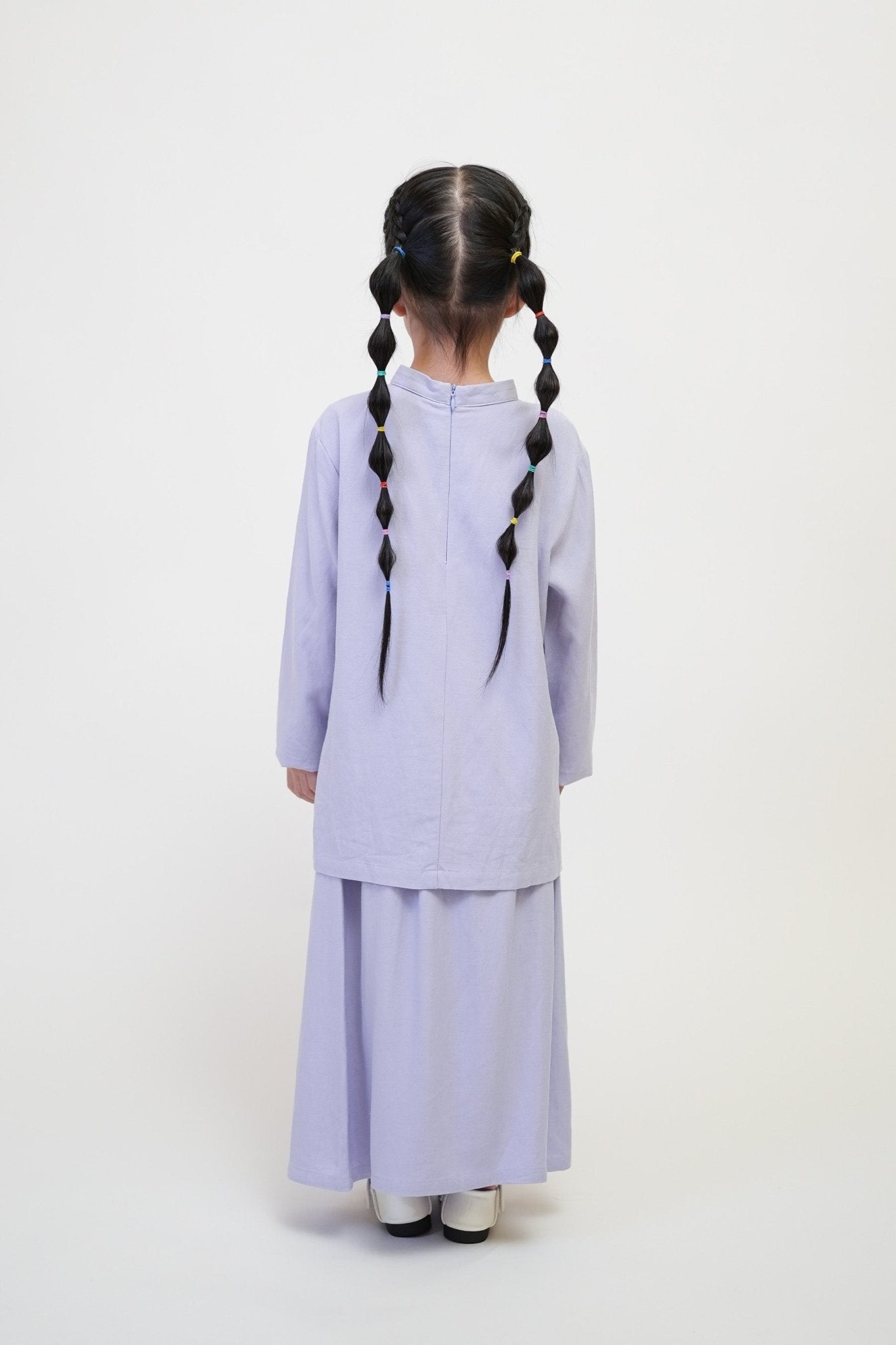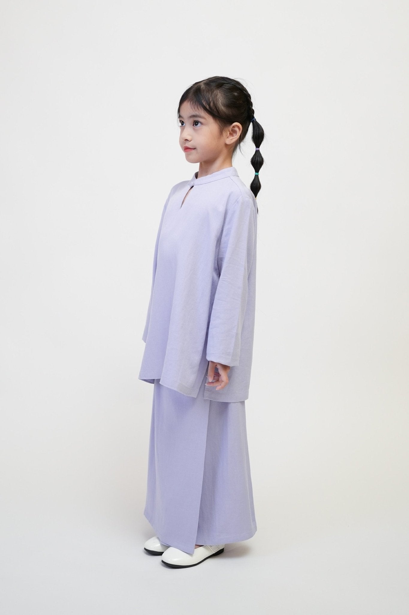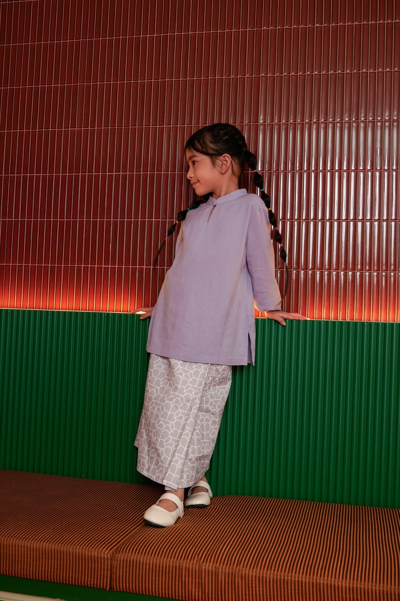 The Early Check-in Collection Girl Mandarin Collar Kurung Top in Lilac