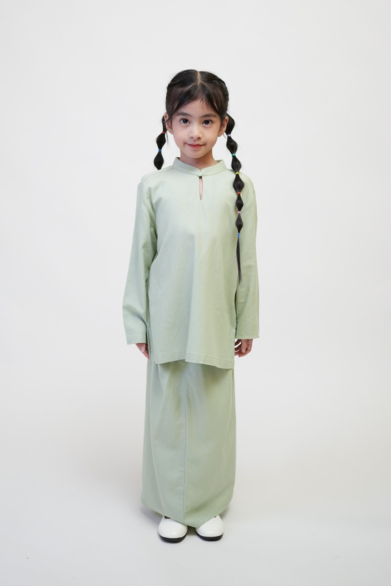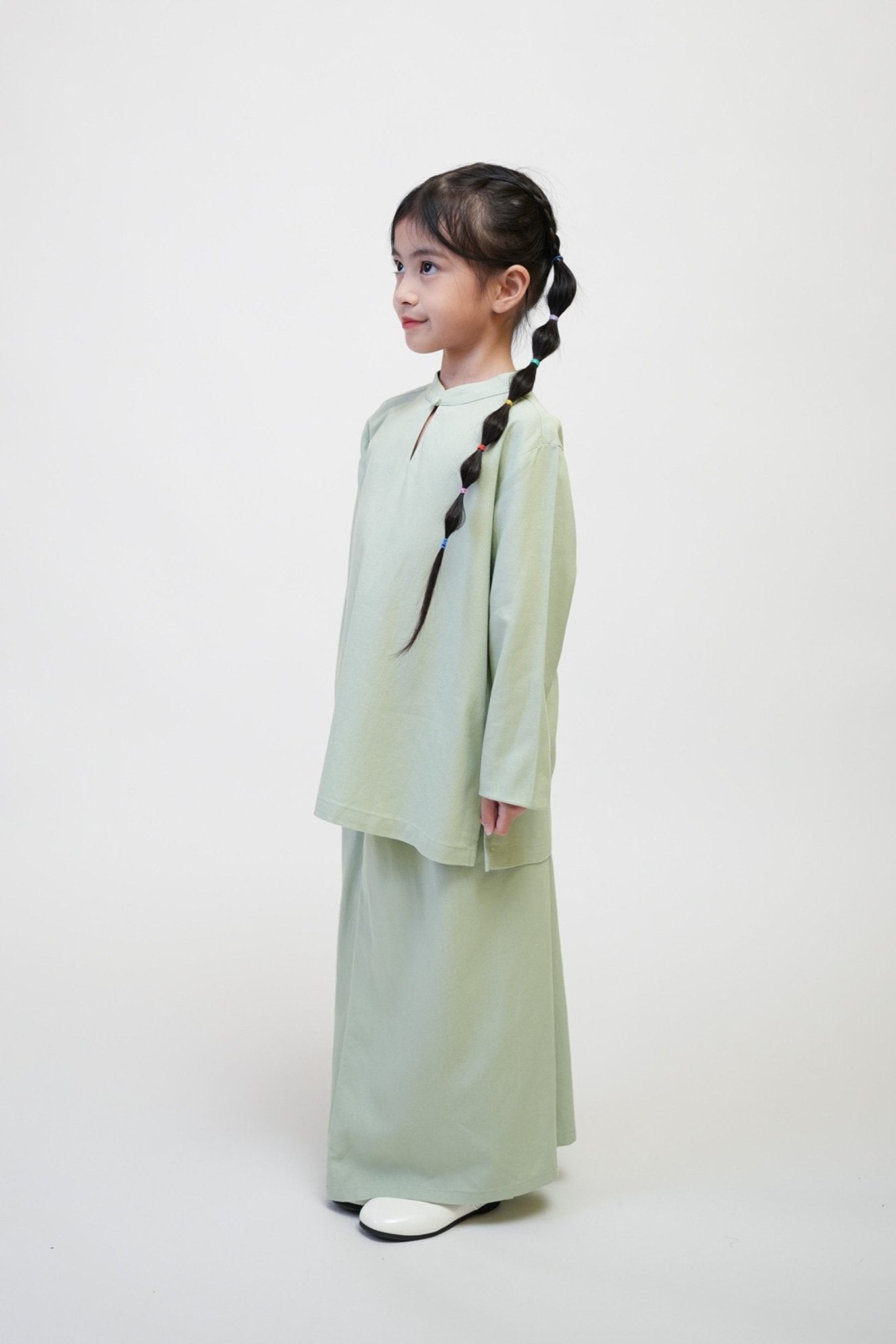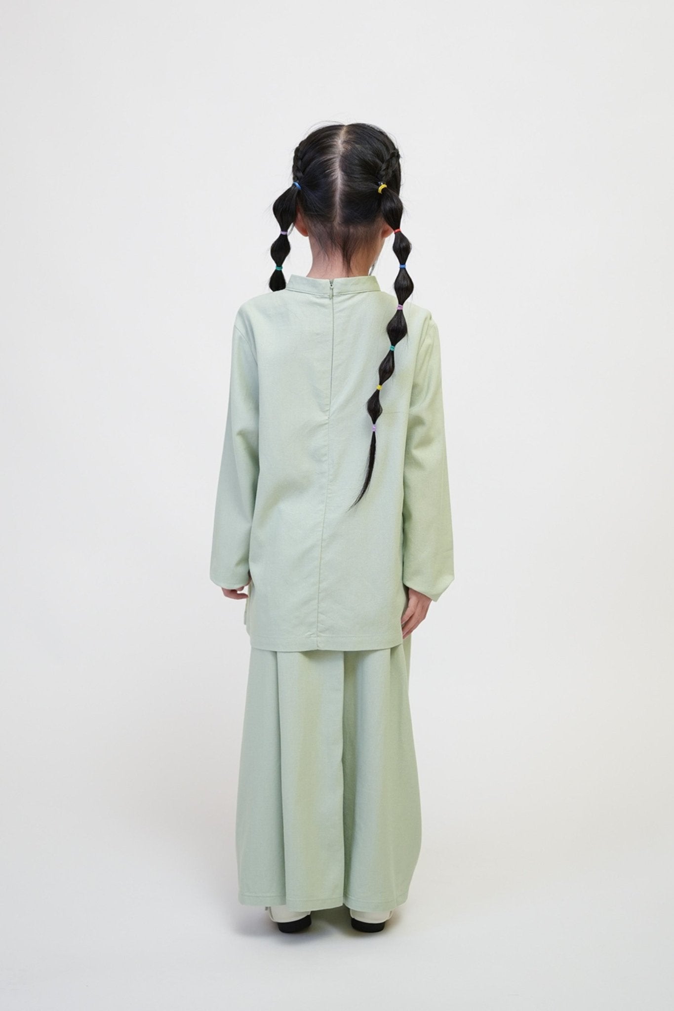 The Early Check-in Collection Girl Mandarin Collar Kurung Top in Mint Green