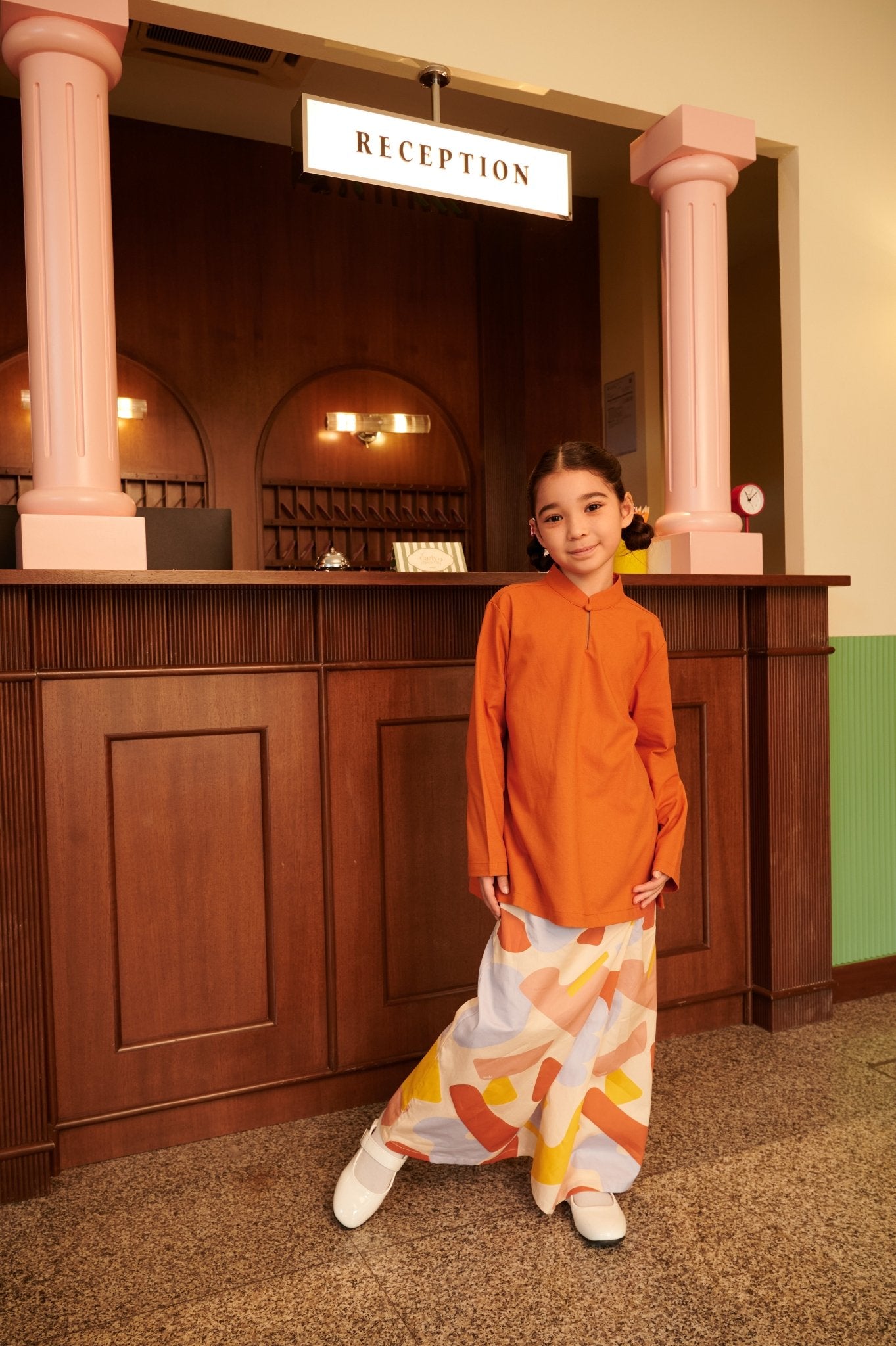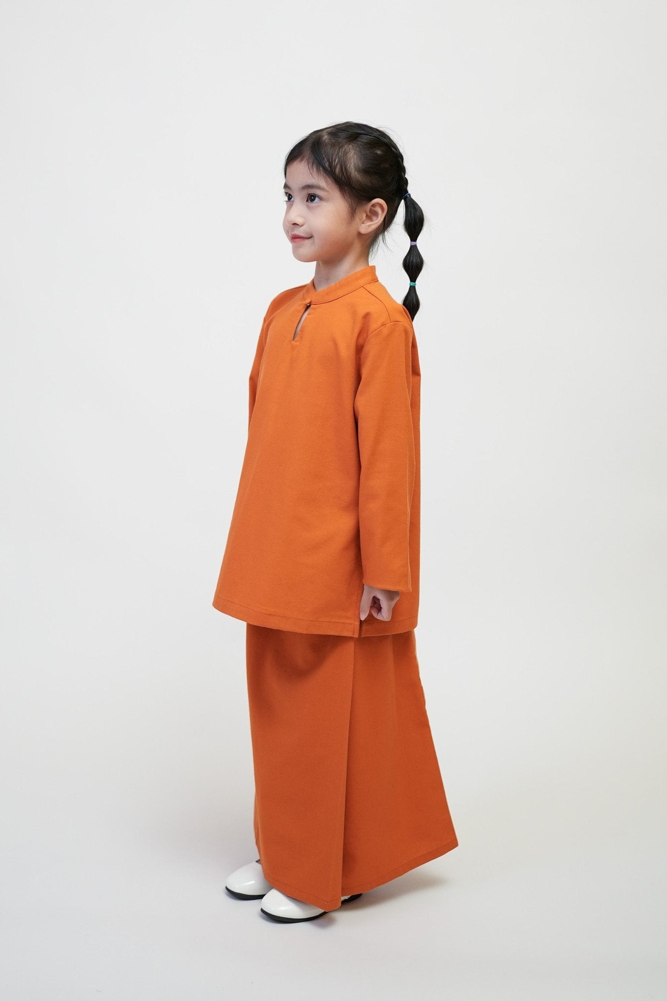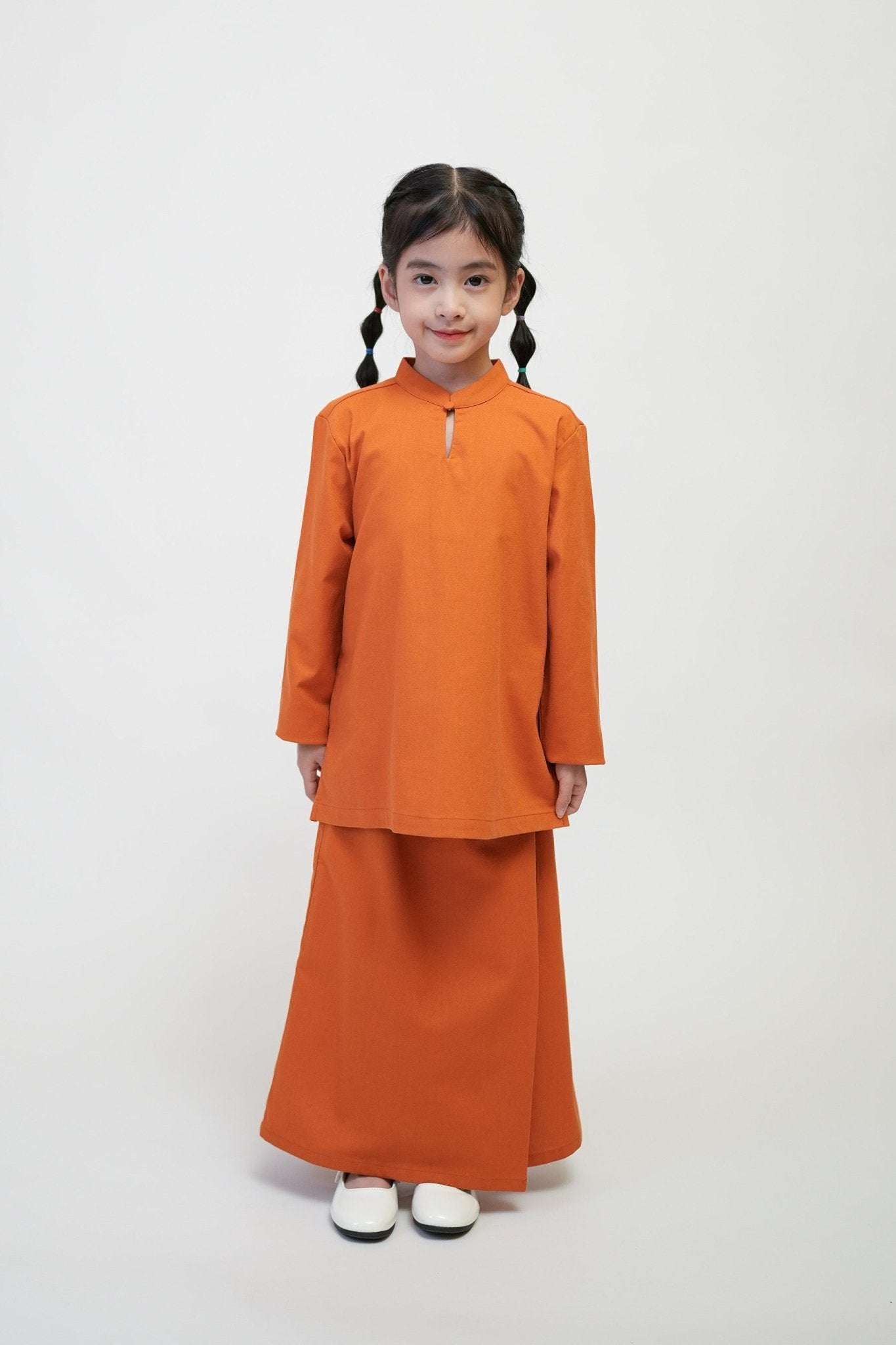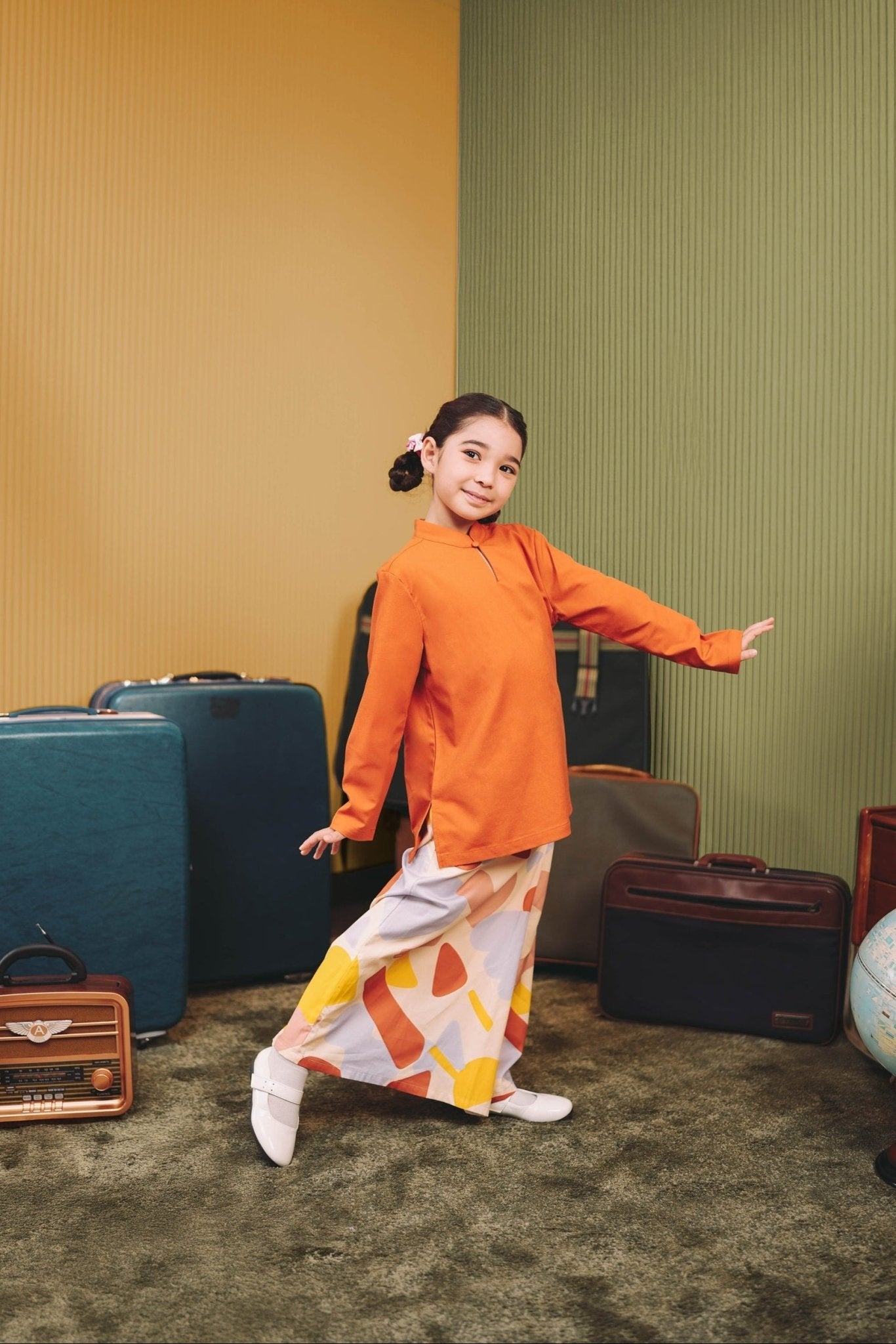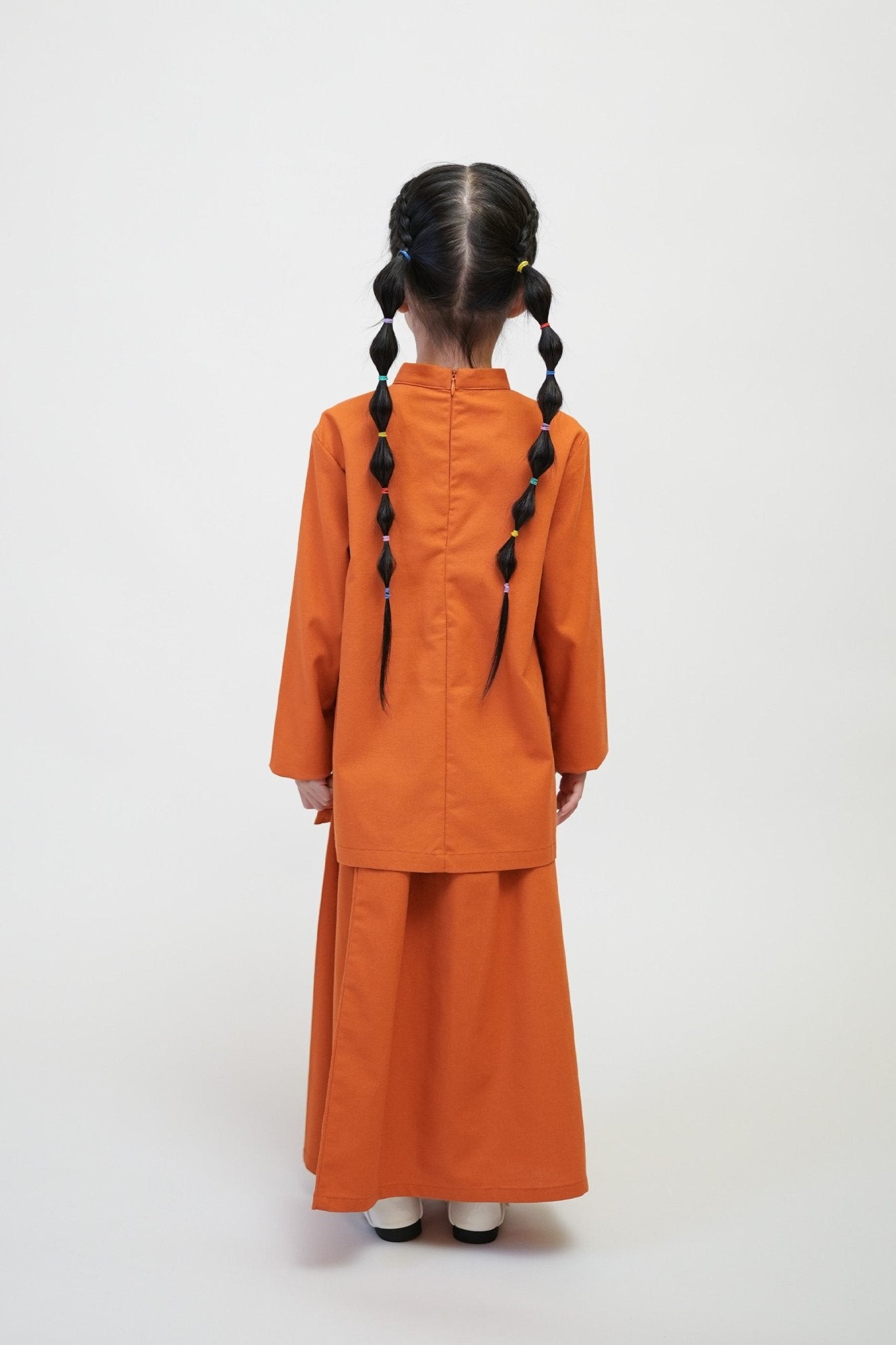 The Early Check-in Collection Girl Mandarin Collar Kurung Top in Orange