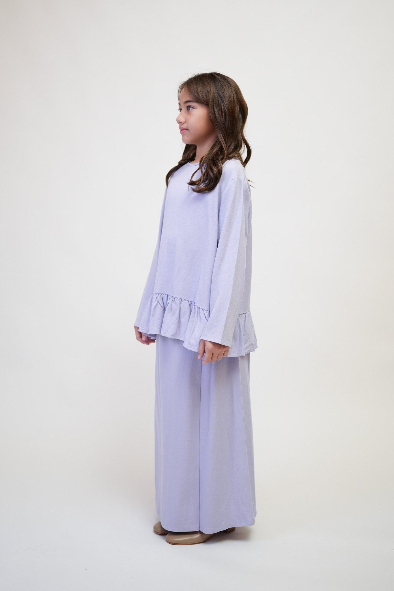 The Early Check-in Collection Girl Ruffles Top in Lilac