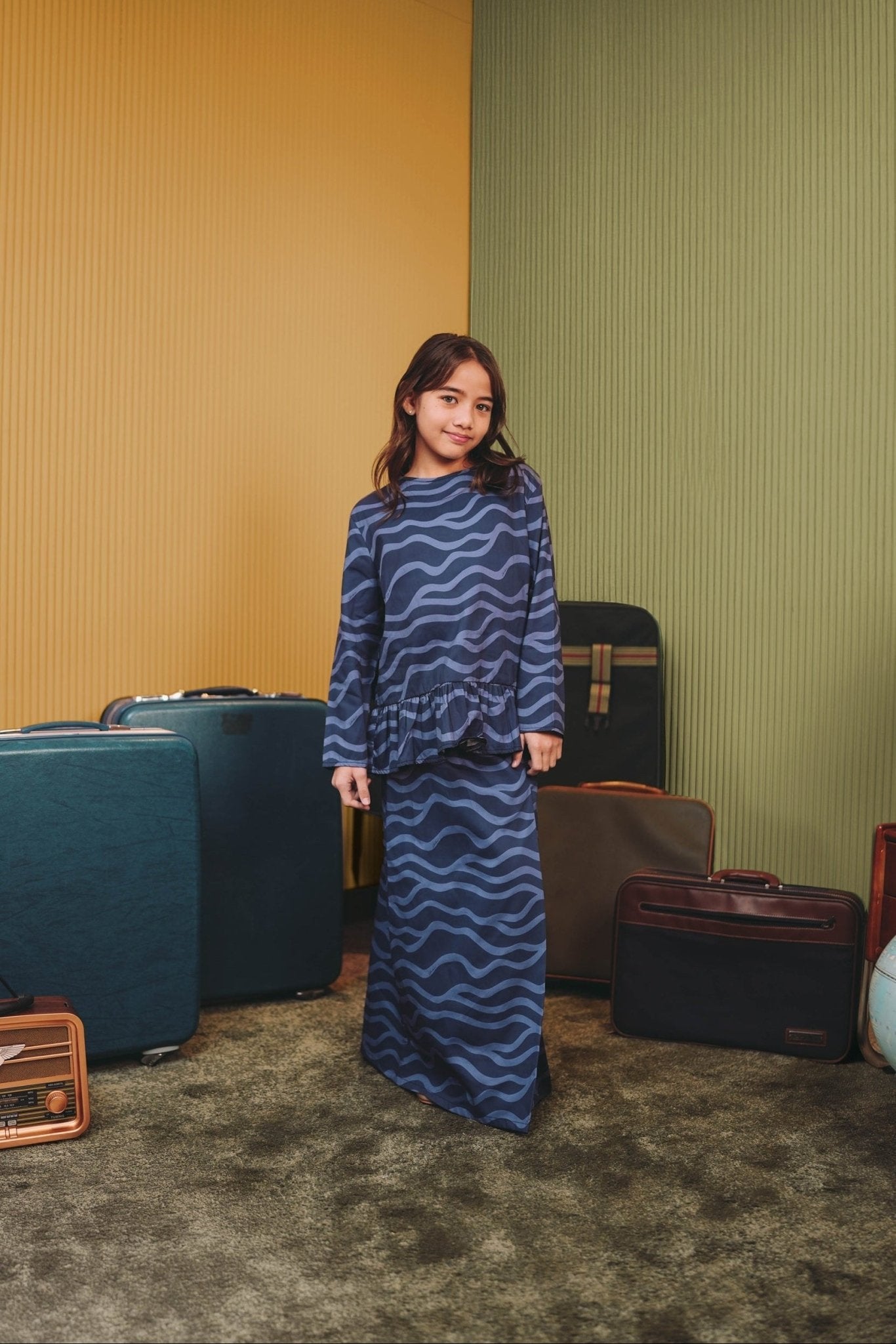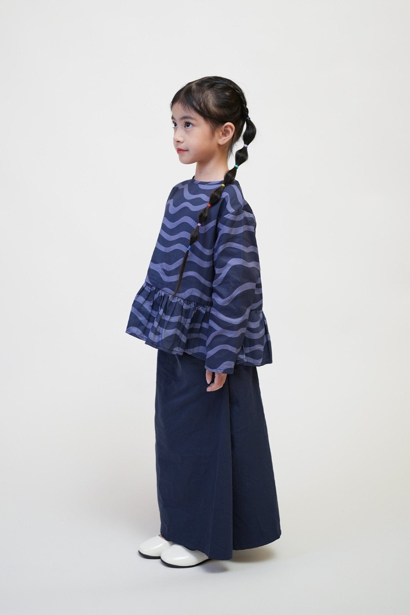 The Early Check-in Collection Girl Ruffles Top in Ombak Print