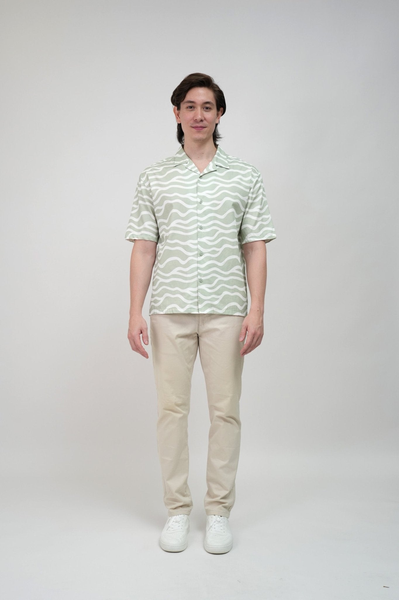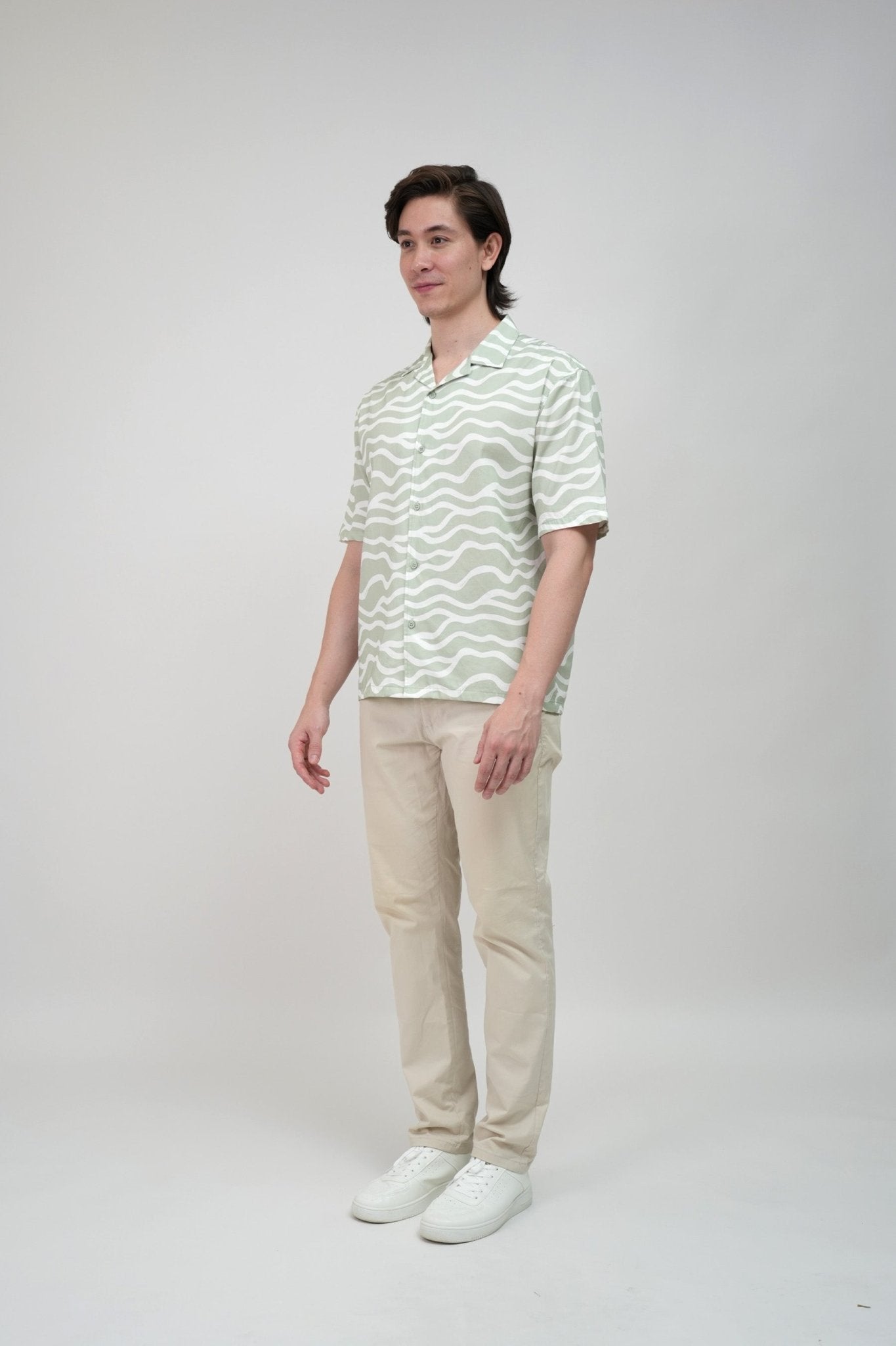 Classic short-sleeve Hawaii shirt with a sleek open collar.