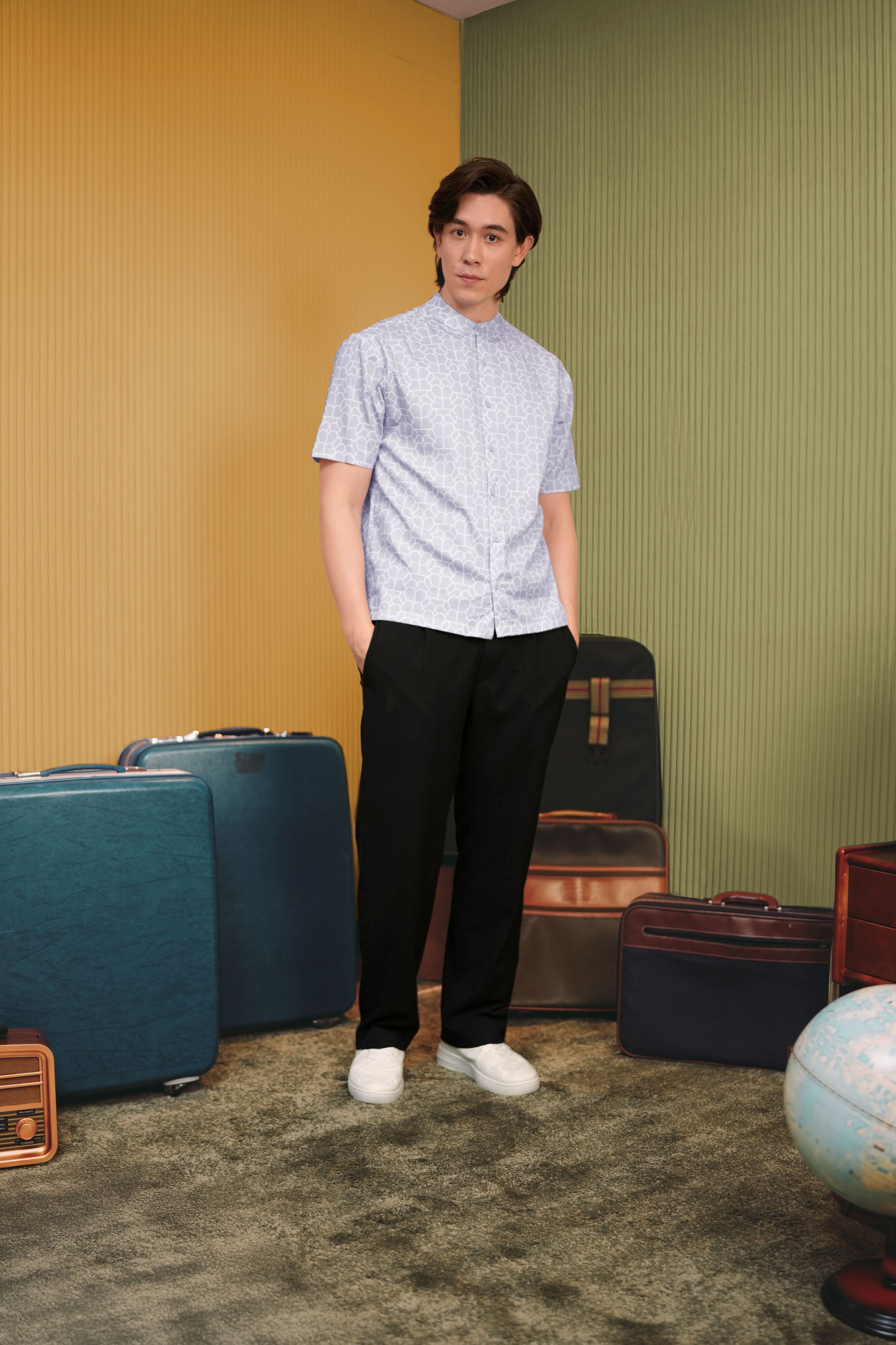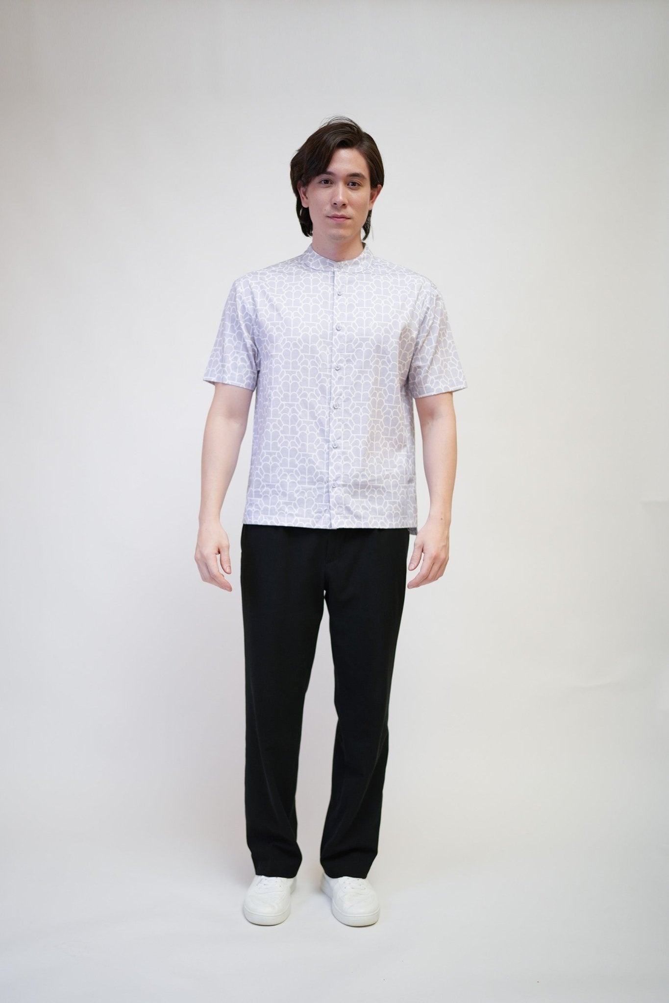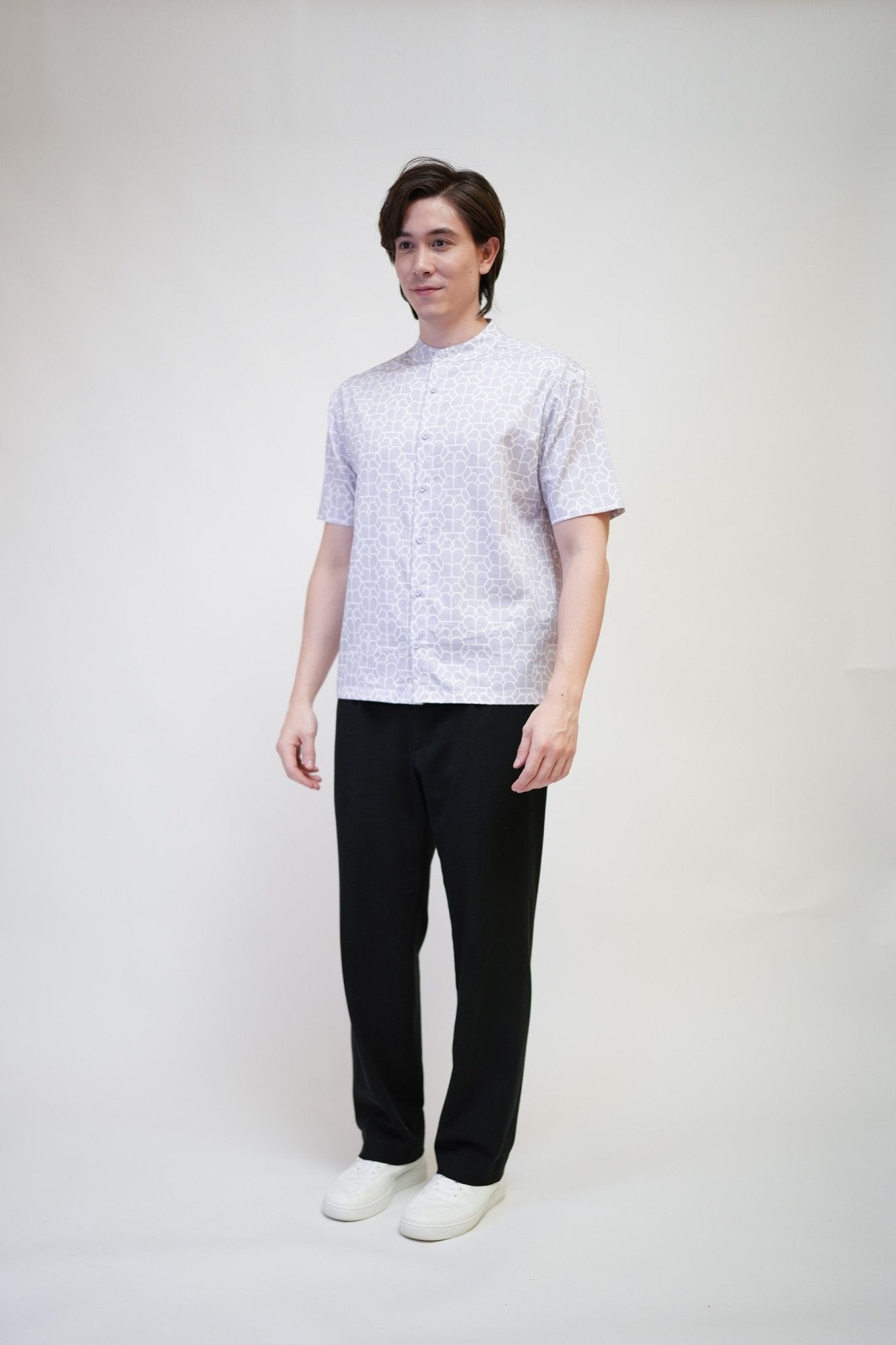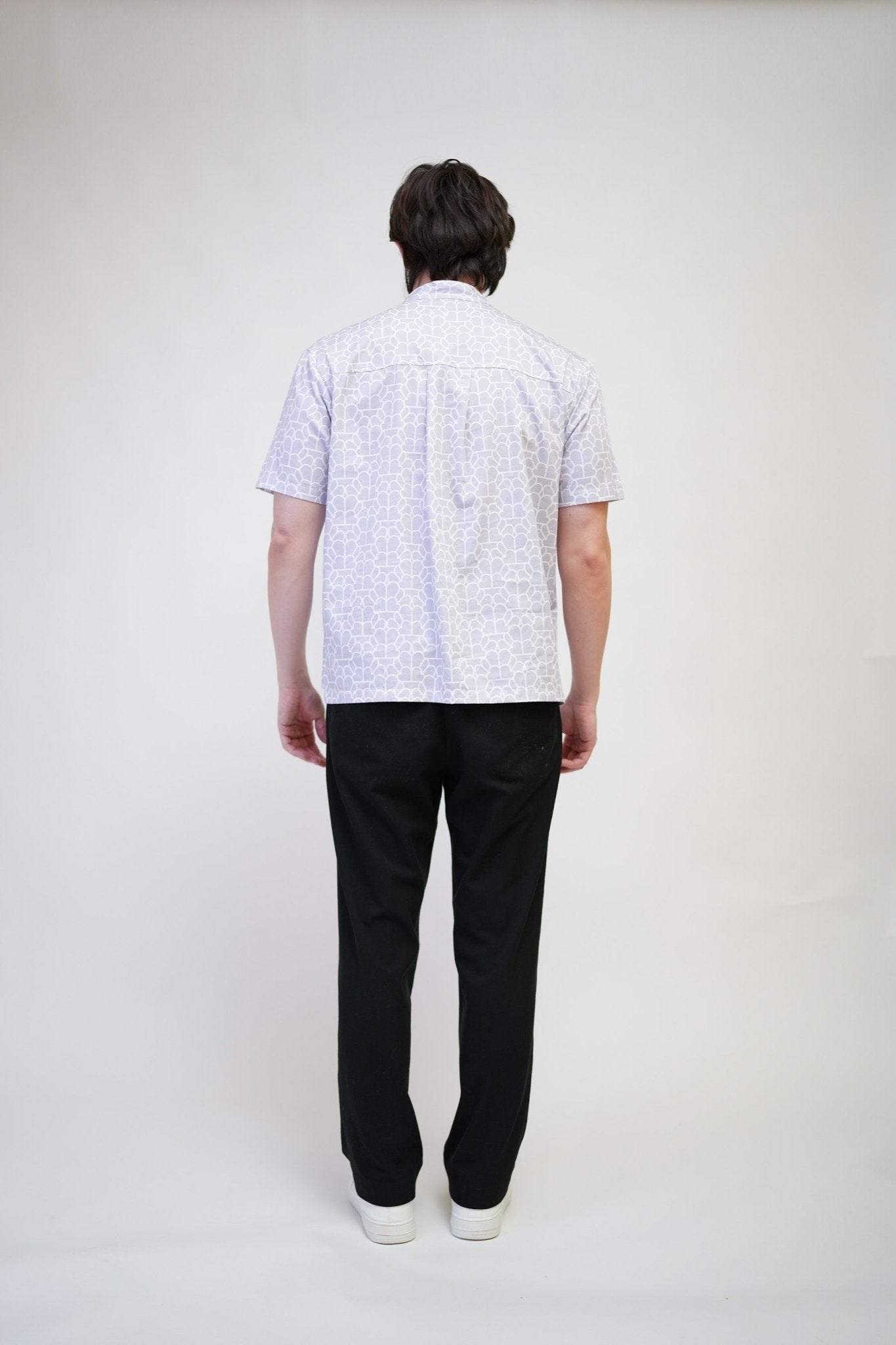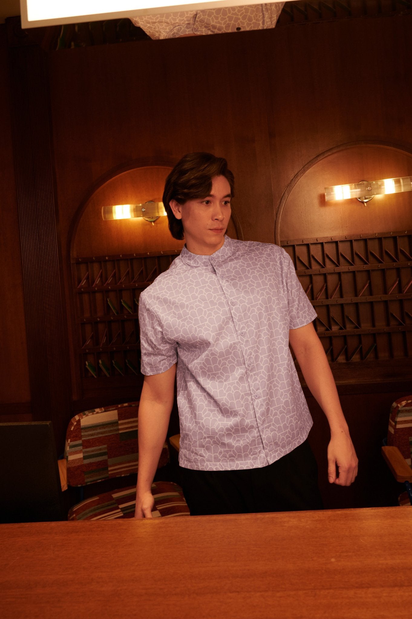 Short sleeve shirt featuring a clean, modern Mandarin collar.