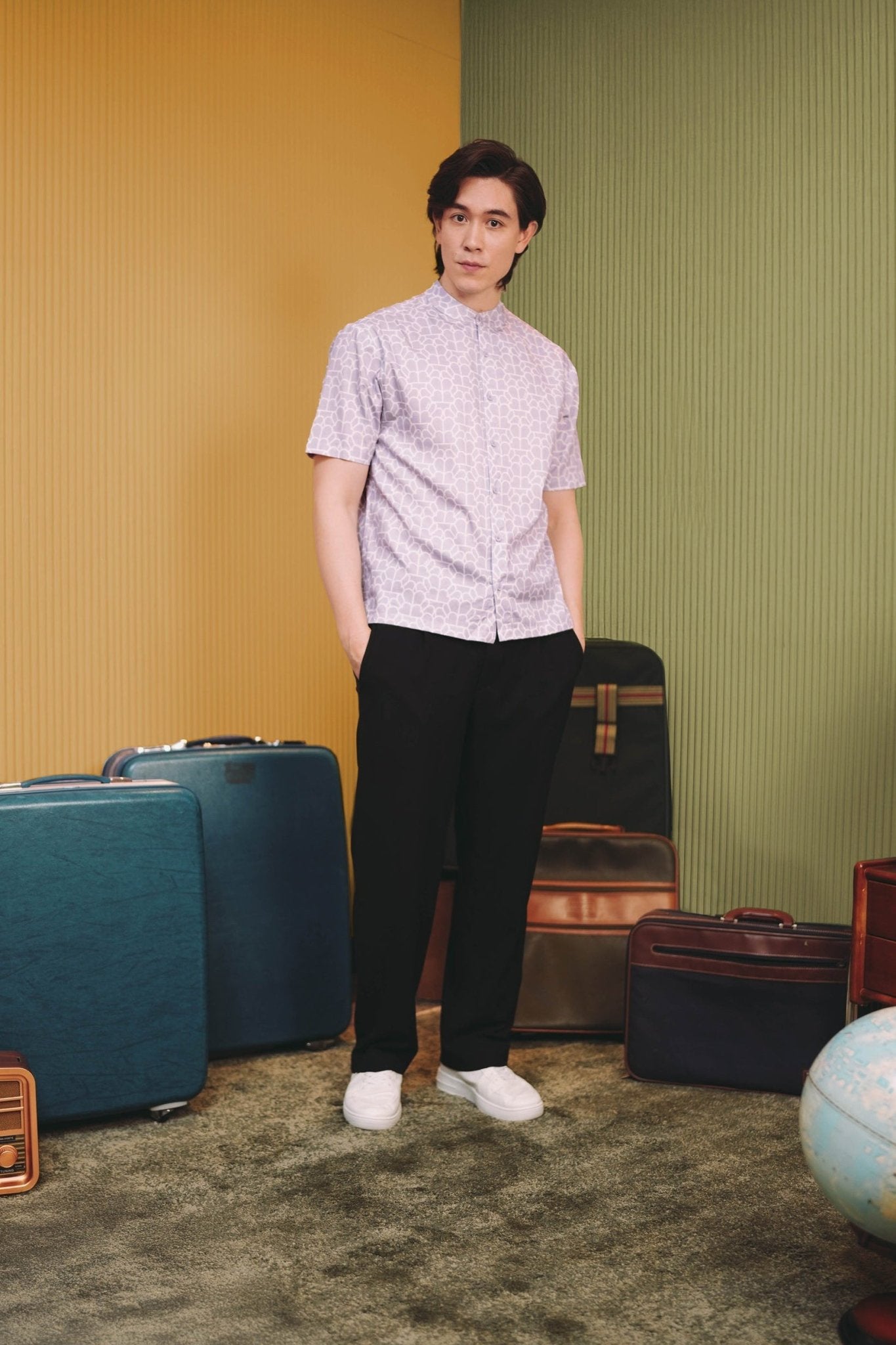 The Early Check-in Collection Men Mandarin Collar Short Sleeve Shirt