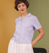 Casual top with a stylish sleek open collar and short sleeves.