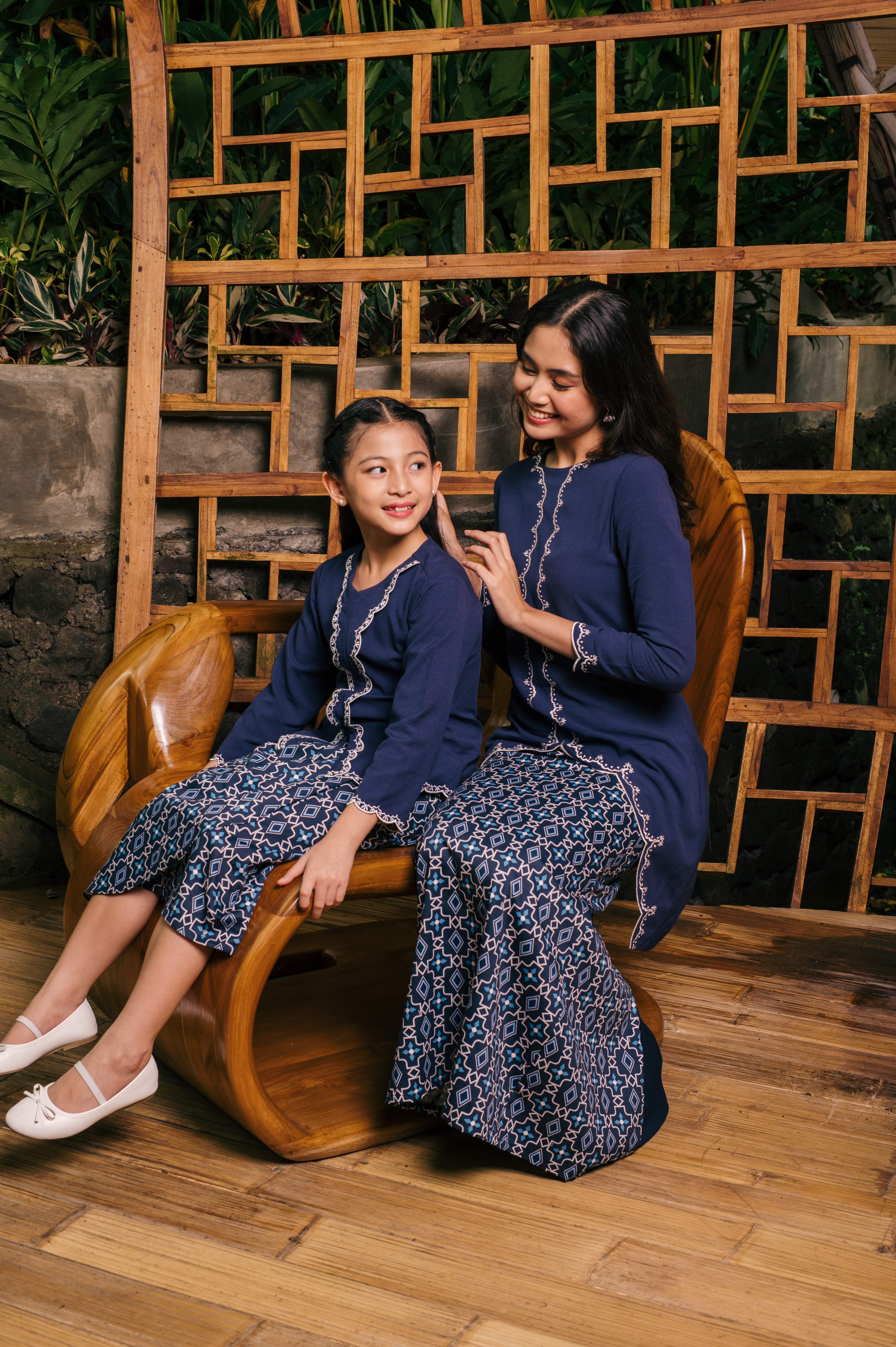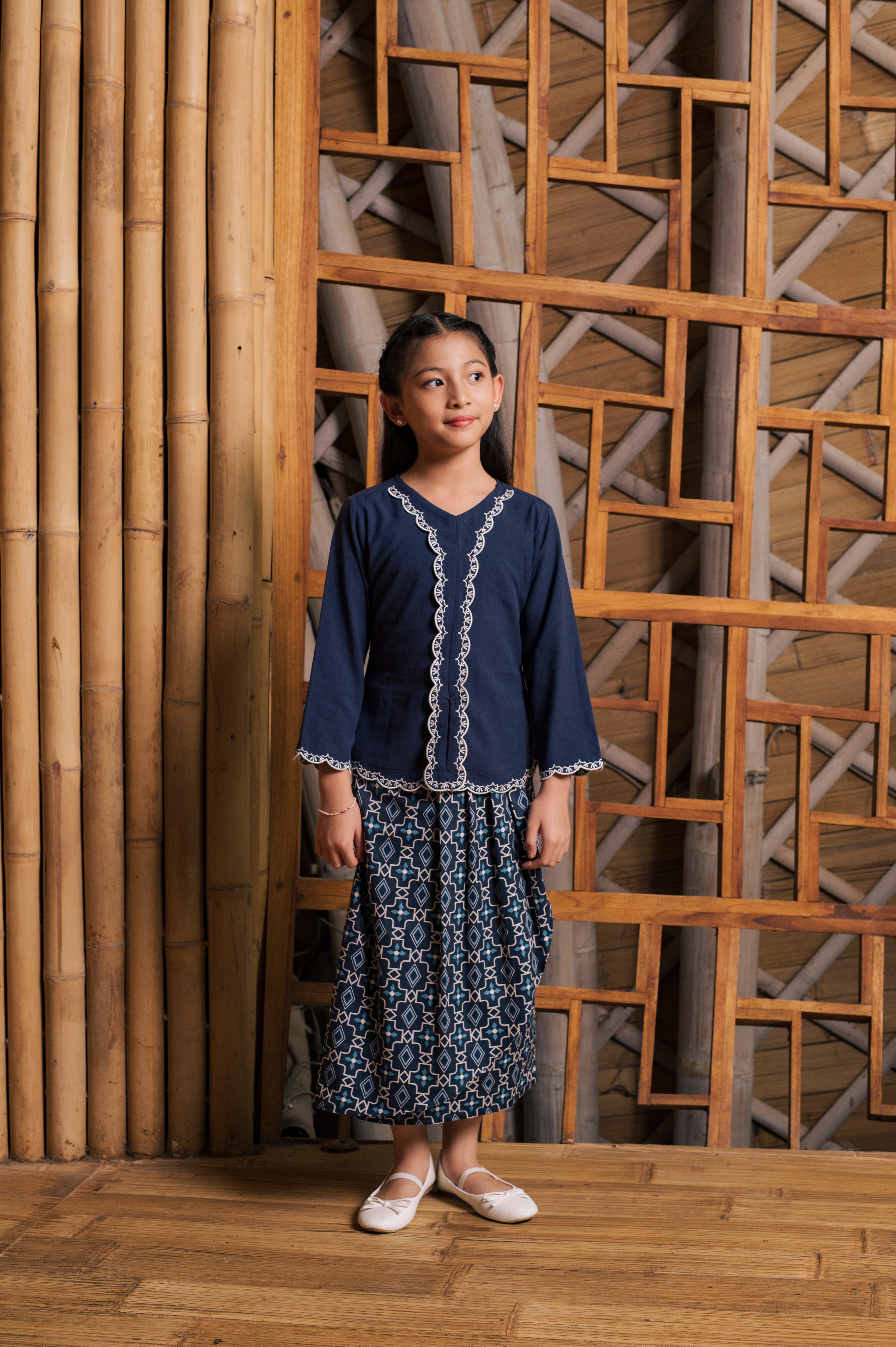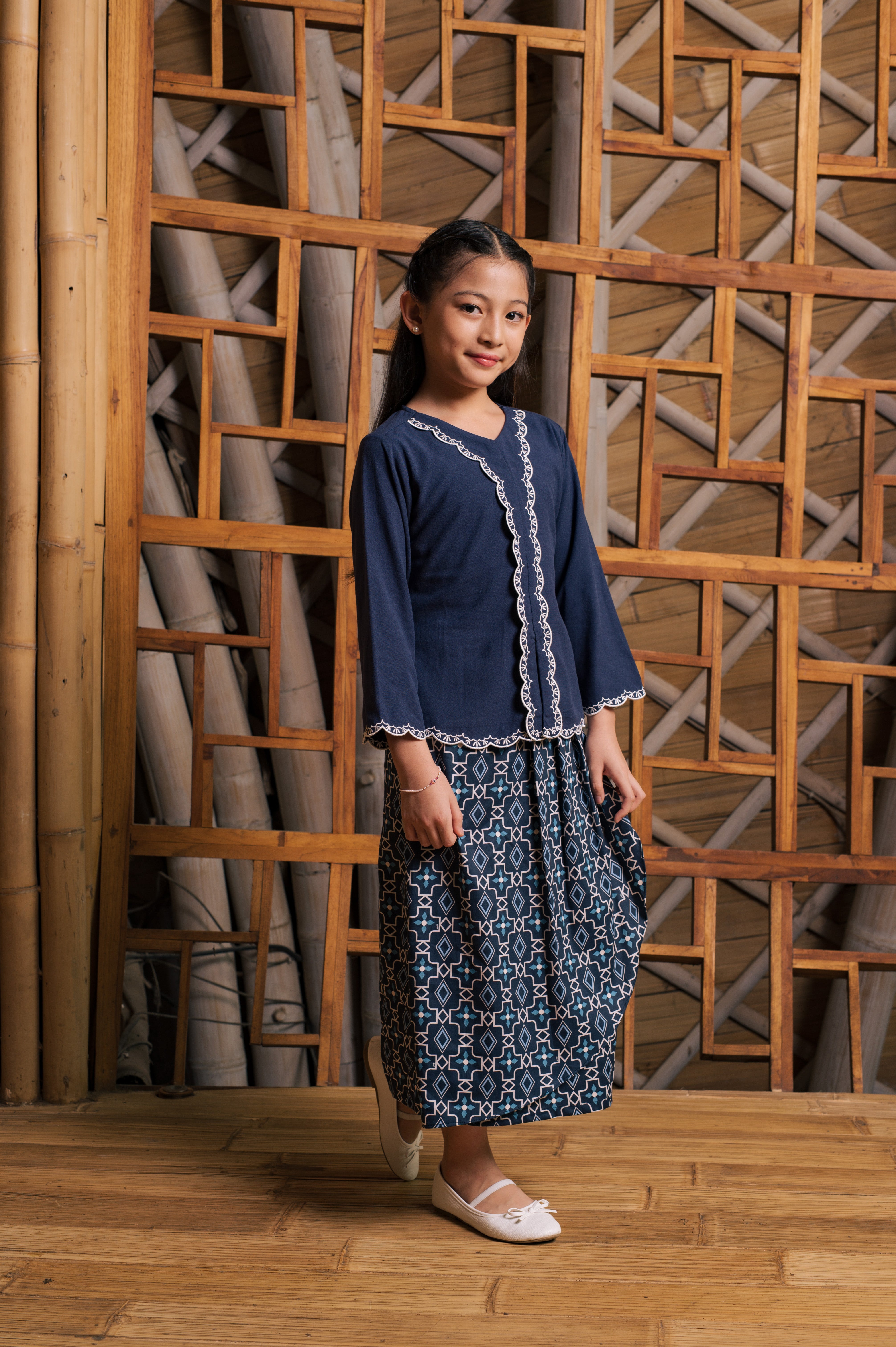 The Embun Collection Girl Instant Pareo Skirt in Blue Gemilang Print