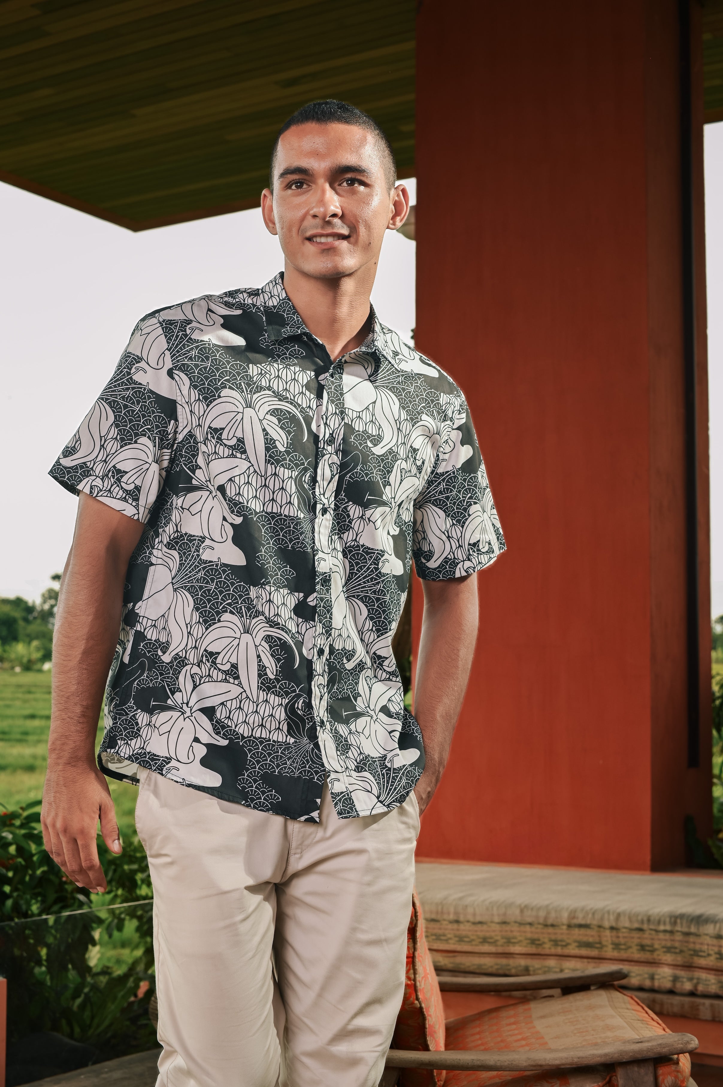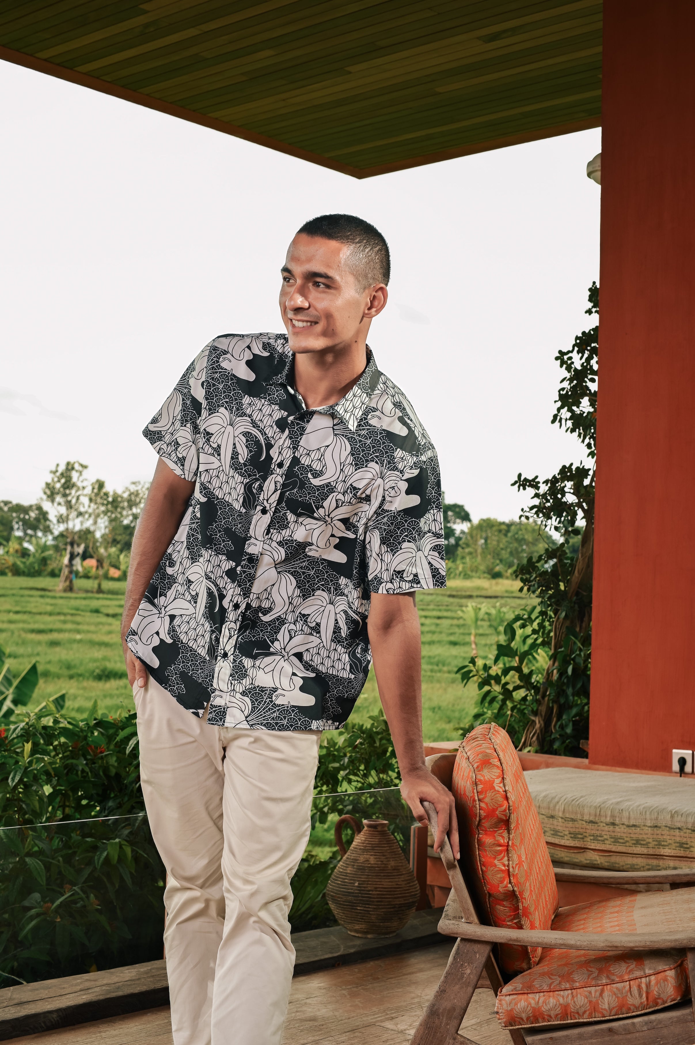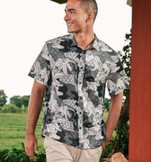 The Embun Collection Men Holiday Shirt in Black & White Banjaran Print
