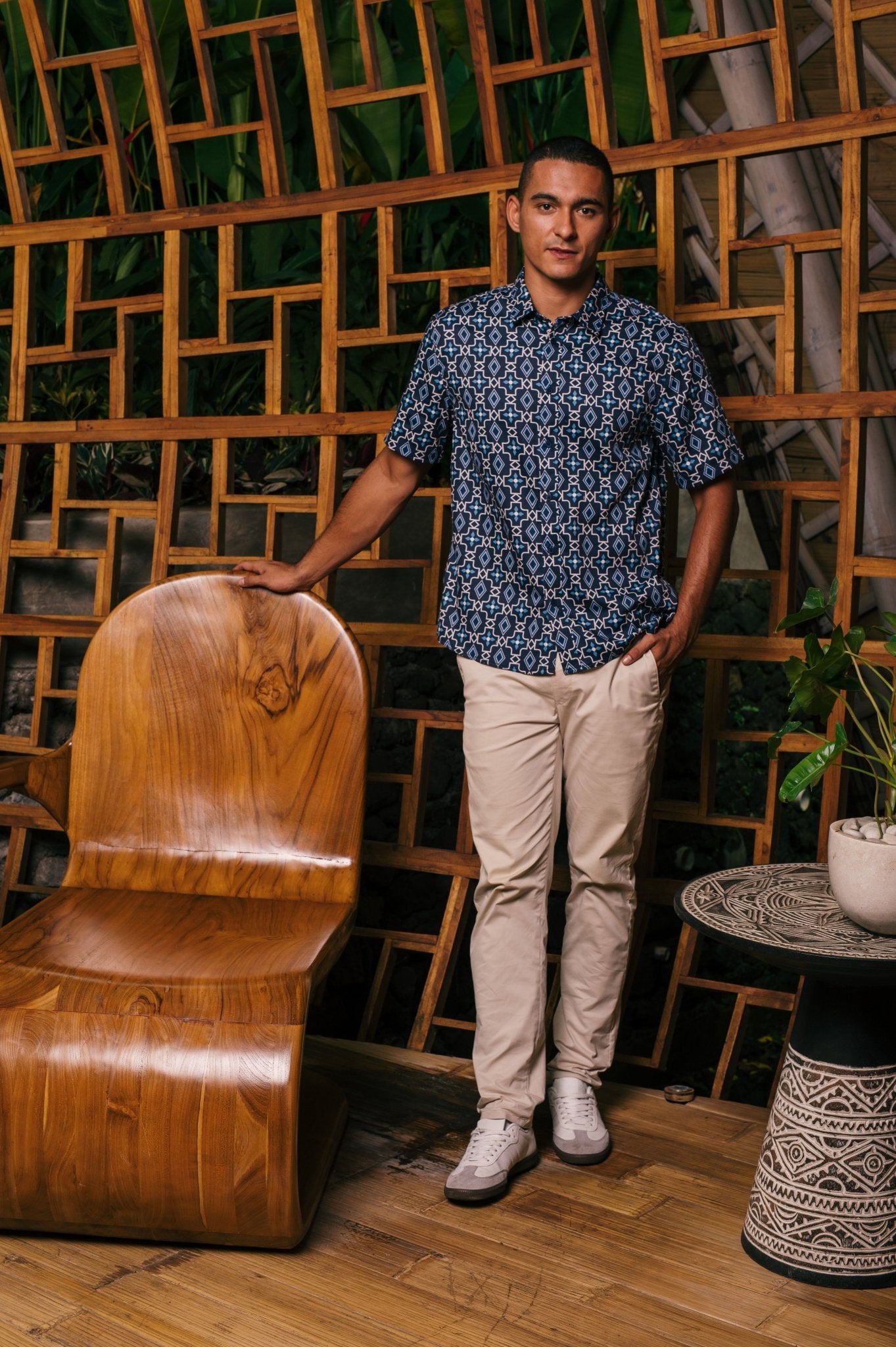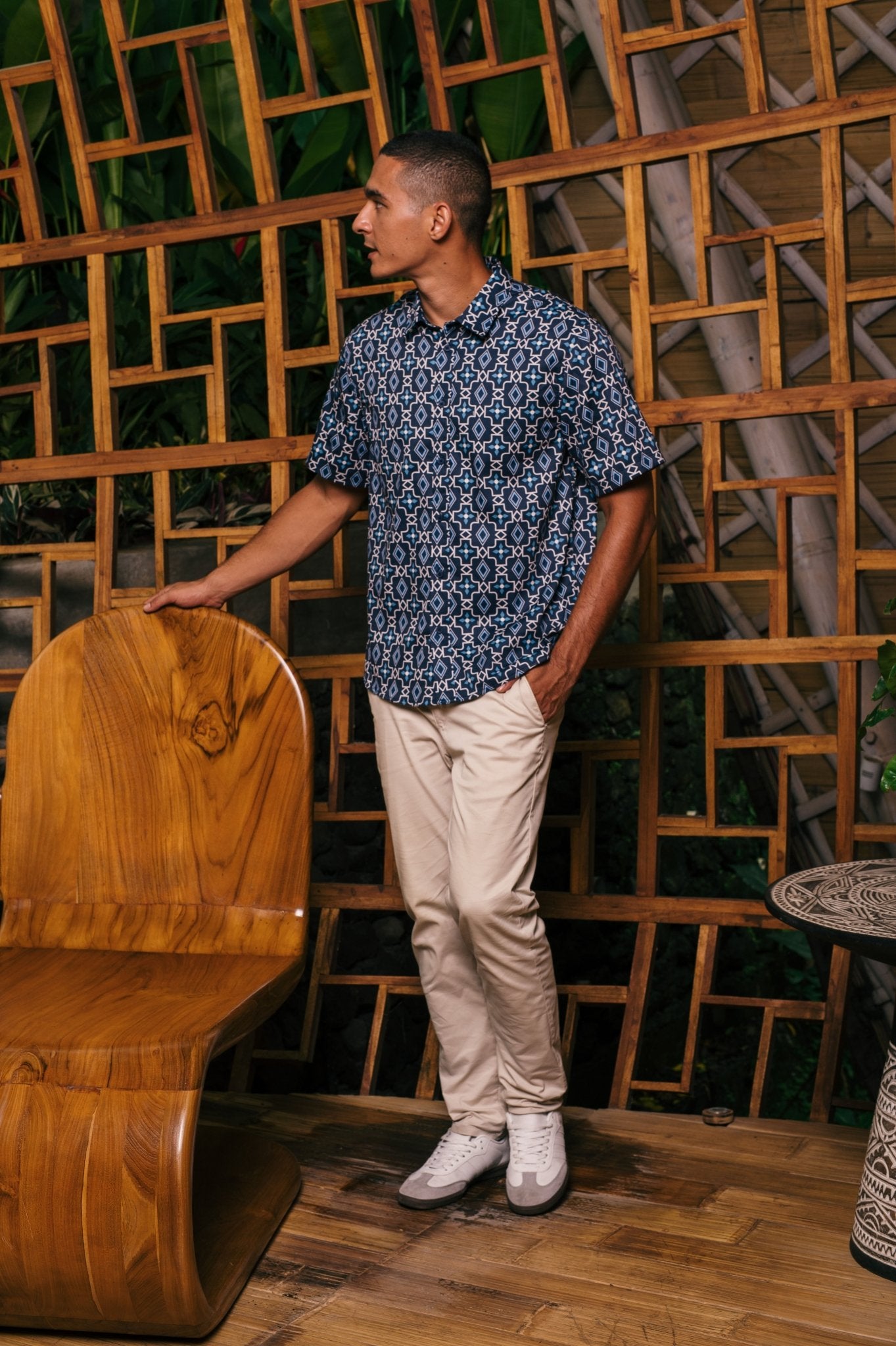 The Embun Collection Men Holiday Shirt in Blue Gemilang Print