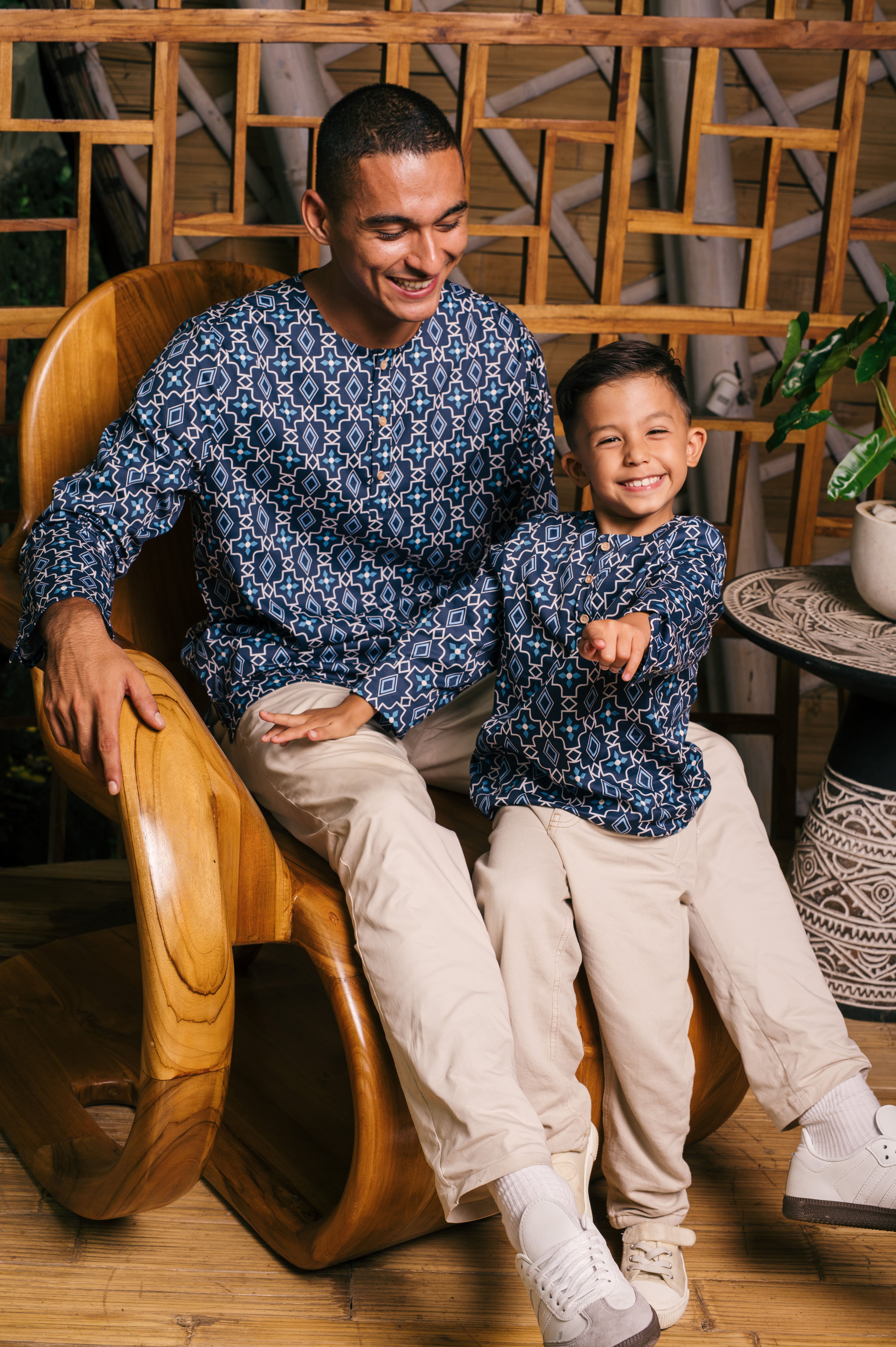 The Embun Collection Men Kurta in Blue Gemilang Print