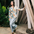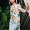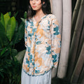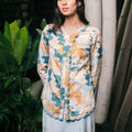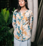 The Embun Collection Women Embroidered Kebaya Top in Blue & Olive Banjaran Print