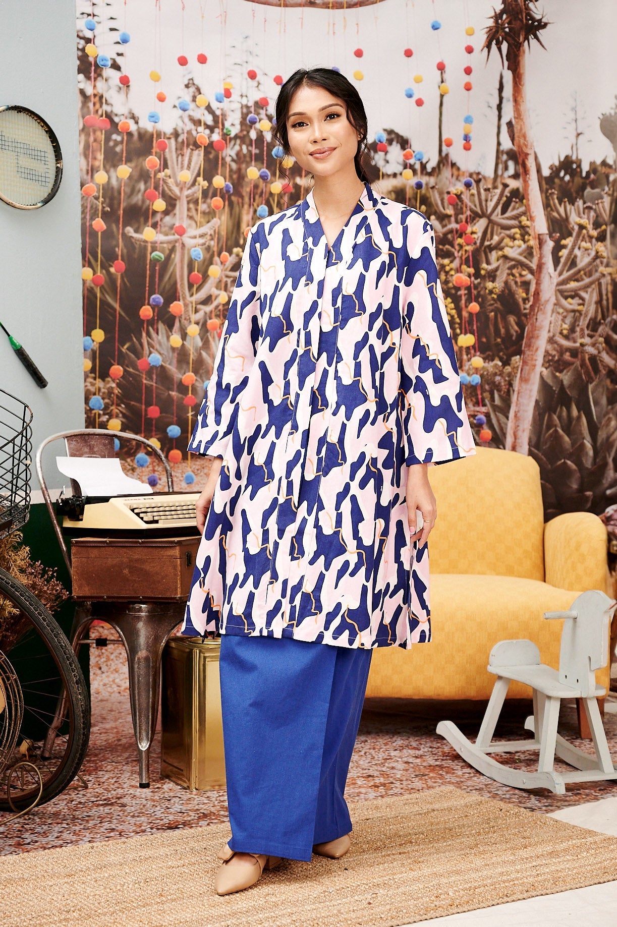 The Kenangan Raya Women Long Kebaya Top Marble Print